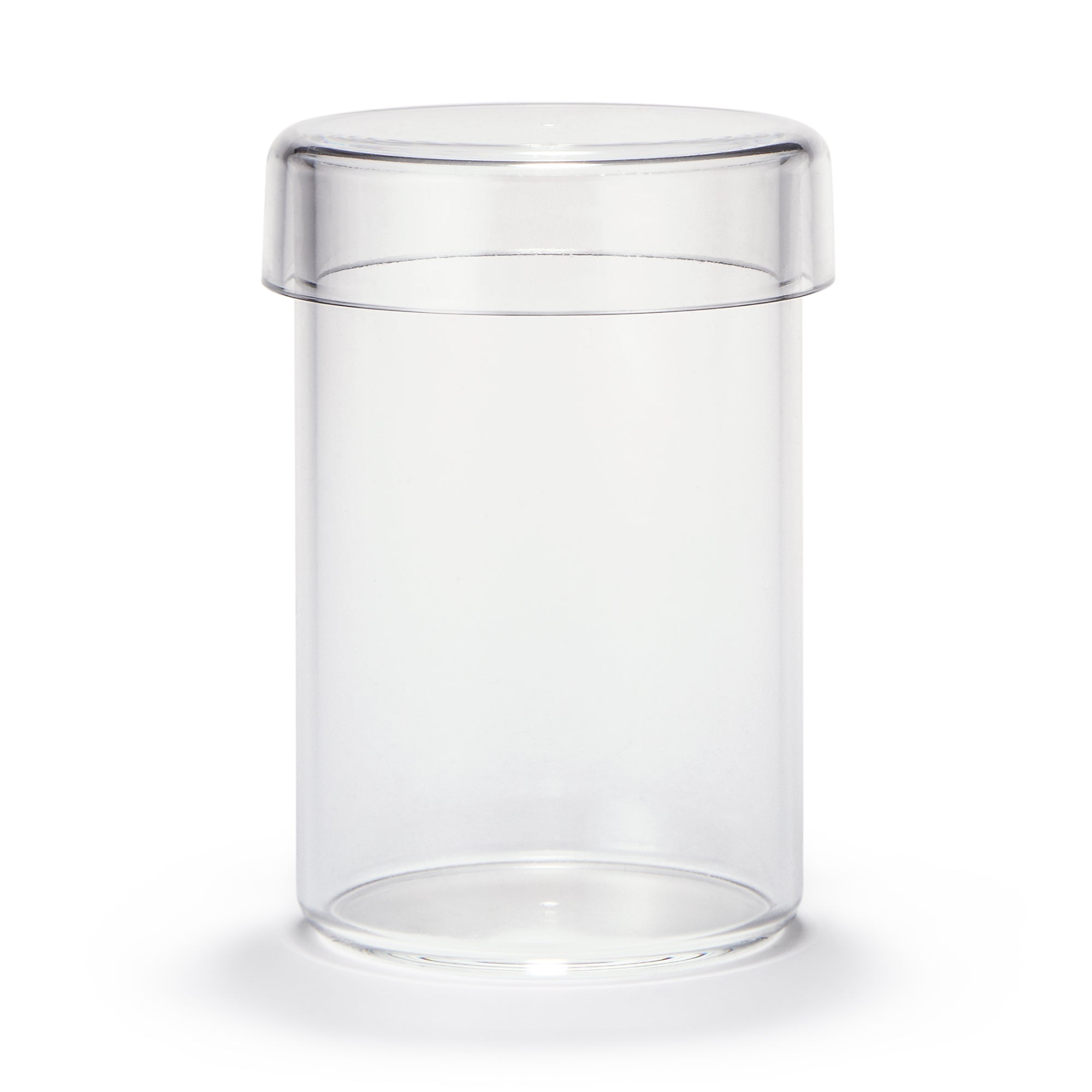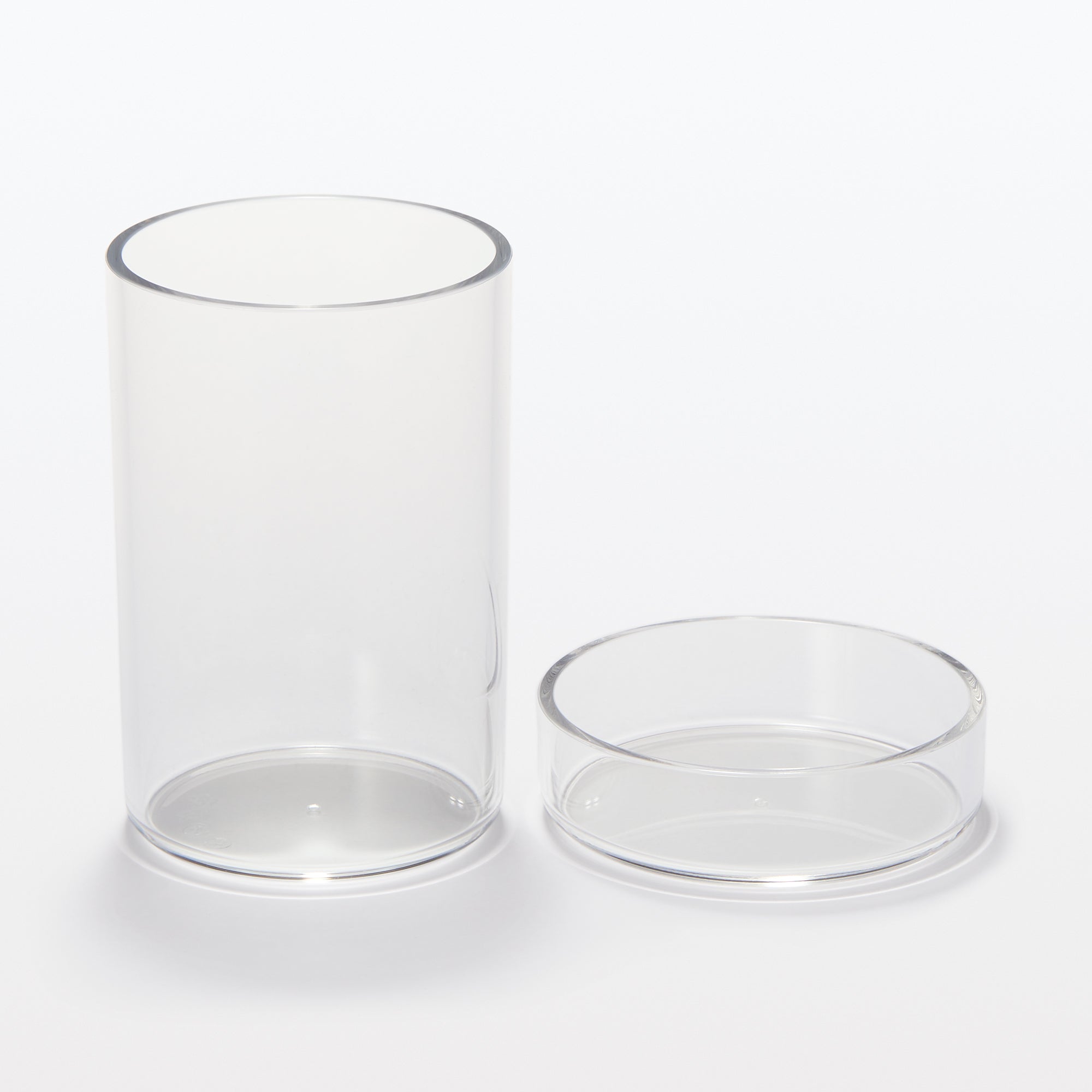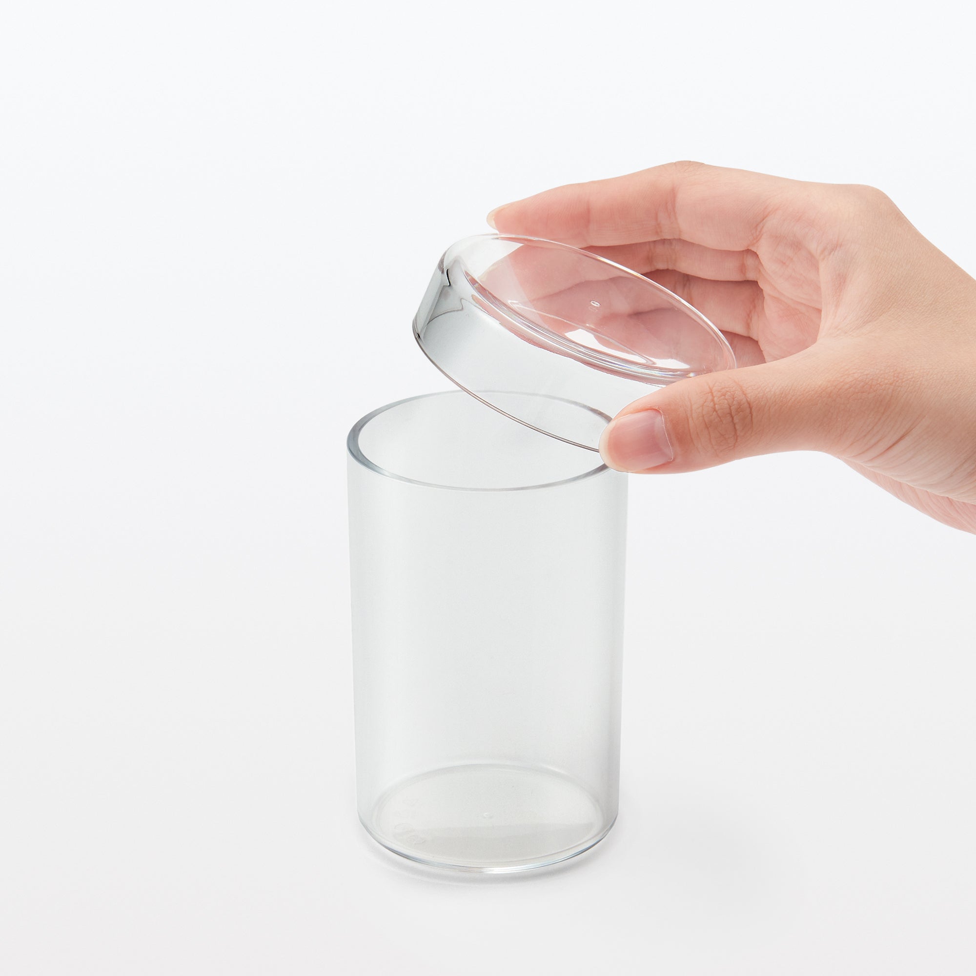 A small transparent container. Ideal for storing cotton and cotton buds.