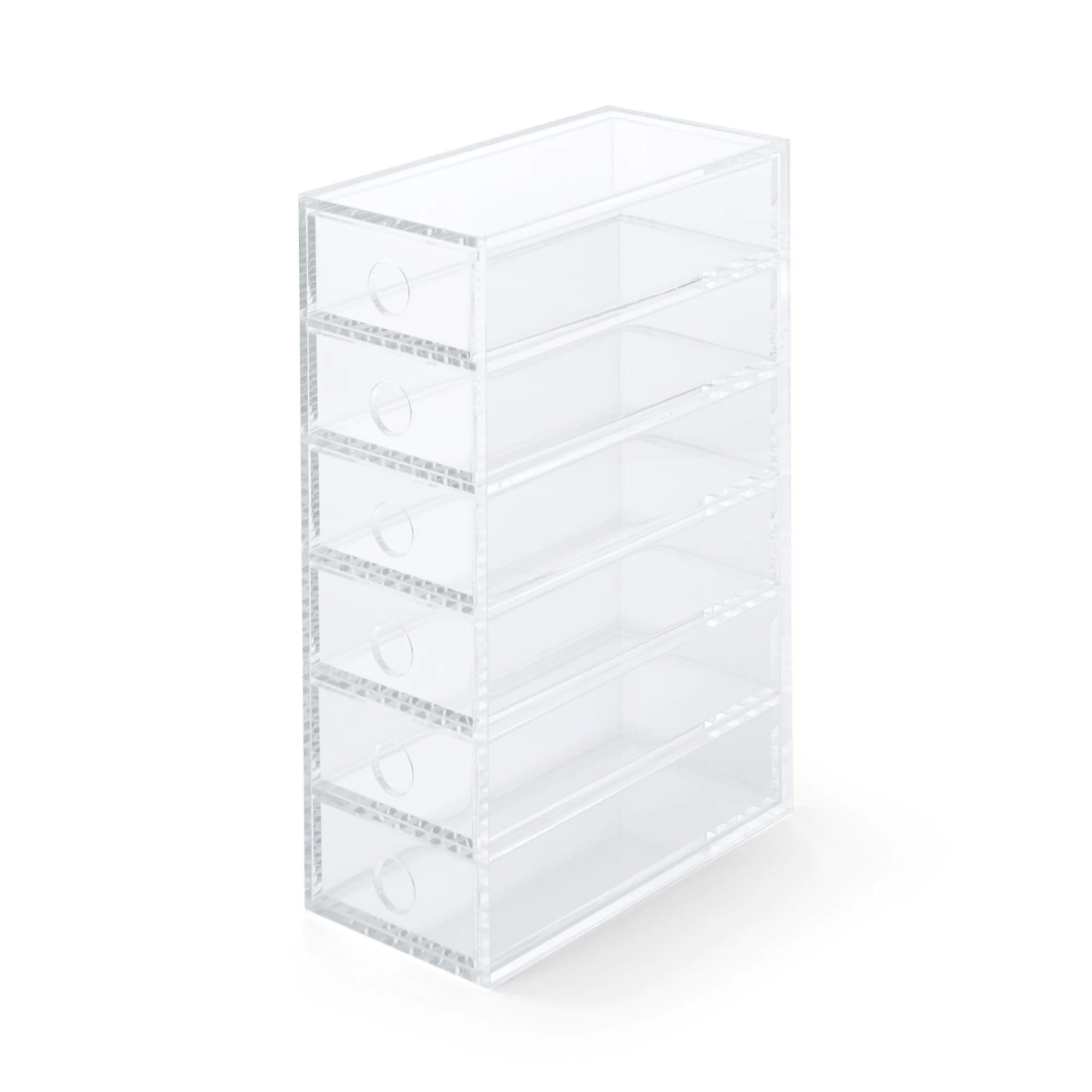 A storage case that allows you to see the inner contents. making the most out of the transparent nature of the acrylic material. The 3 Drawer and 6 Drawer units are the same height so it is easy to display them together.
