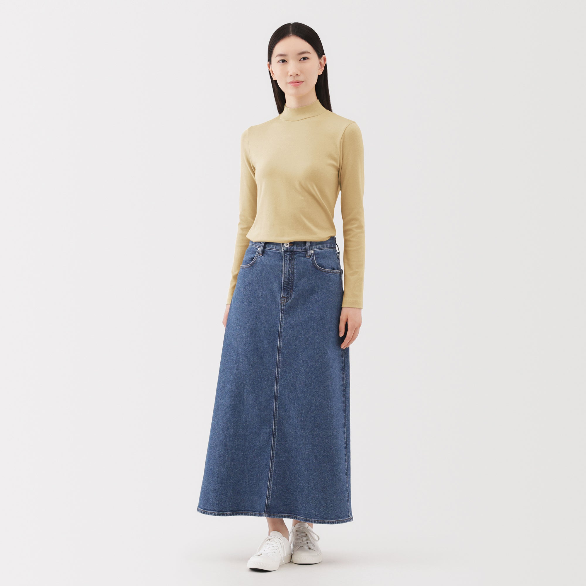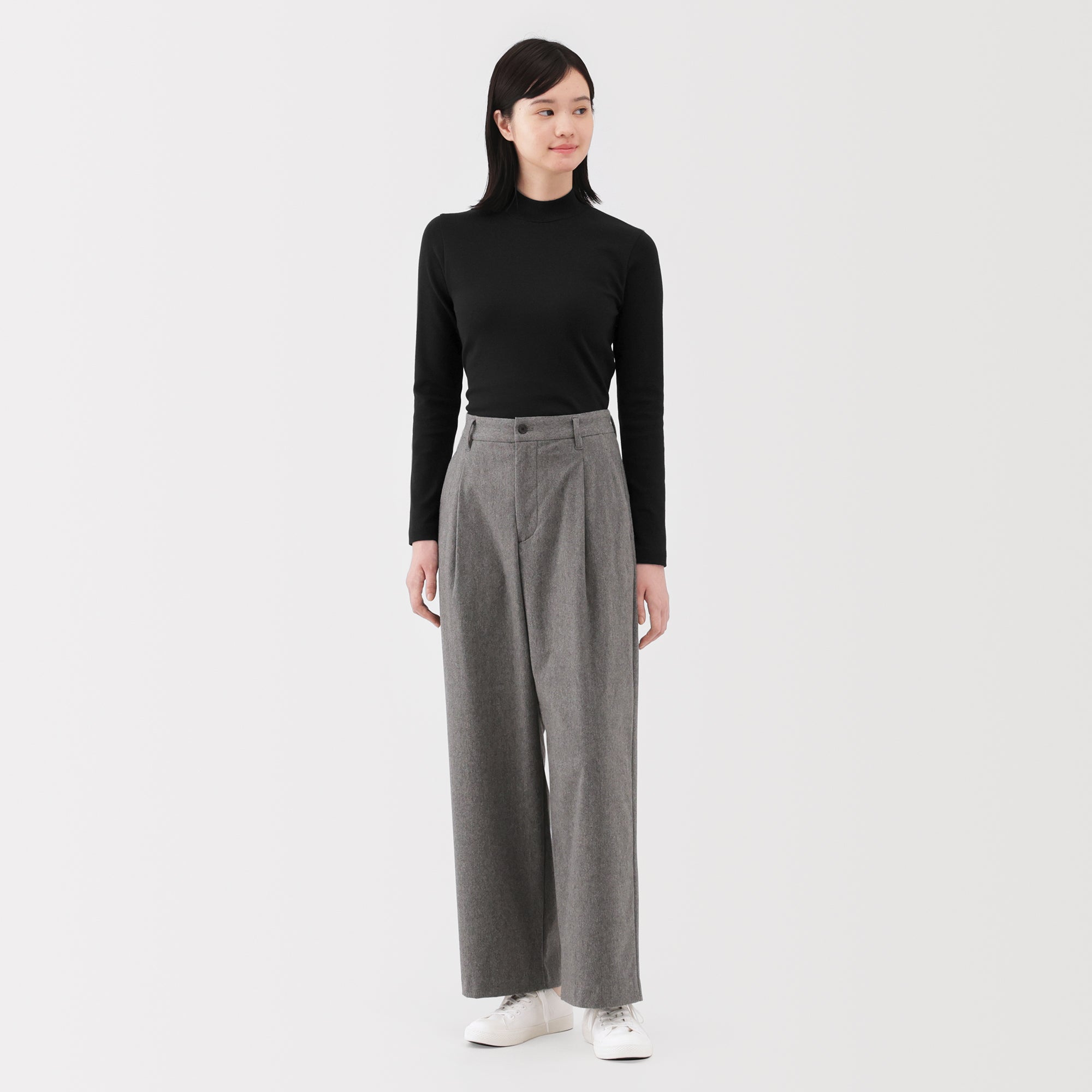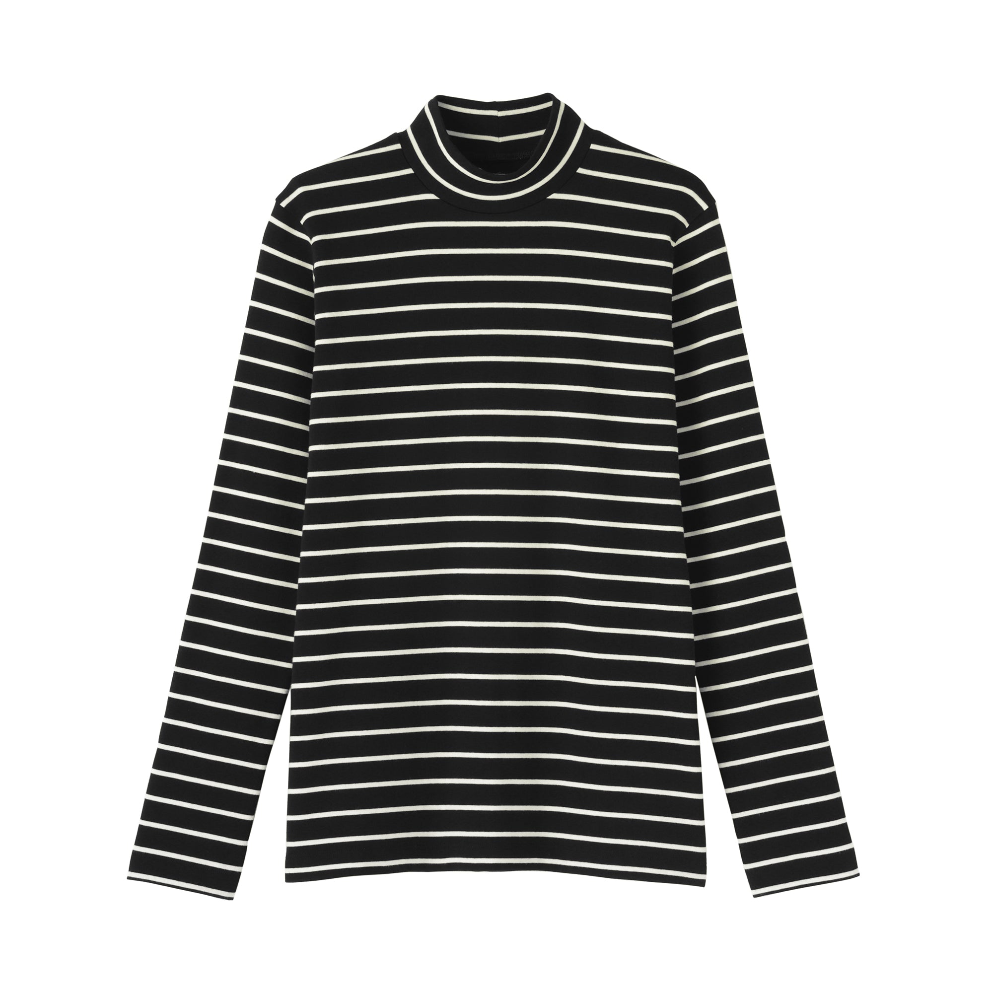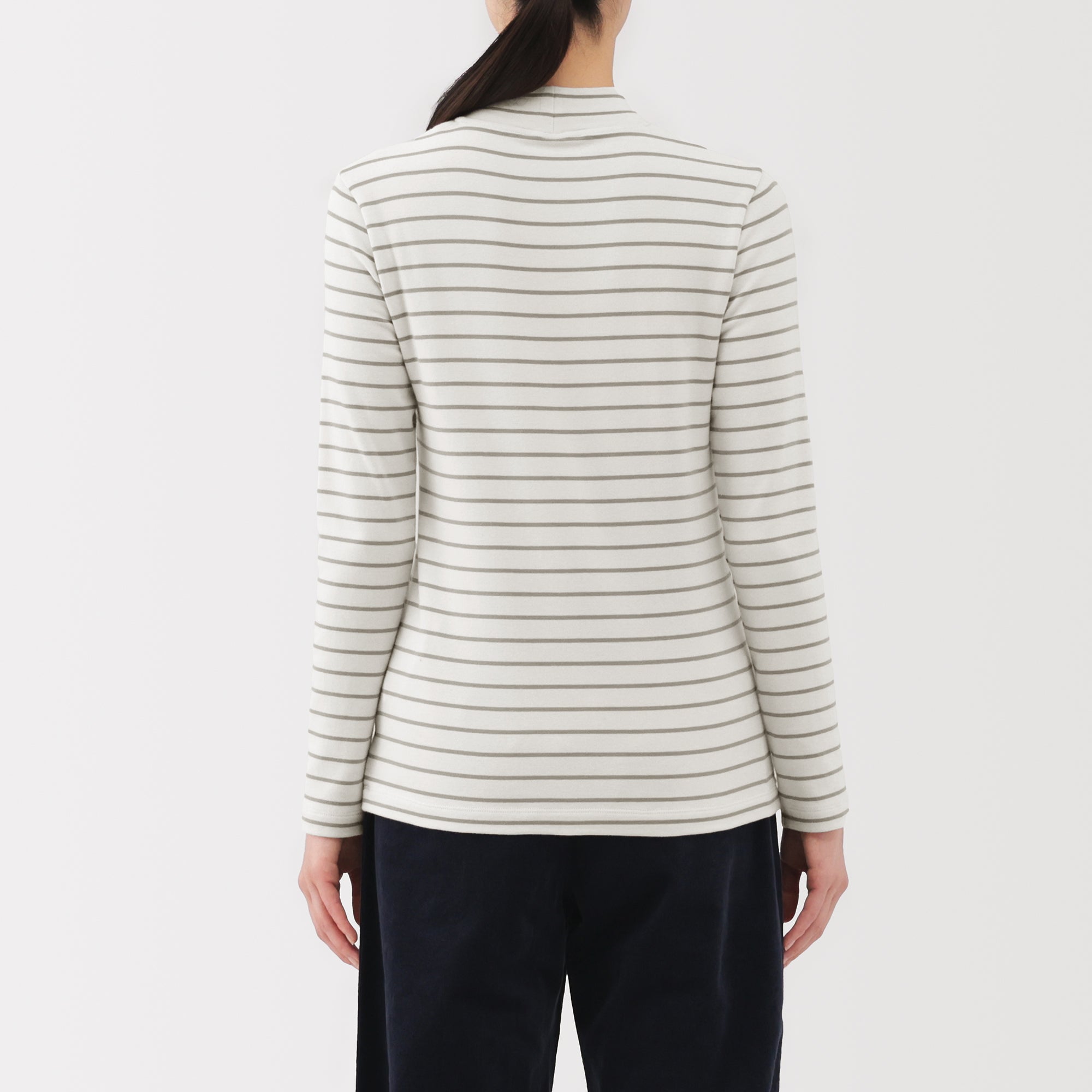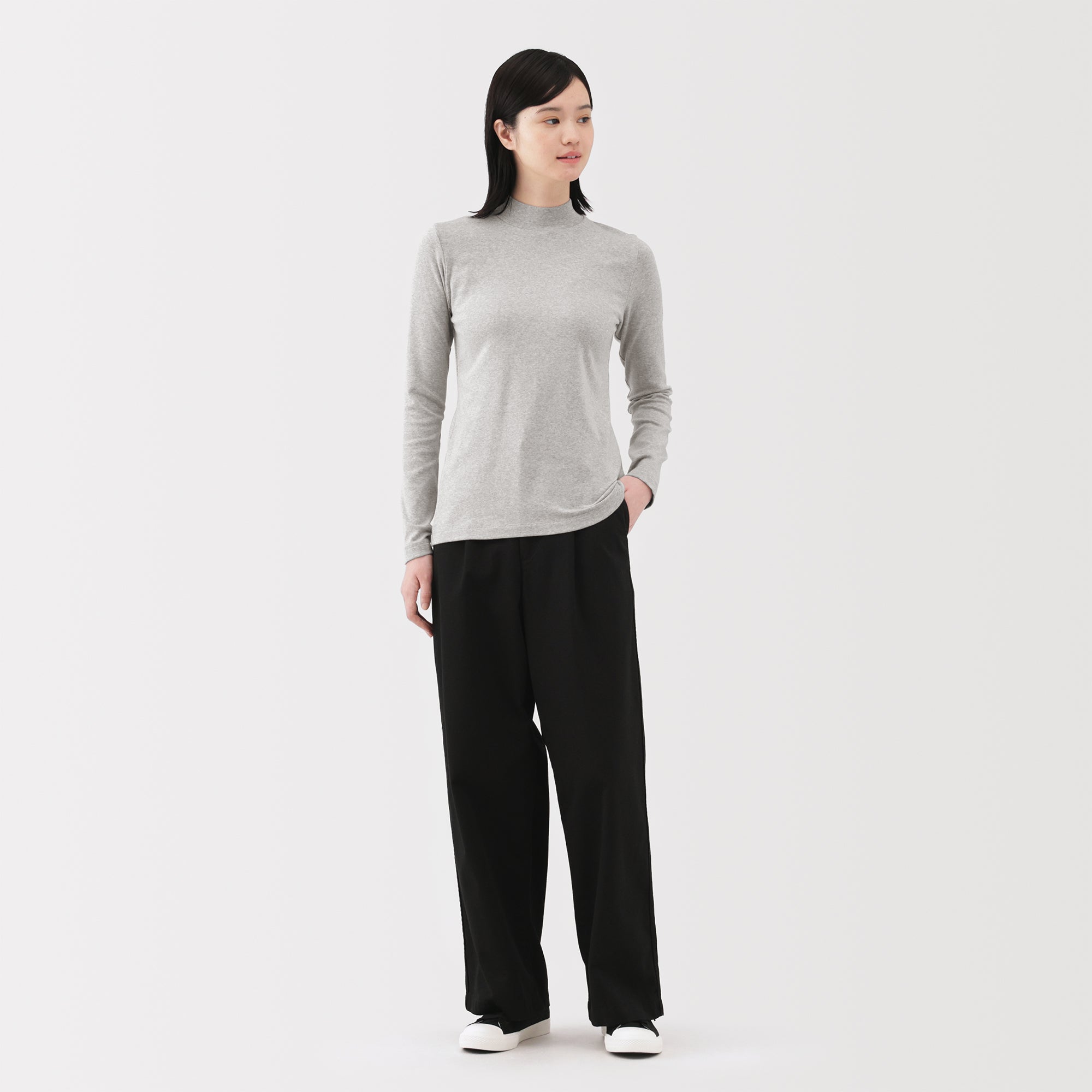 A ribbed mock neck t-shirt with a lightly brushed interior for warmth and a soft. smooth feel against the skin. The high neck fits around the neck to provide protection from the cold. Made with organic cotton.