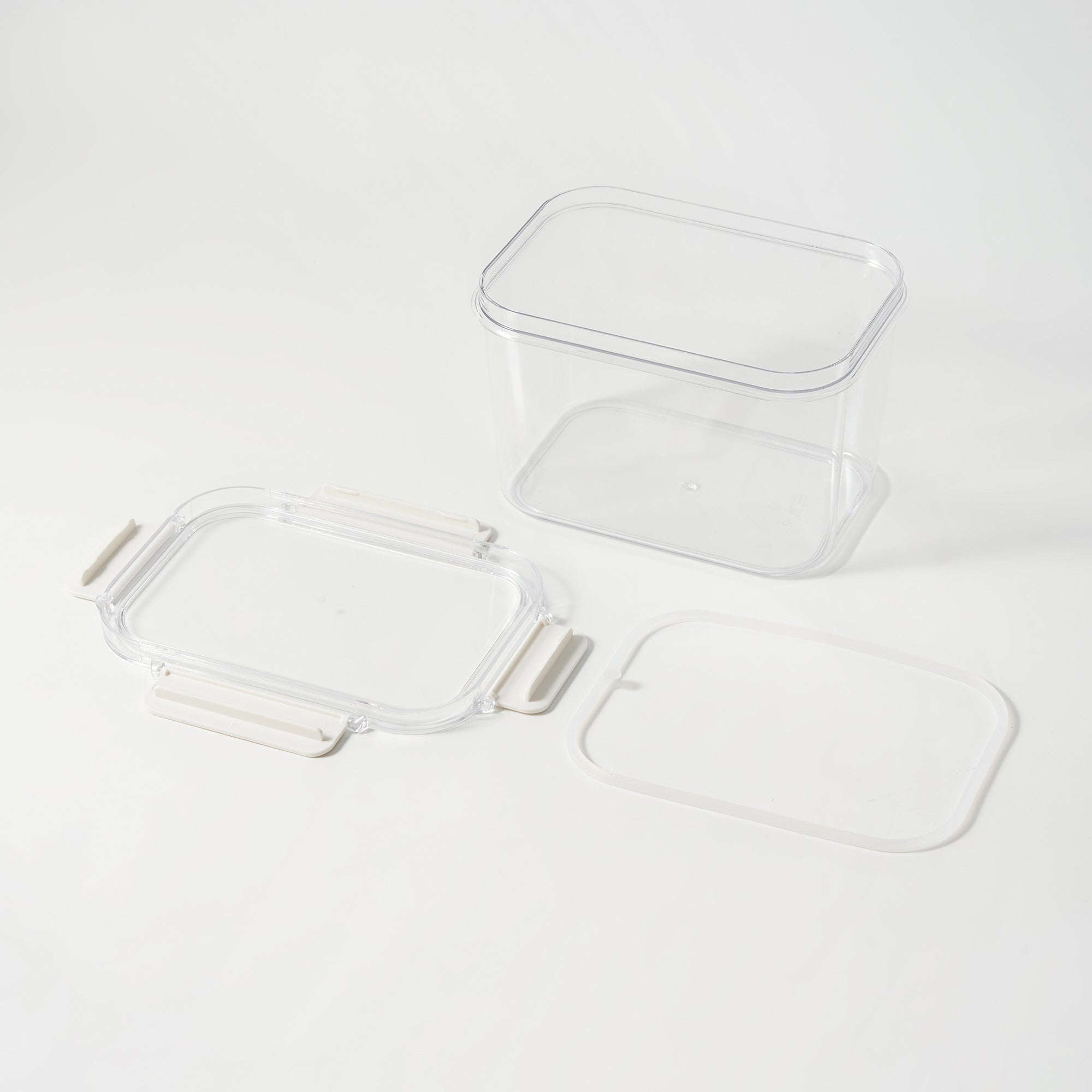 The body is transparent so you can easily view its contents when stored in a fridge or pantry. Stackable for easy organization. The lid has a seal around it to keep the container air tight. Suitable for use in the refrigerator.