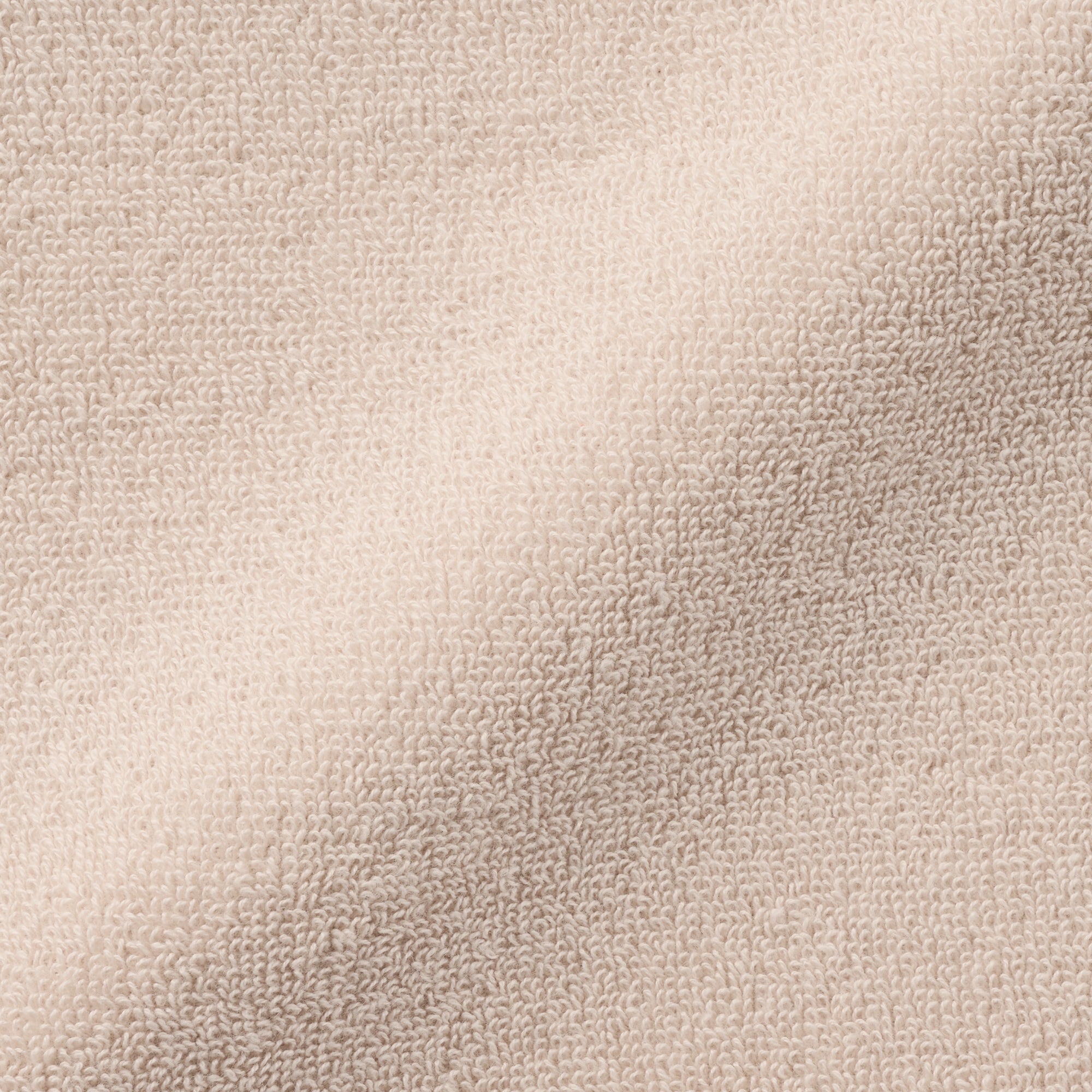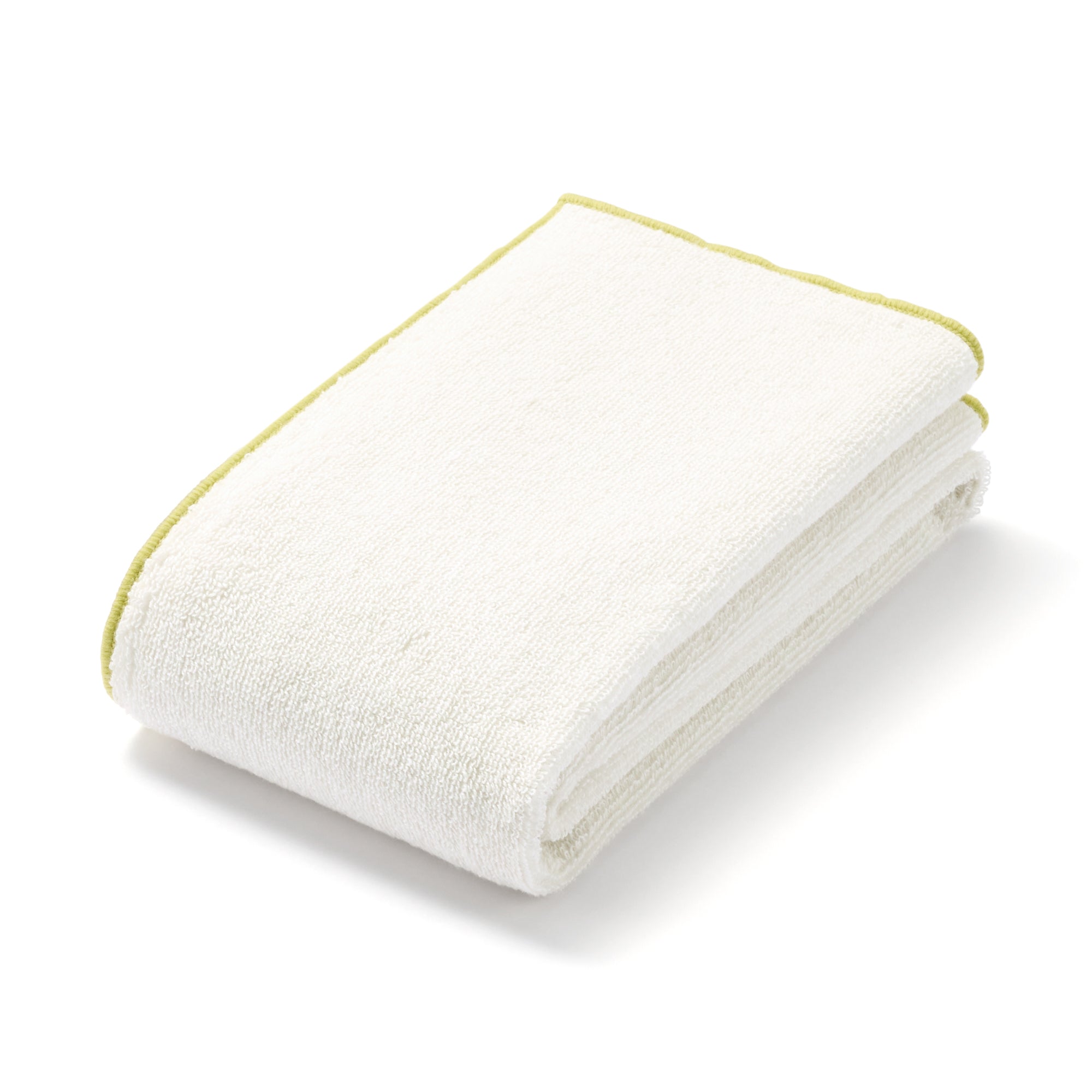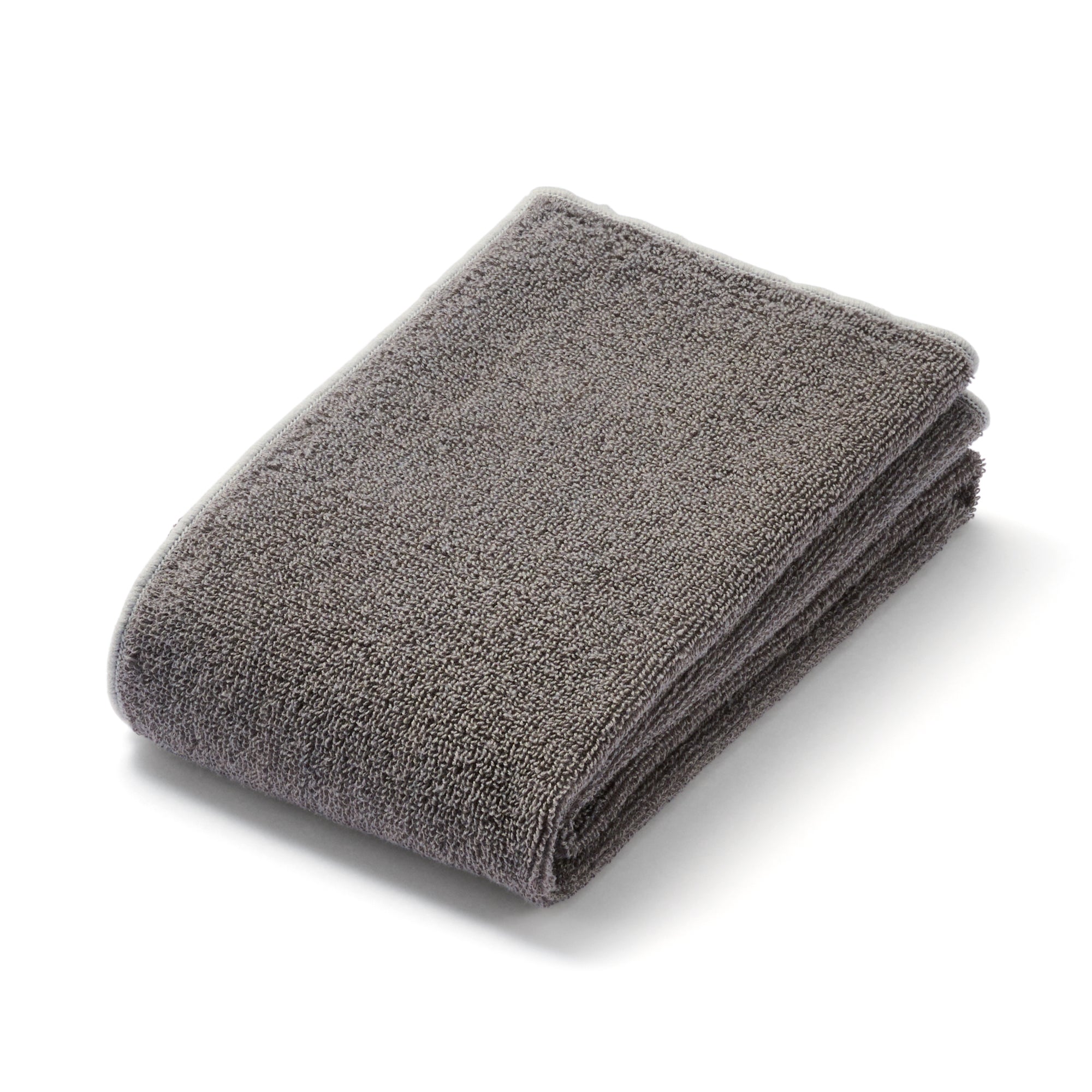 This pile weave face towel is great for drying wet hands or washing your face. The perimeter is made with narrow stitching and pile all the way to the edge. so it doesn’t take up much space when folded.