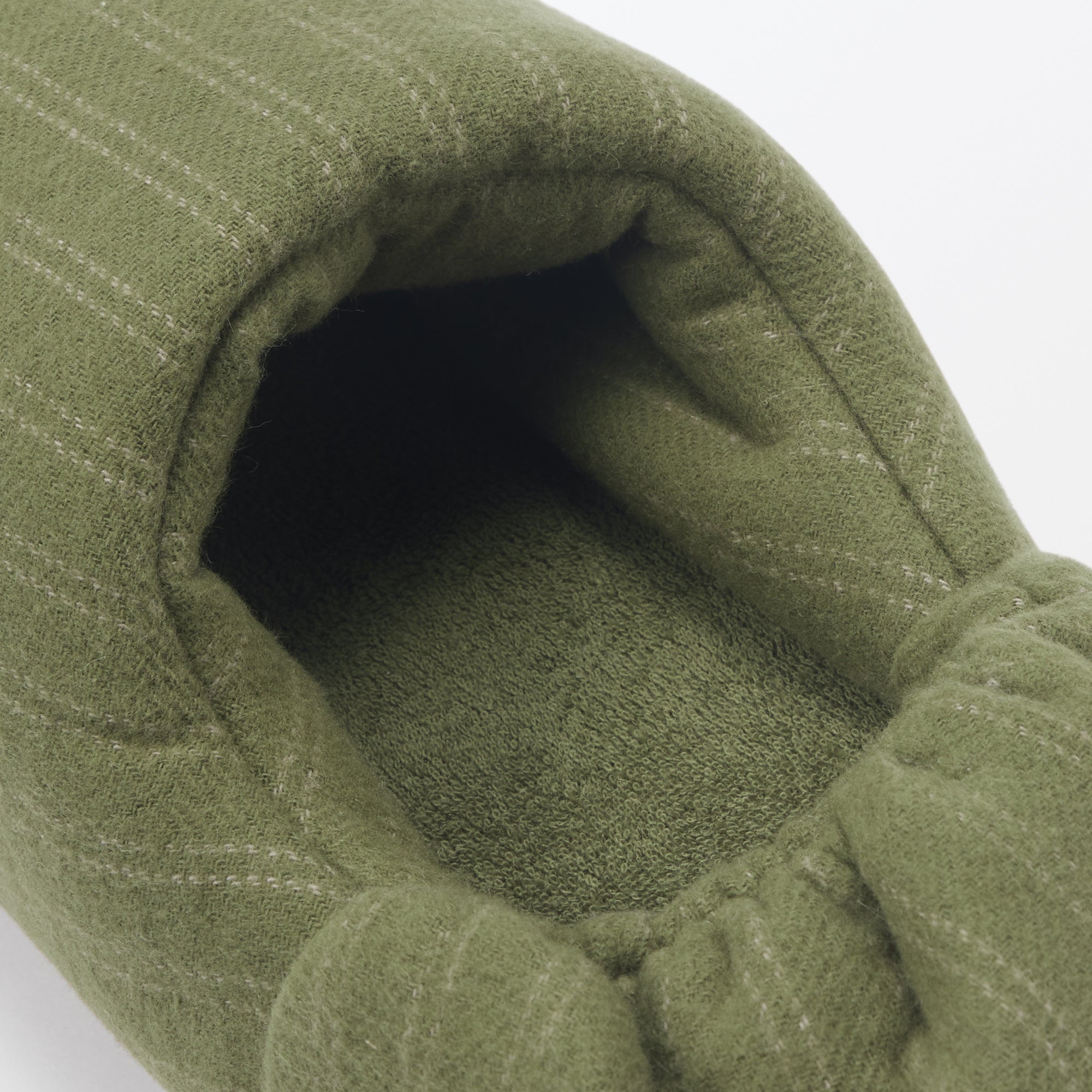 Cozy cotton flannel room shoes that are soft and comfy to wear. perfect for those who spend a lot of time wearing slippers around the house and don’t take them off often. Its elastic heel design gives them a snug fit that prevents them from slipping off and keeps the warmth in.