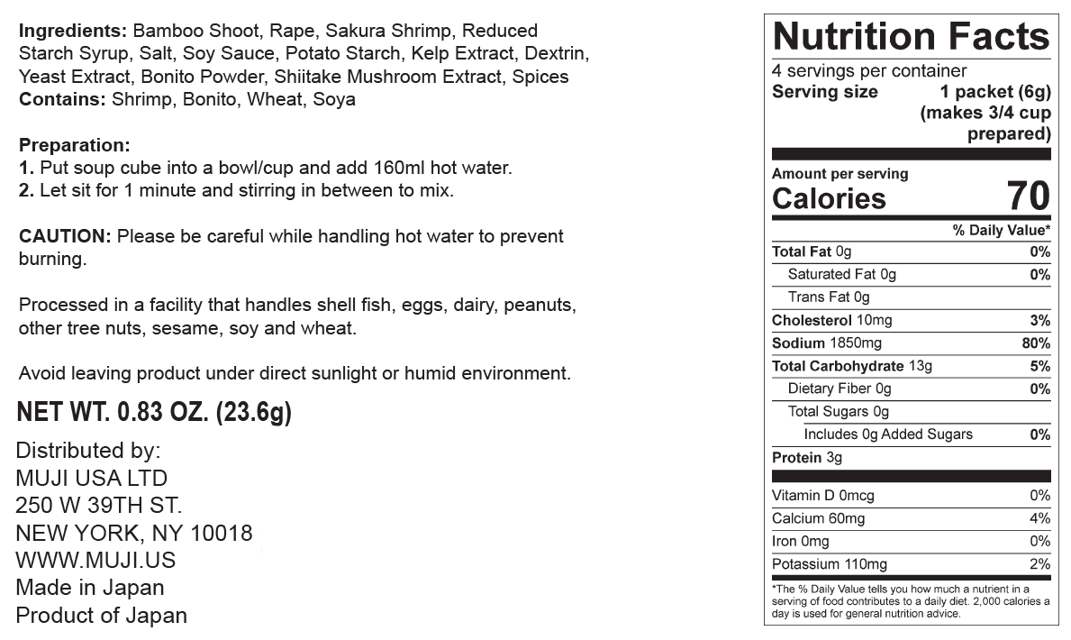 - Put the soup cube into a bowl/cup and add 5.4 fl oz (160 mL) of hot water.