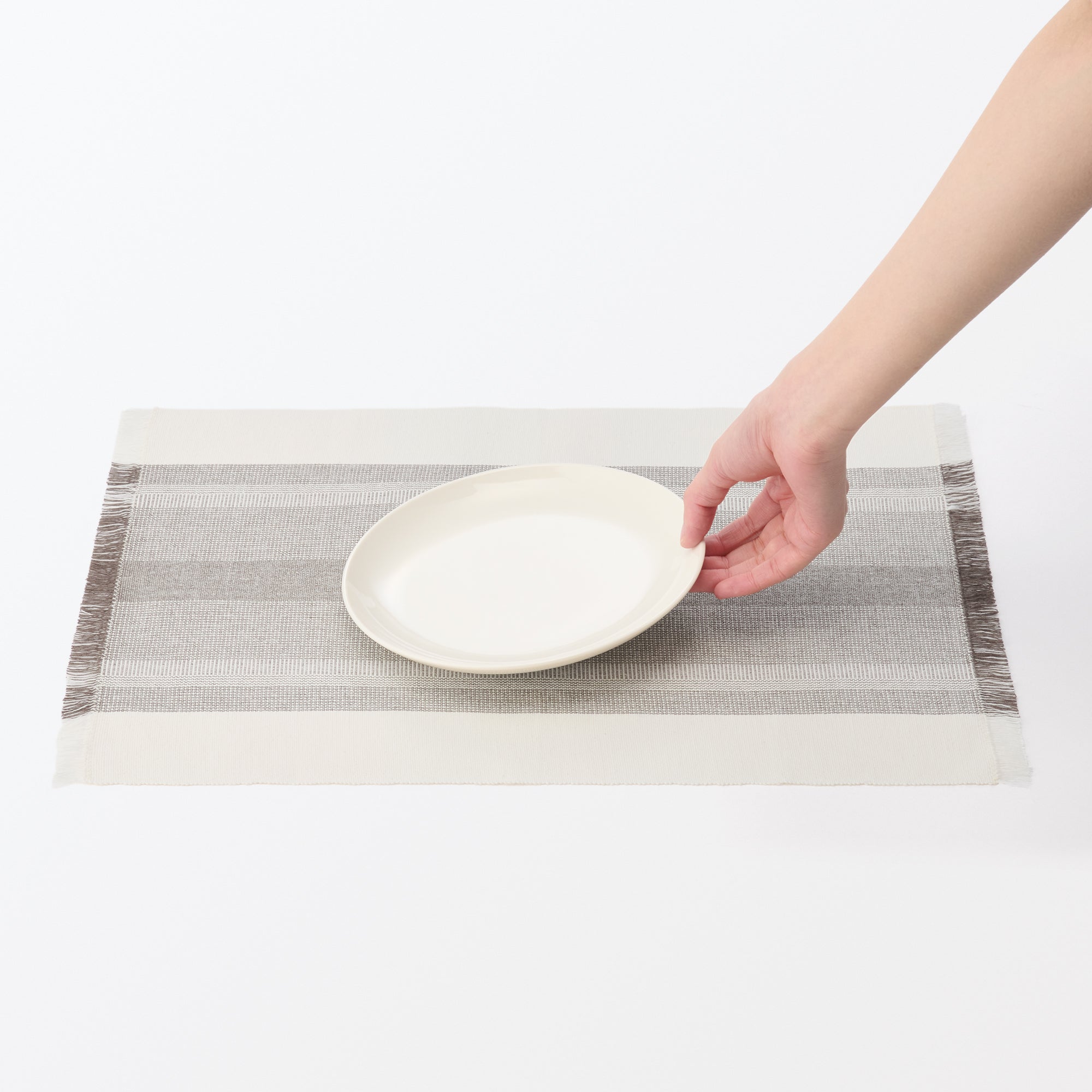 Made from textured Indian cotton. this placemat features a fringe edge that keeps seams thin. providing a stable base for your tableware.?