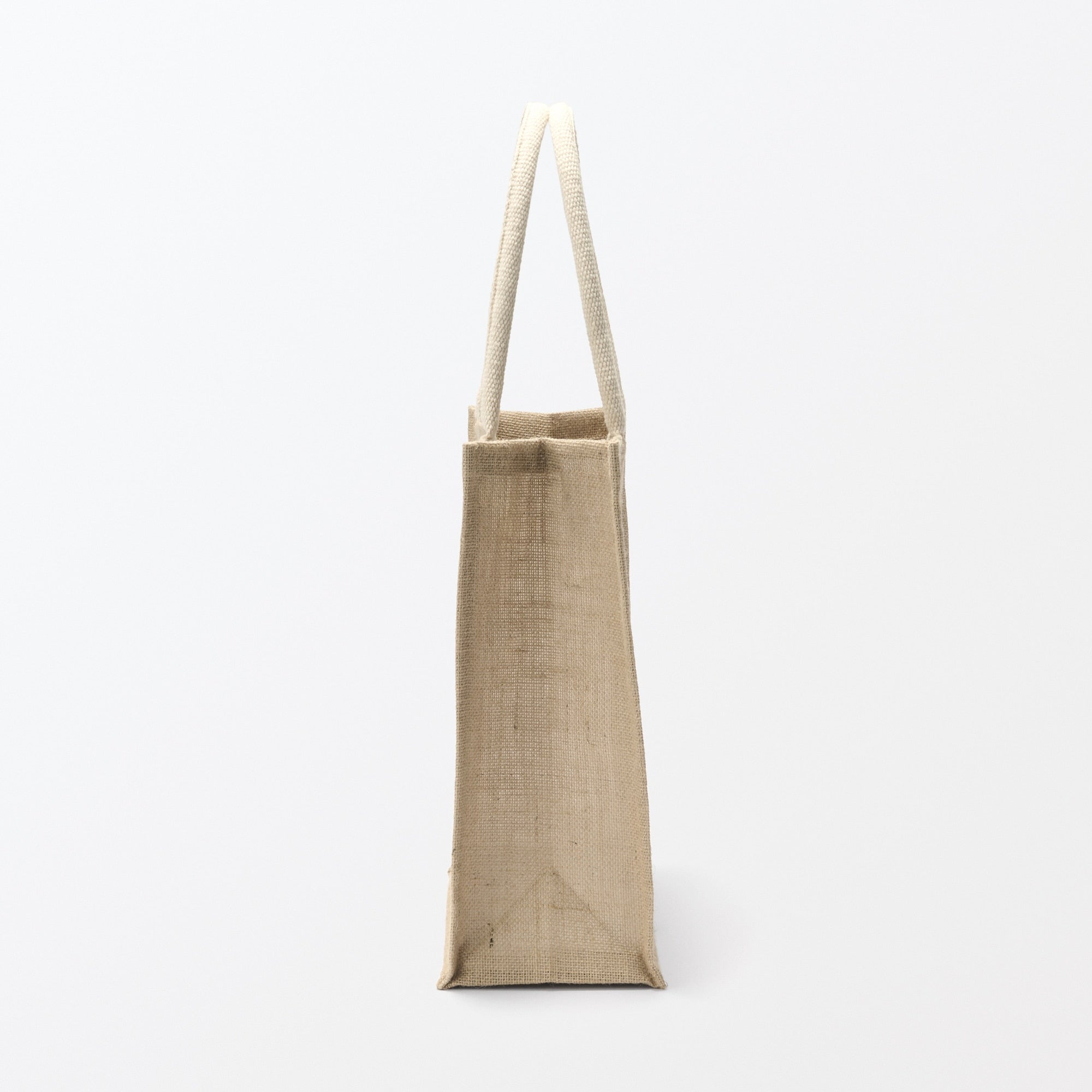 Using uncolored jute material. we have created a bag that can be used for various purposes while maintaining a natural look. The handle uses a cushioned core material convenient for shoulder and hand-holding.