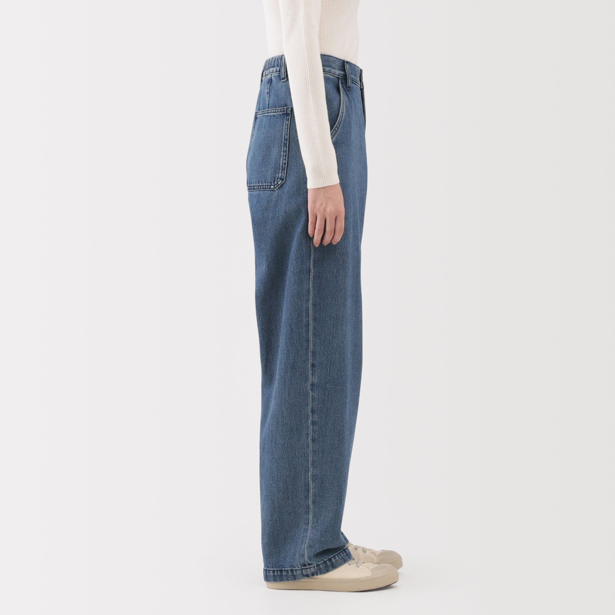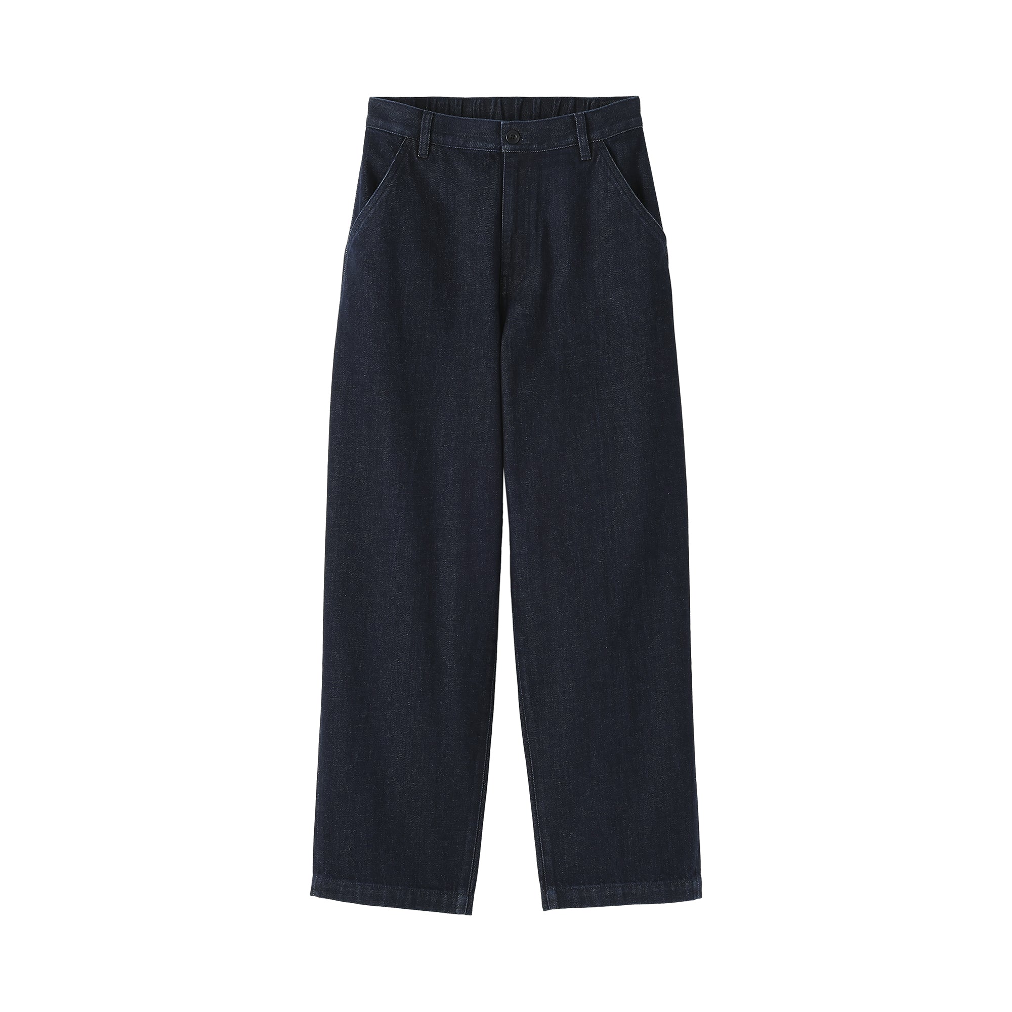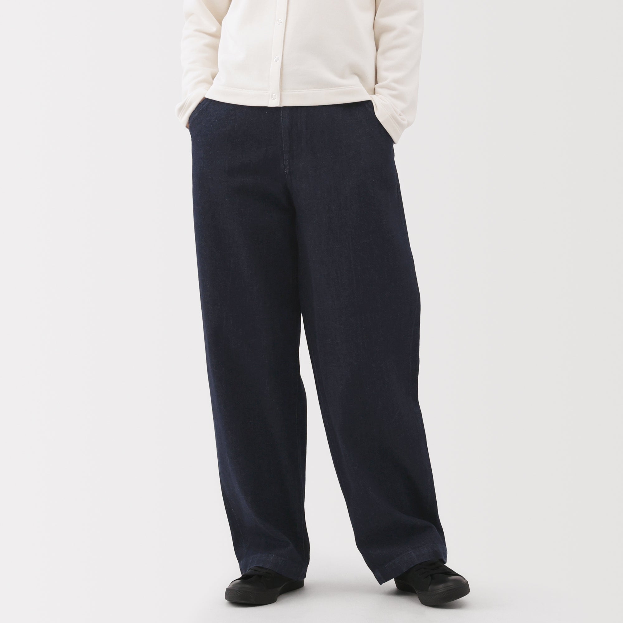 These women’s denim pants have a wide tapered cut and are crafted from a blend of kapok and cotton denim for comfort.