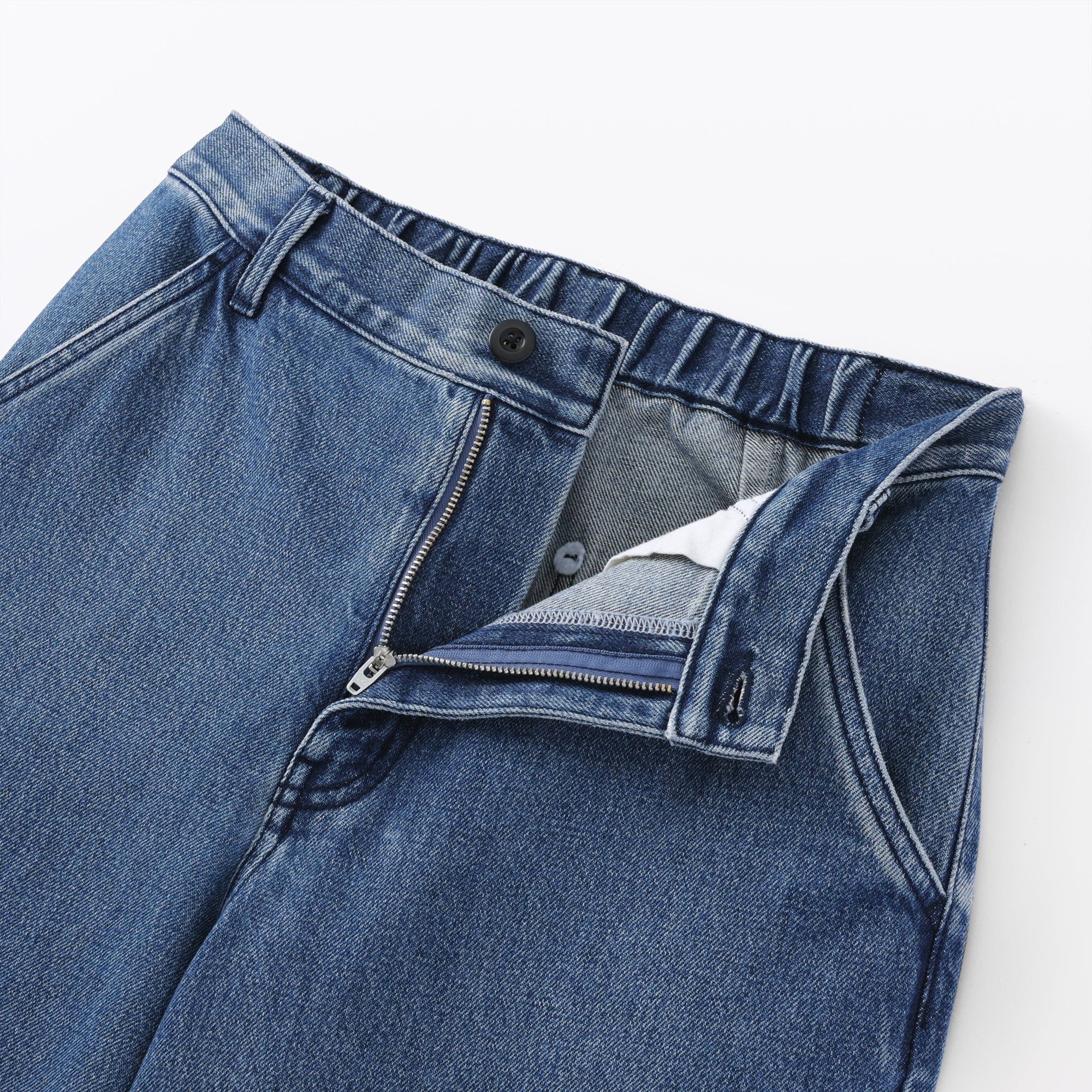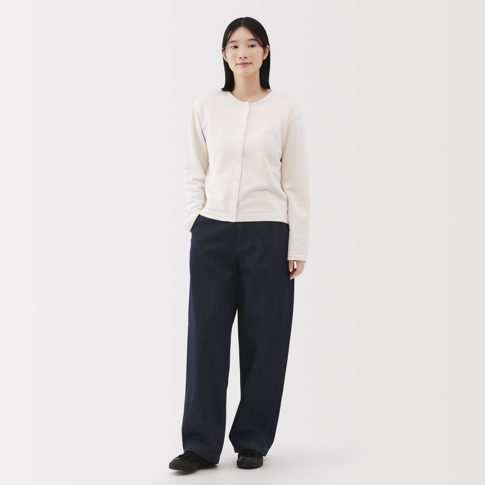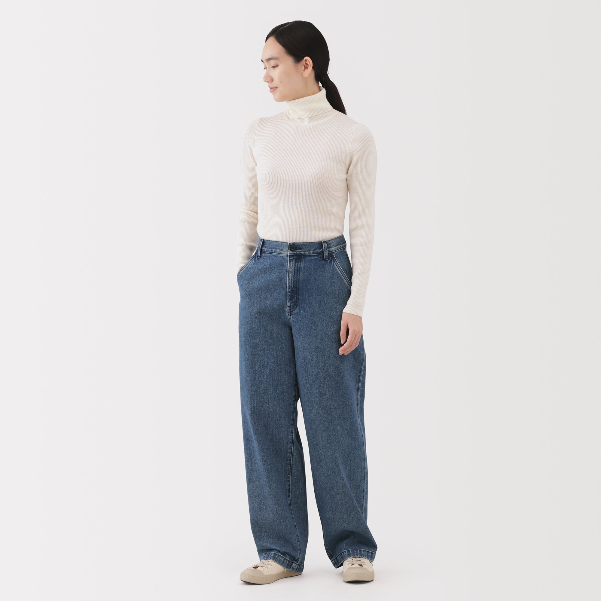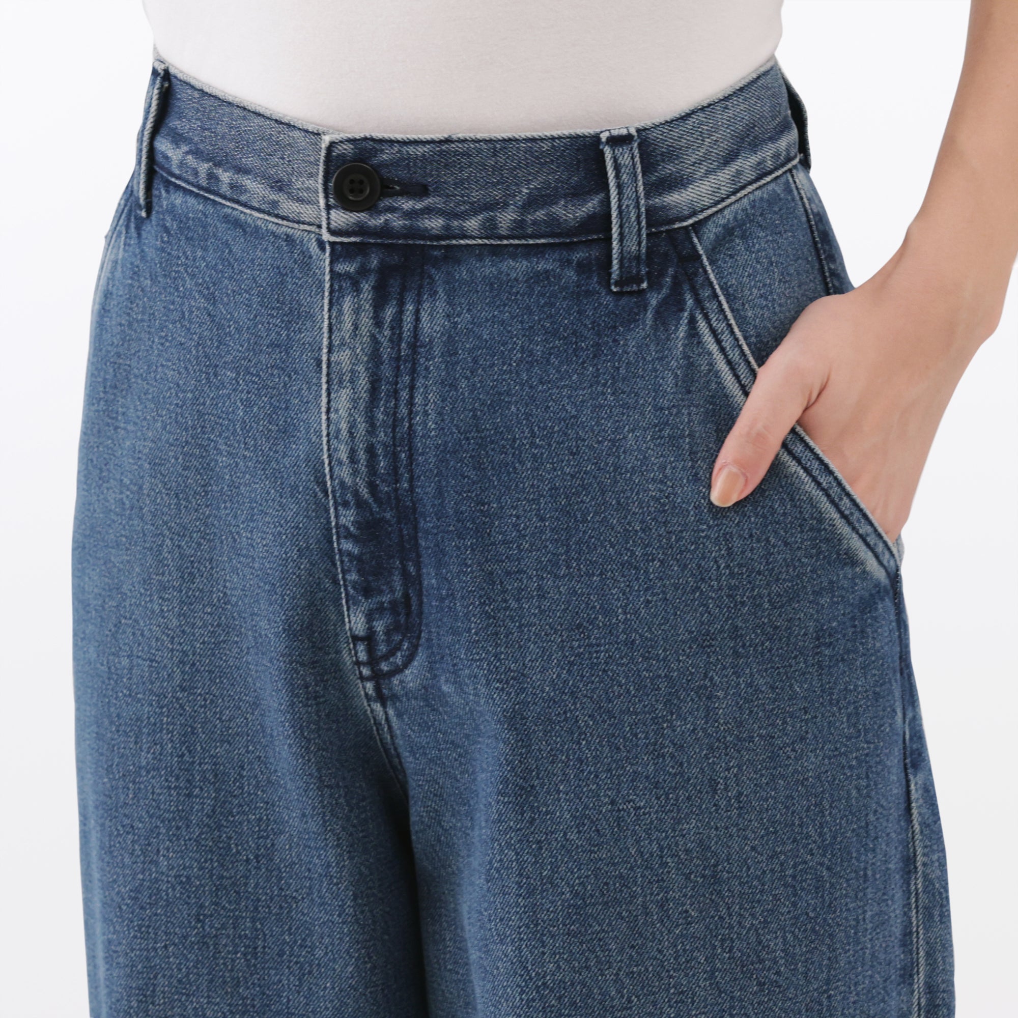 These women’s denim pants have a wide tapered cut and are crafted from a blend of kapok and cotton denim for comfort.