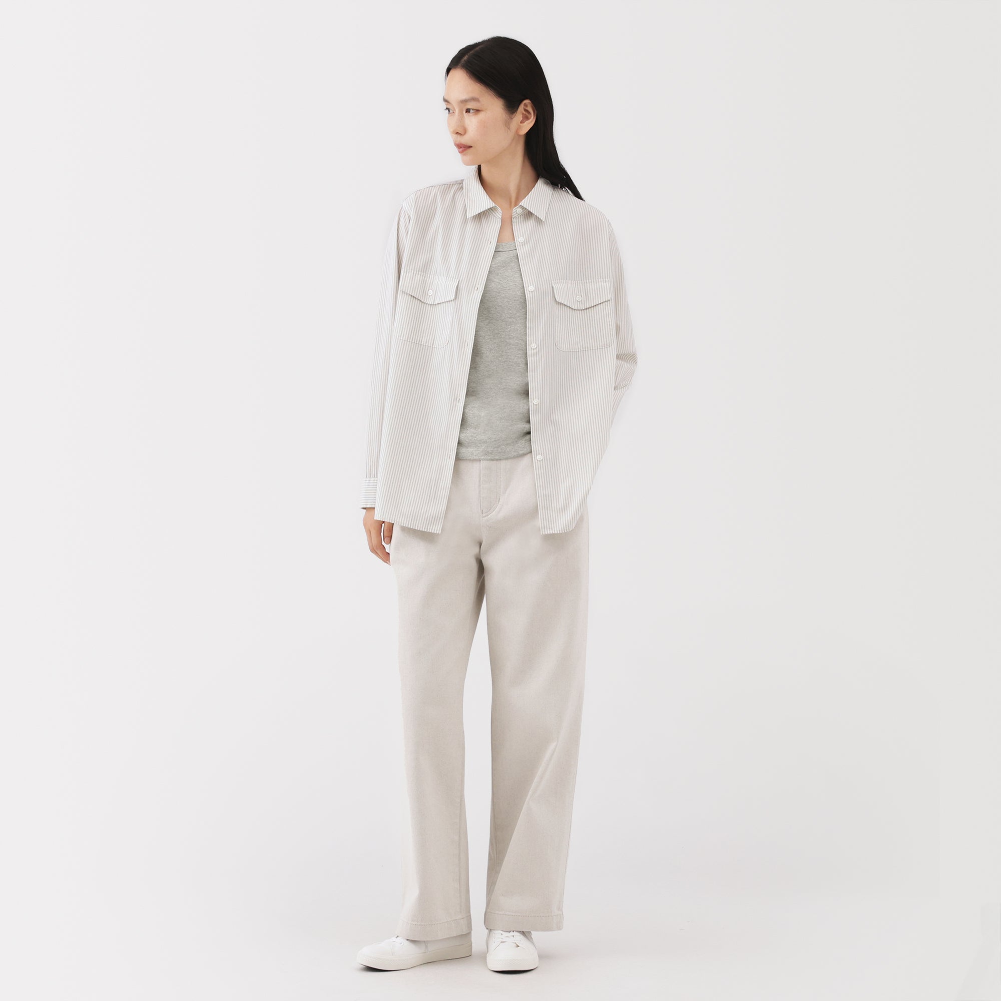 This compact tank top combines crisp linen and soft cotton for a uniquely pleasant texture with a subtle sheen. The material has an airy and supple texture that feels good on the skin. It is the perfect thickness so it can be worn comfortably on its own or layered underneath a jacket. making it a versatile piece for any wardrobe.