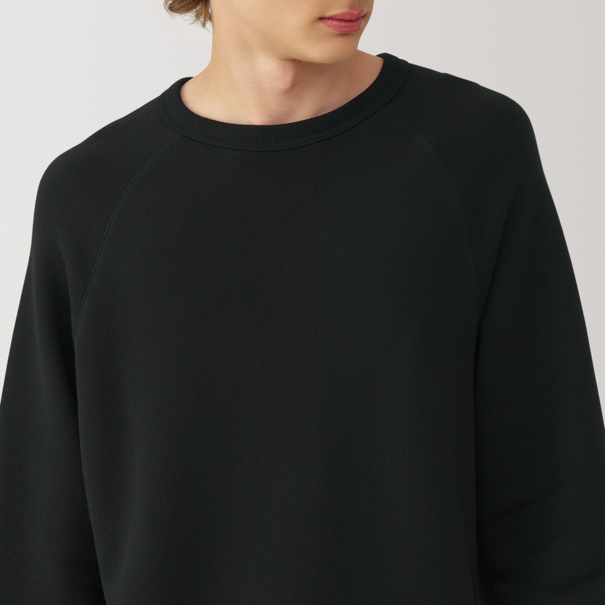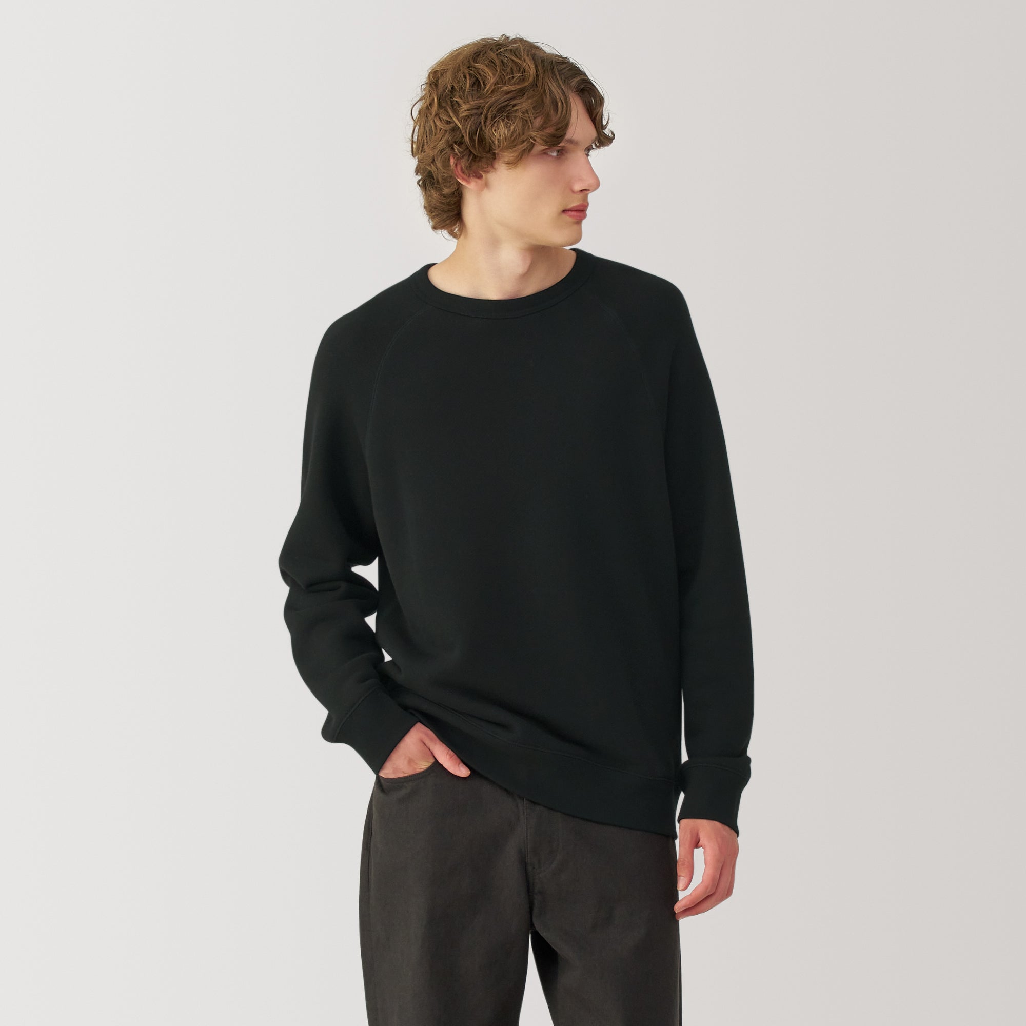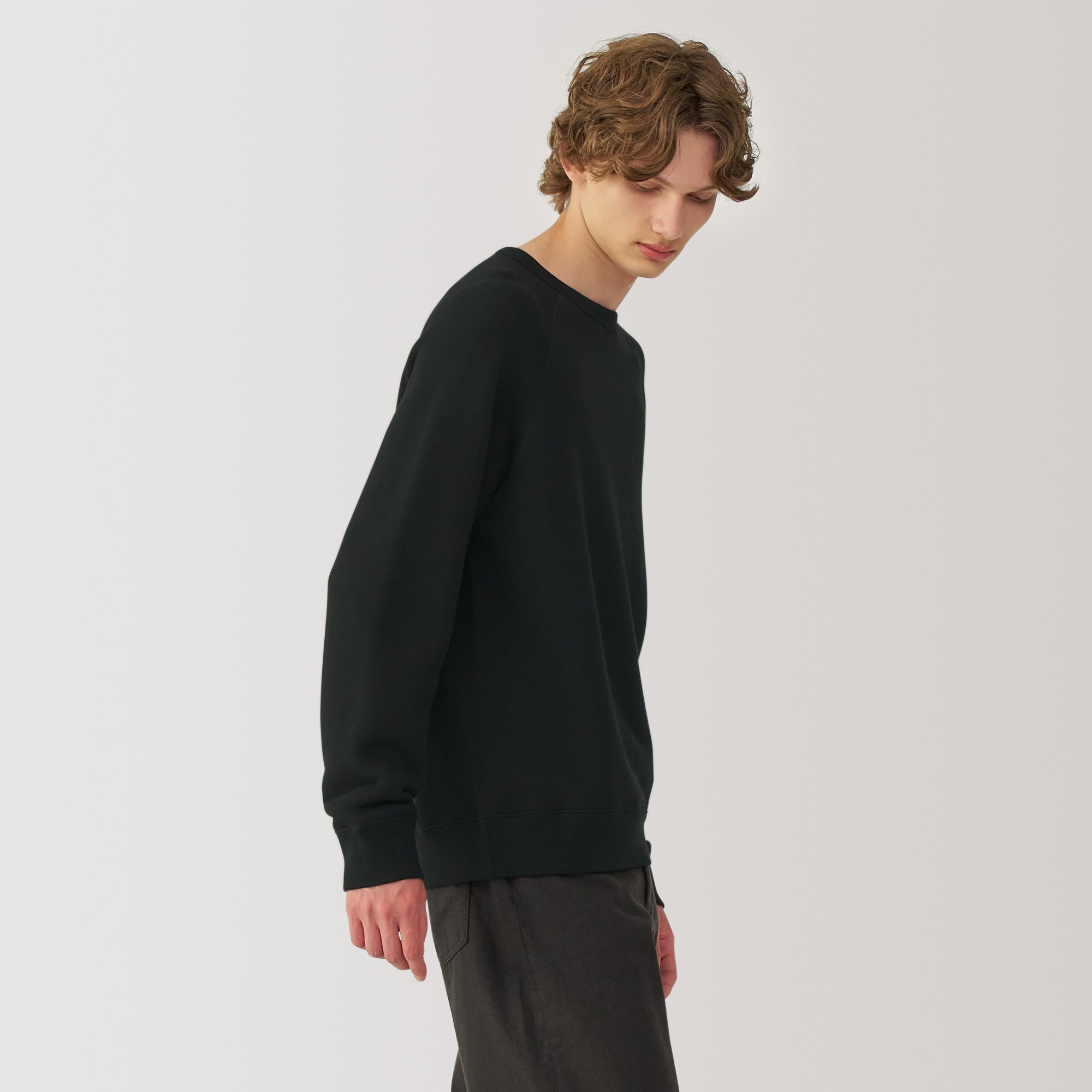 The softness of the fabric is achieved by using a traditional loopwheel machine. which knits very slowly from bottom to top to remove unnecessary tension on the yarn. Unlike modern high-speed machines that work top-to-bottom. causing fabric to sag due to its own weight. this slow and gentle process ensures a high-quality material with a fluffy. airy texture that is only possible with traditional knitting methods. The loopwheeling method may leave charming irregularities such as an uneven texture and a slub appearance that is unique to this traditional process.