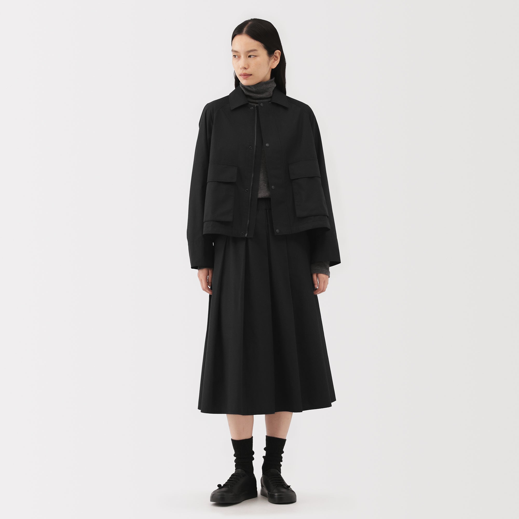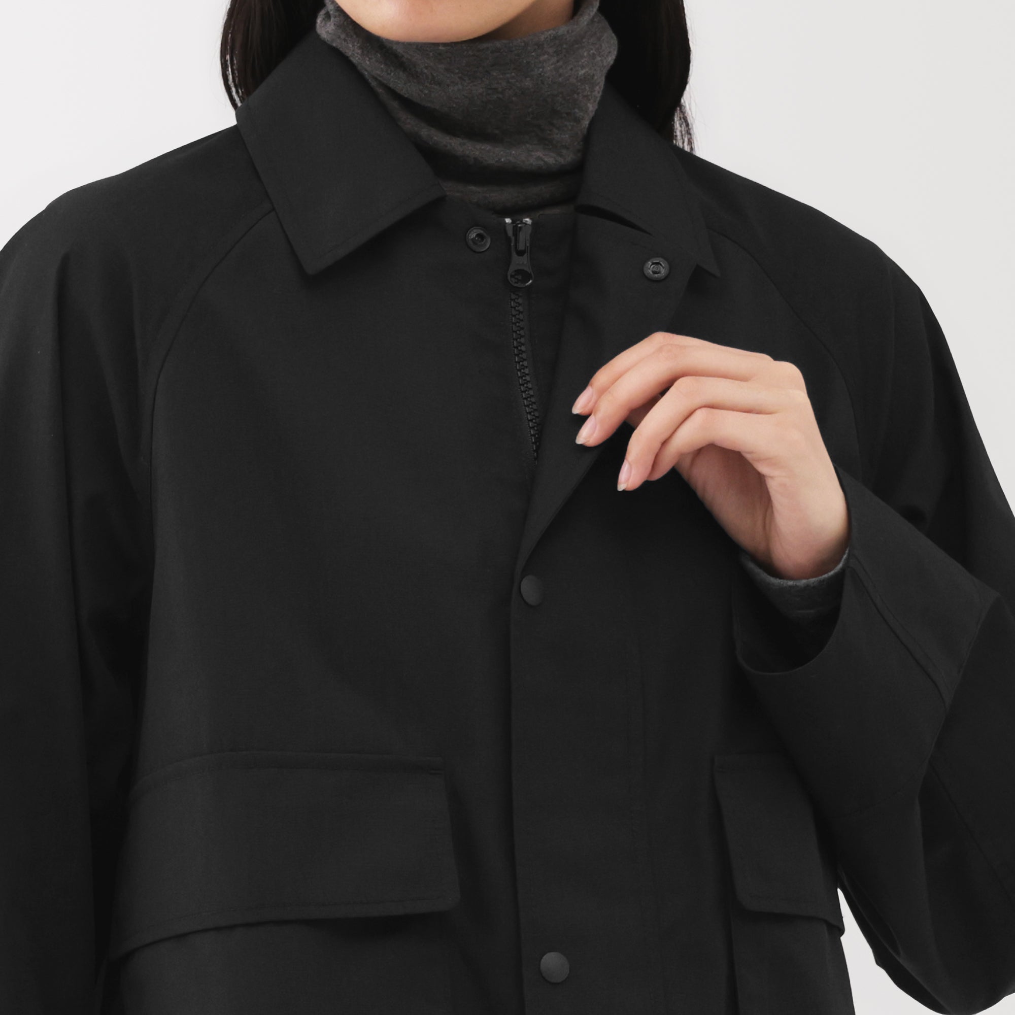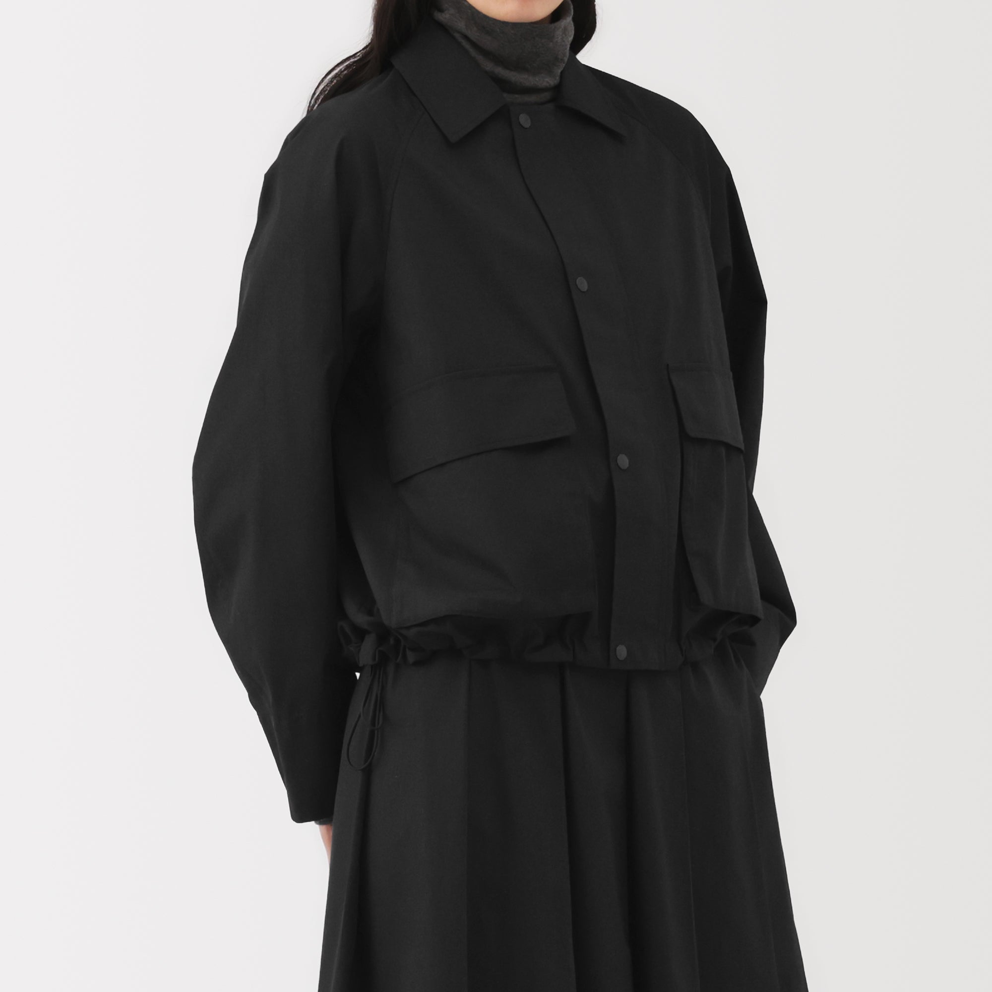 Using lab coat fabric made from recycled polyester and cotton. this women’s blouson dries quickly and has a sturdy feel. The design prioritizes ease of movement with raglan sleeves. The hem features a drawstring closure. allowing you to adjust the silhouette for a variety of styles.