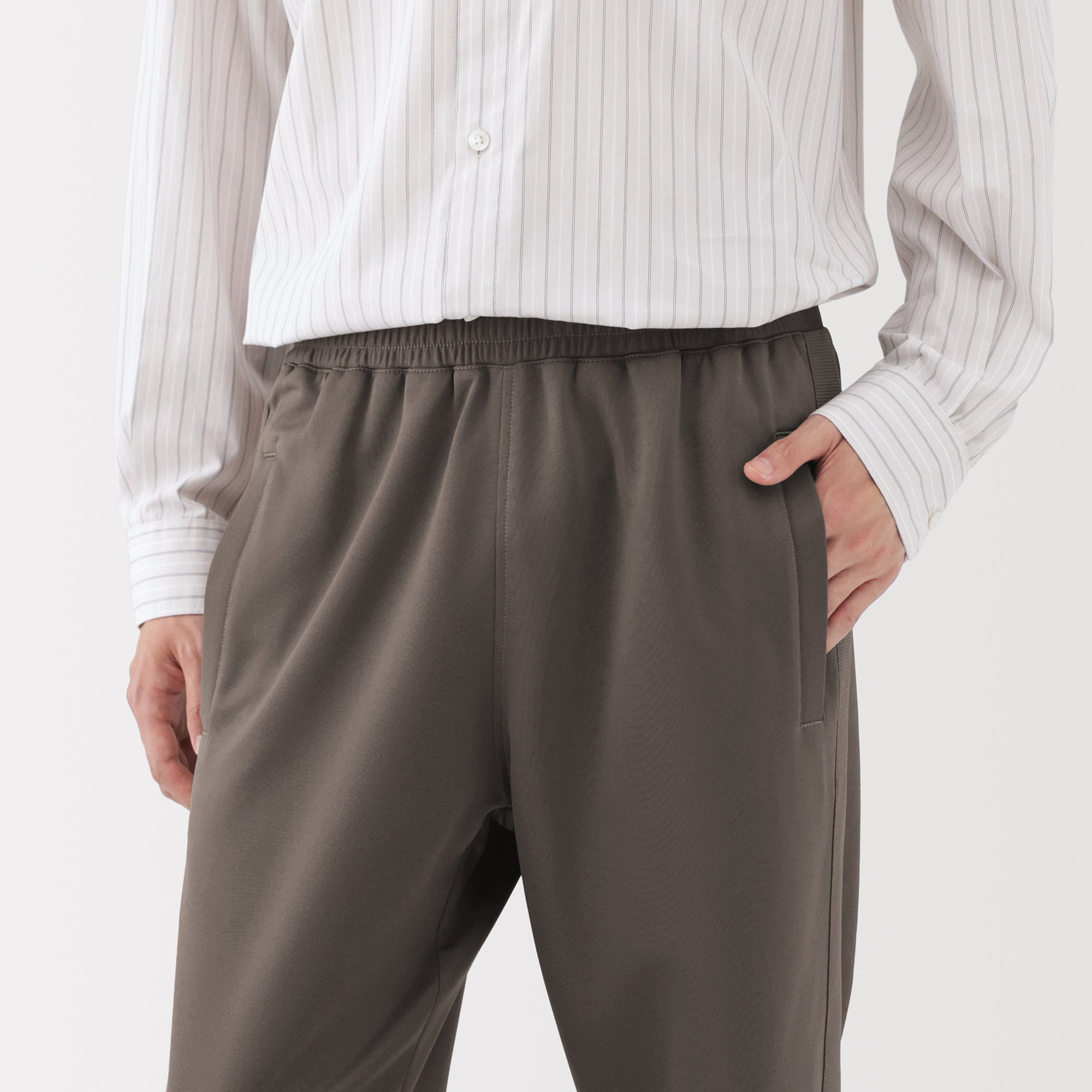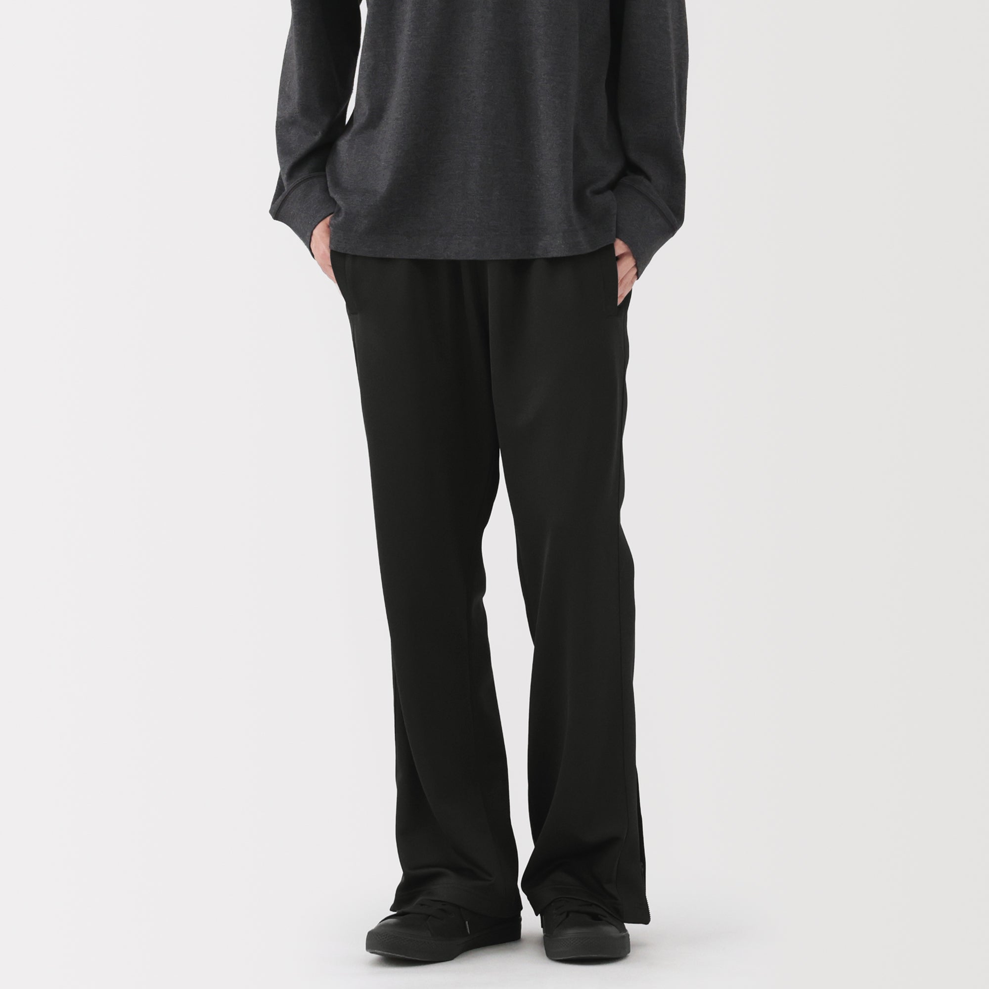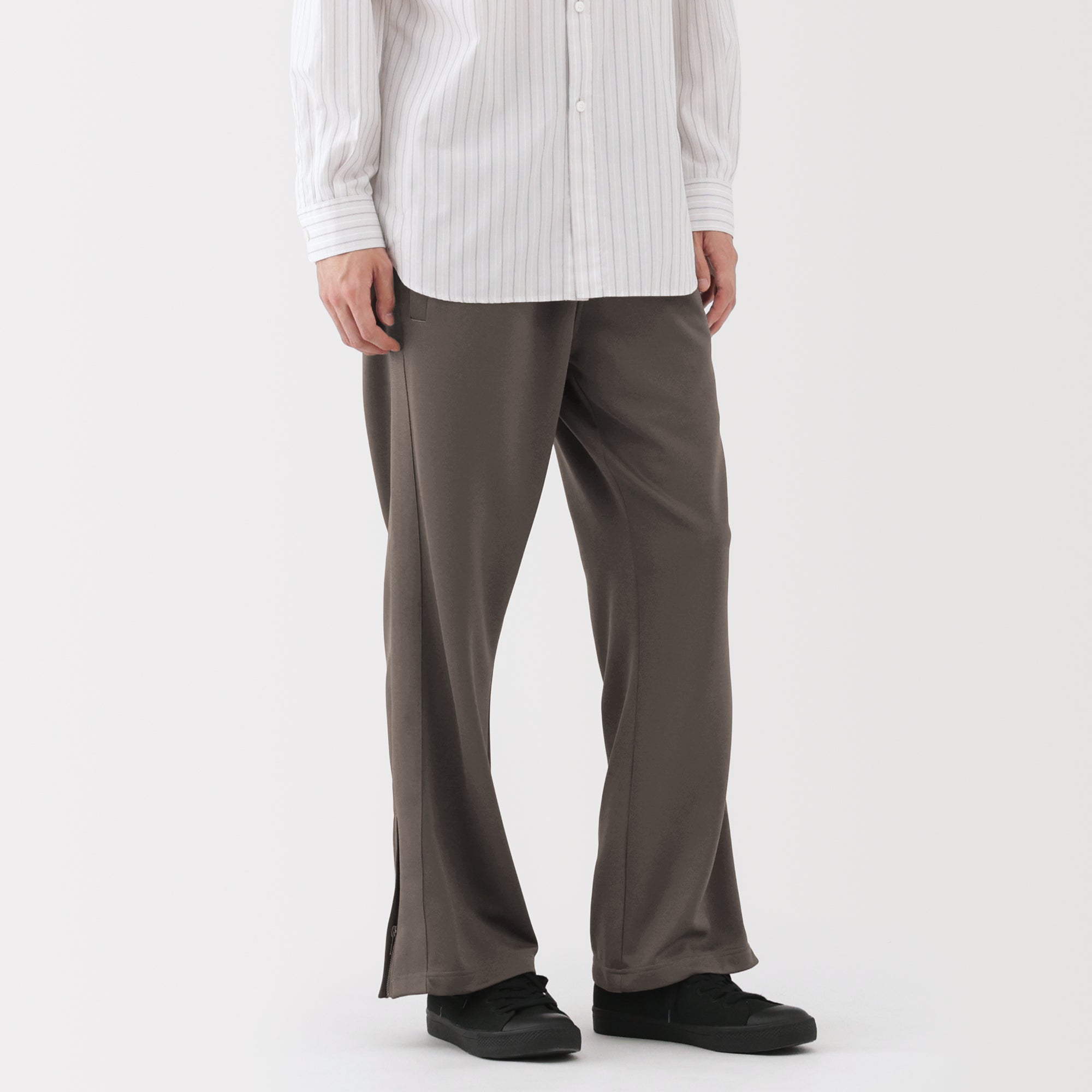 Men’s track pants made from smooth recycled polyester jersey fabric that is easy to move in. perfect for training and exercising. The hem of the pants feature a short zipper that can open up for more movement. With the waist drawstring hidden on the inside. these pants give you an adjustable and comfortable fit while keeping a neat appearance.