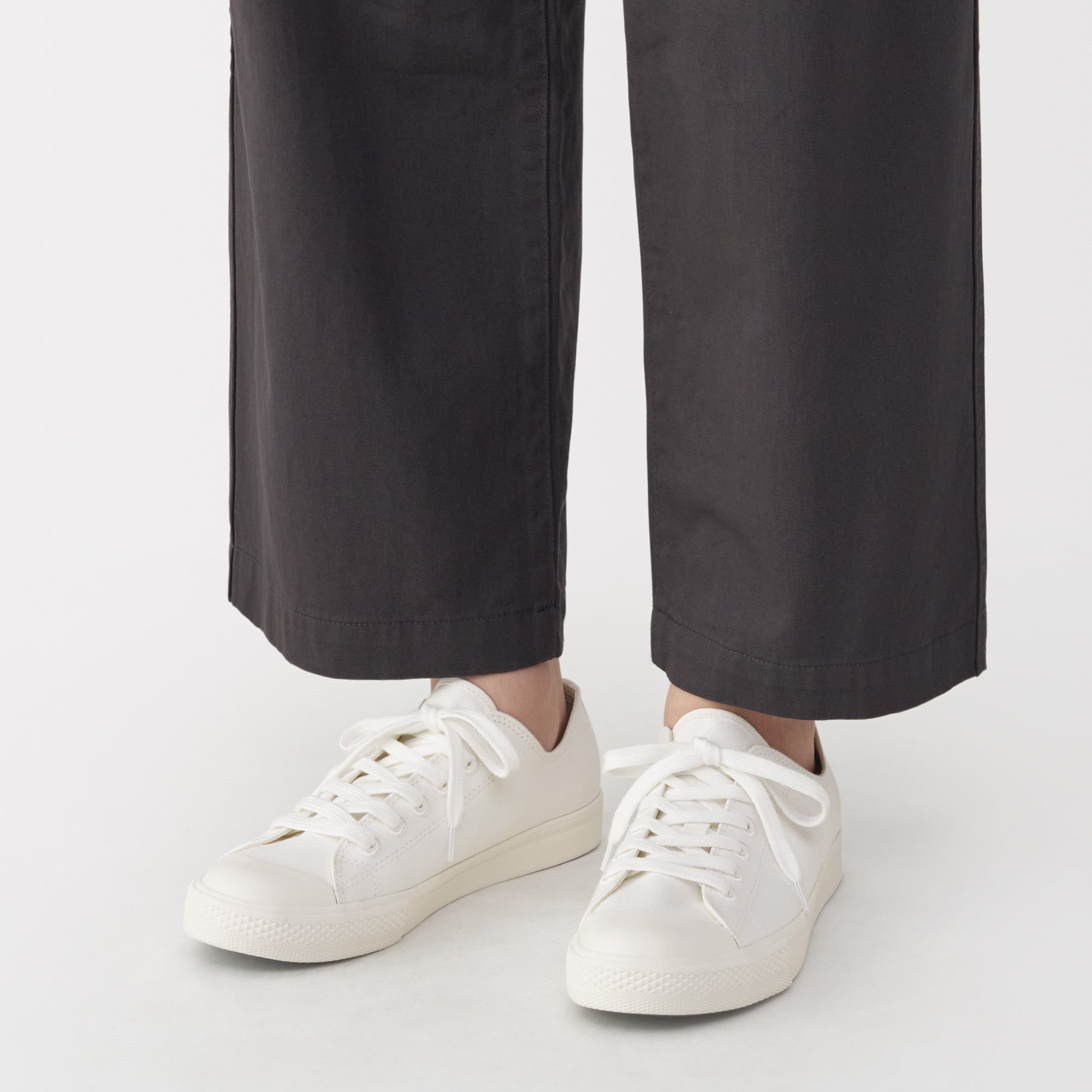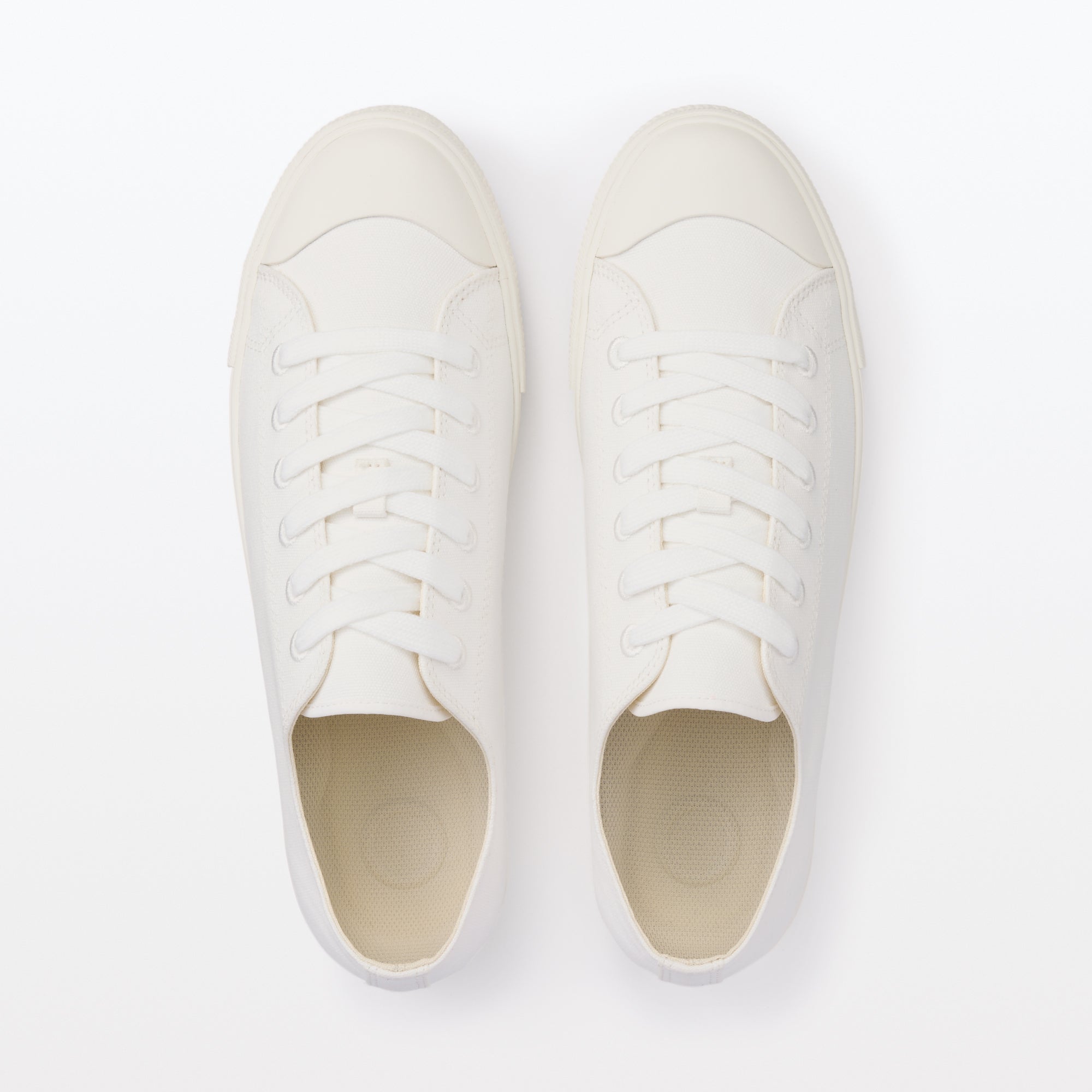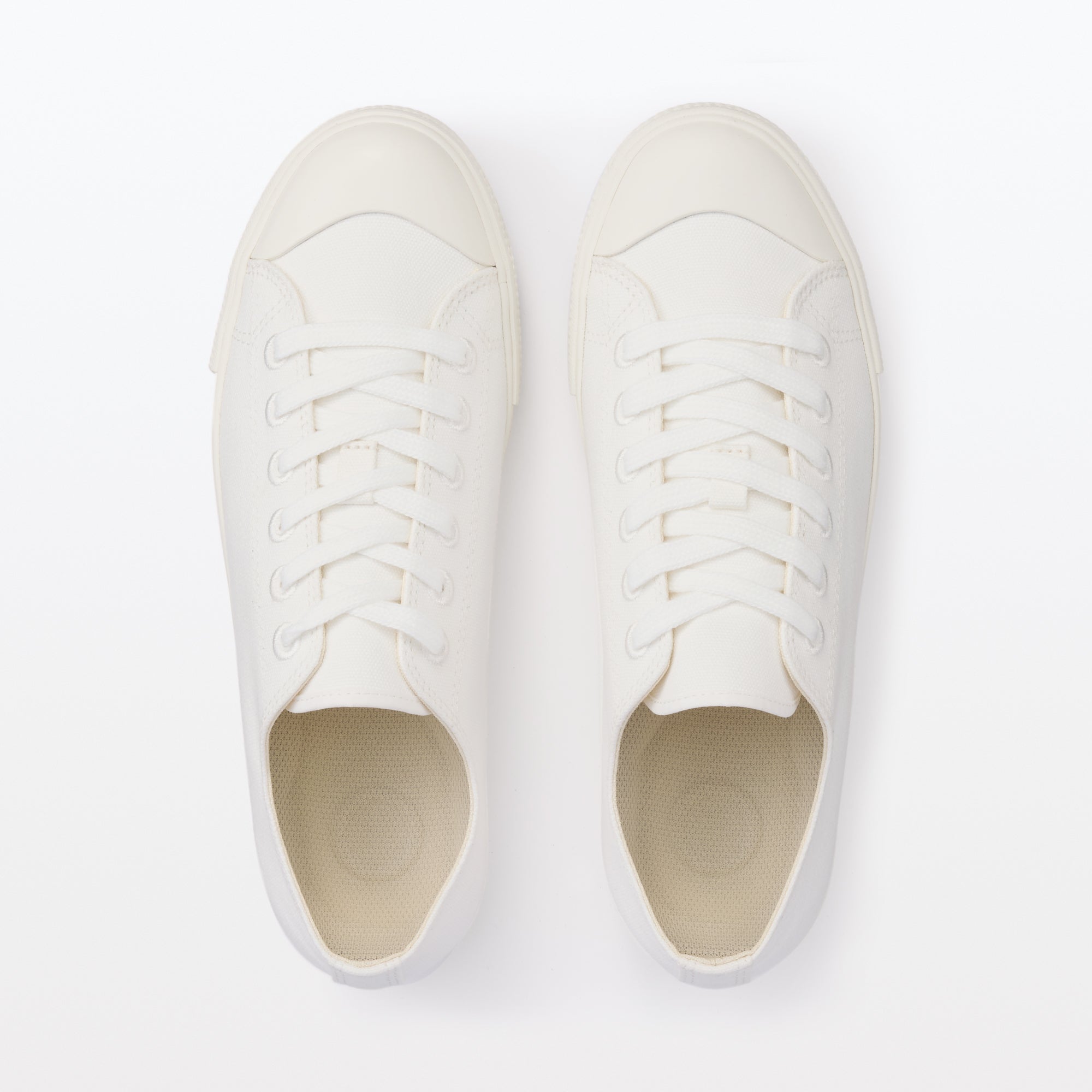 Experience all-day comfort with these casually stylish low-top canvas sneakers. A thick cushioned insole provides firm support for the arch and ball of your foot. reducing fatigue and making walking and standing more comfortable. The fabric is treated with a water-repellent finish that’s perfect for keeping your feet dry on rainy days.