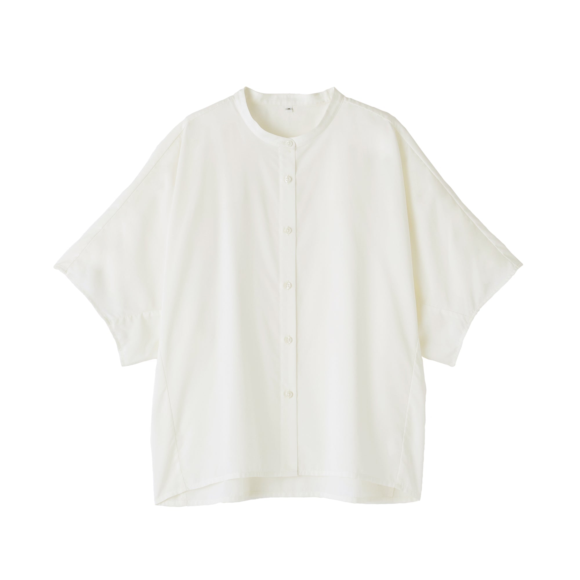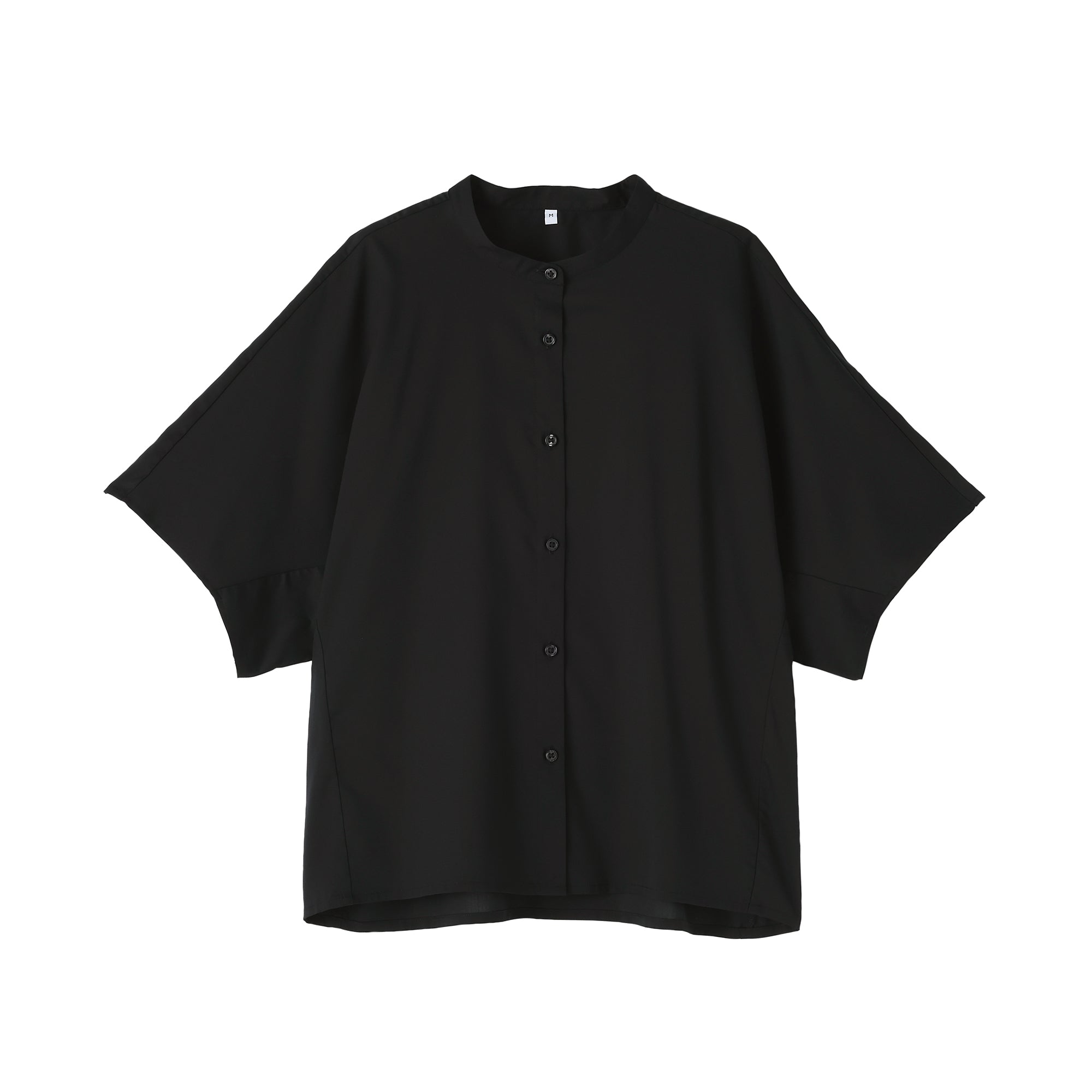 Made using recycled natural fibres. this button-up blouse is lightweight and smooth. It features loose dolman sleeves and a relaxed. feminine silhouette that is comfortable to wear.