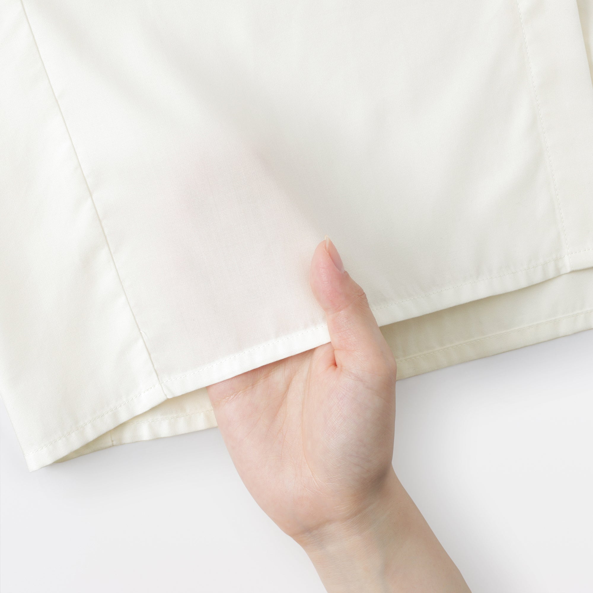 The fabric is made with a blend of recycled polyester and lyocell yarn. making it wrinkle-resistant after washing. The surface of the lyocell fabric has a cooling feel so it is suitable for everyday wear. even during the hot summer months.