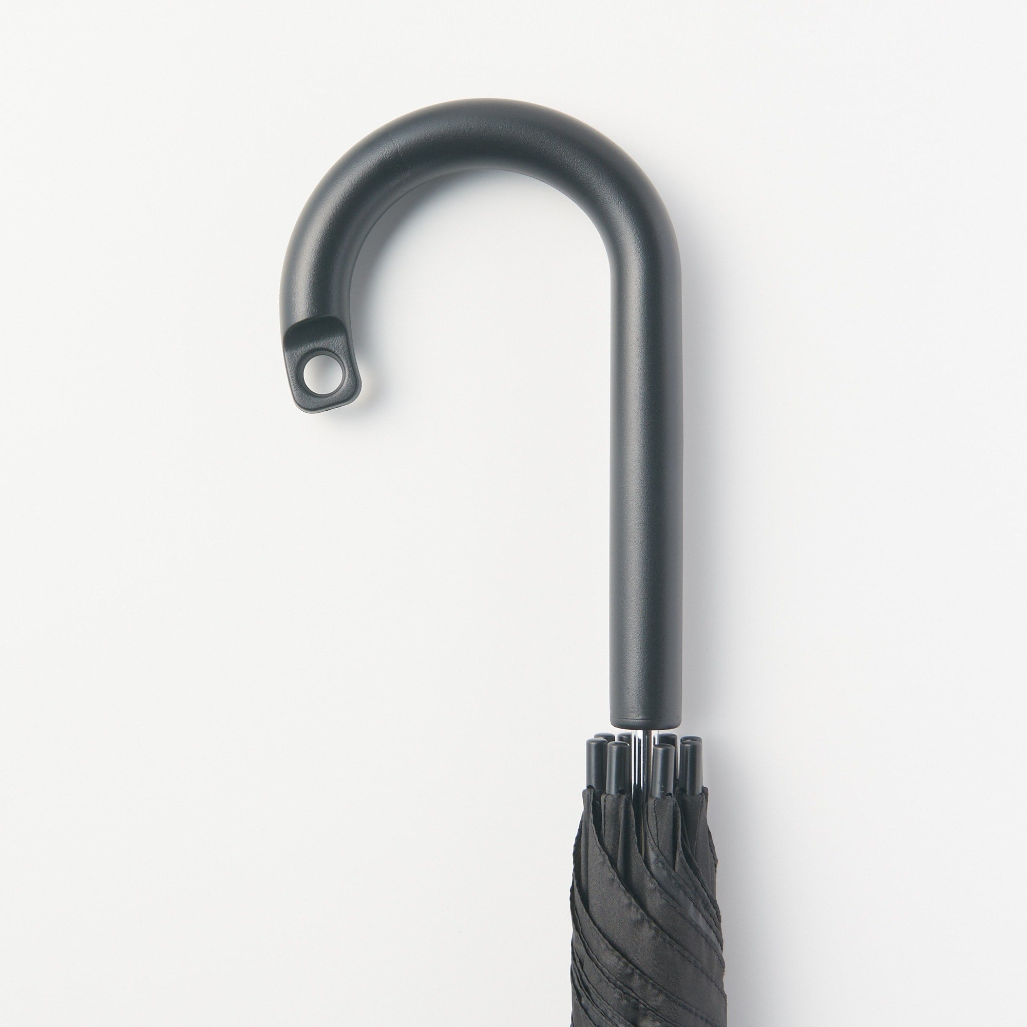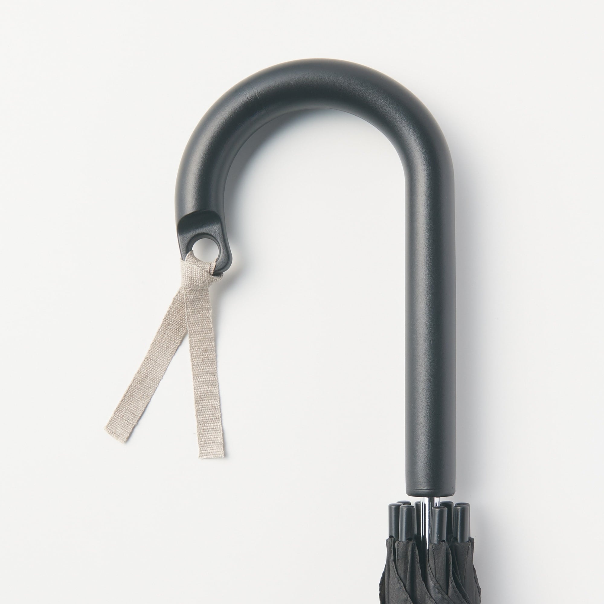 A sturdy umbrella that can be buttoned closed both ways. A marker (not included with the product) can be attached to the handle for easy identification.