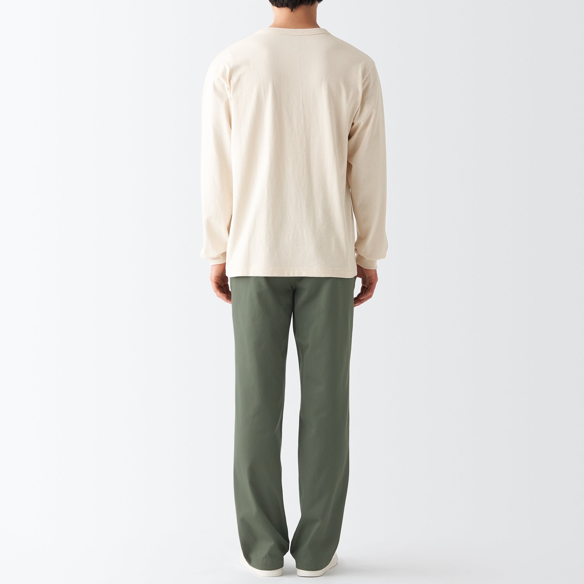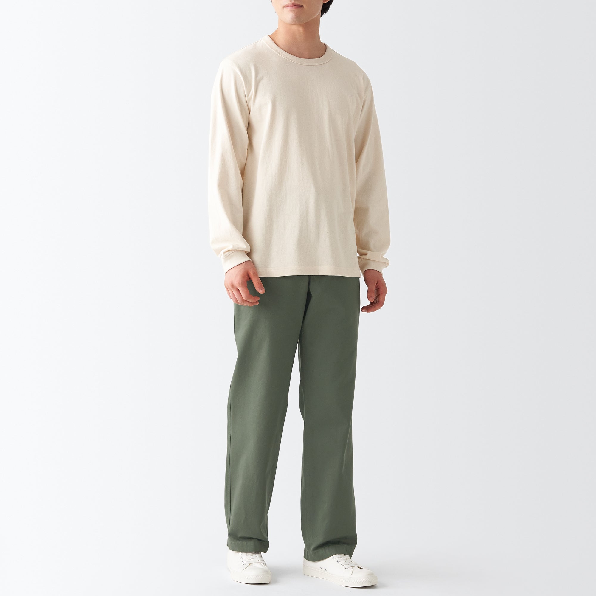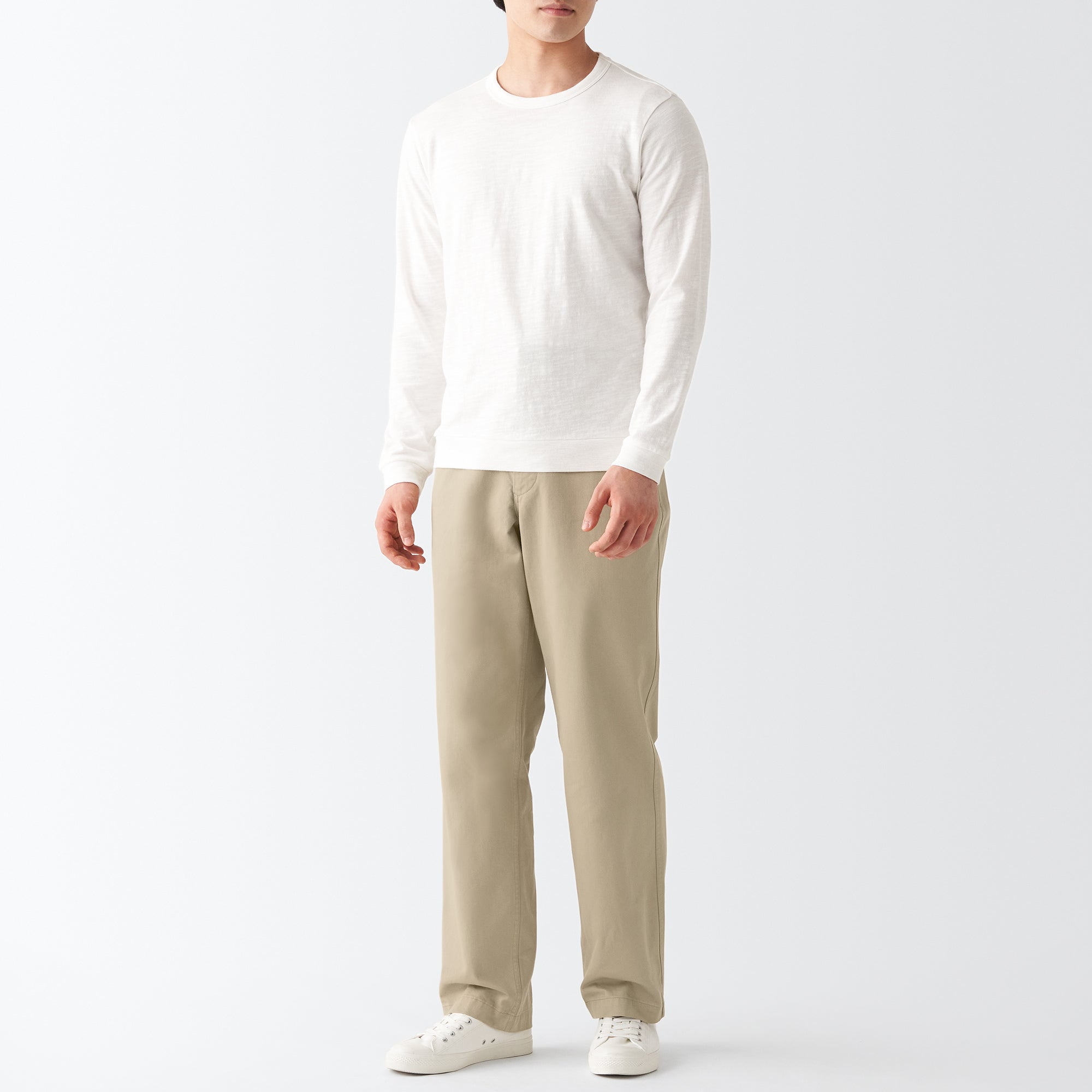 Pants made from 100% Cotton. woven into a durable chino fabric. Made with organic cotton. Regular fit. with of 82cm/32 inseam.