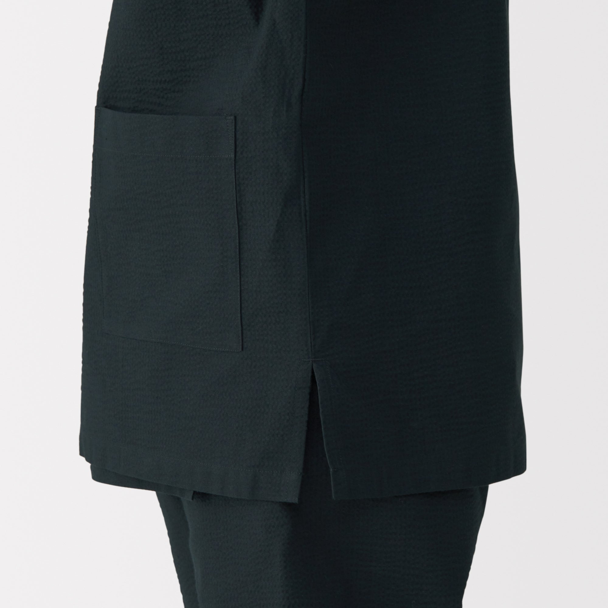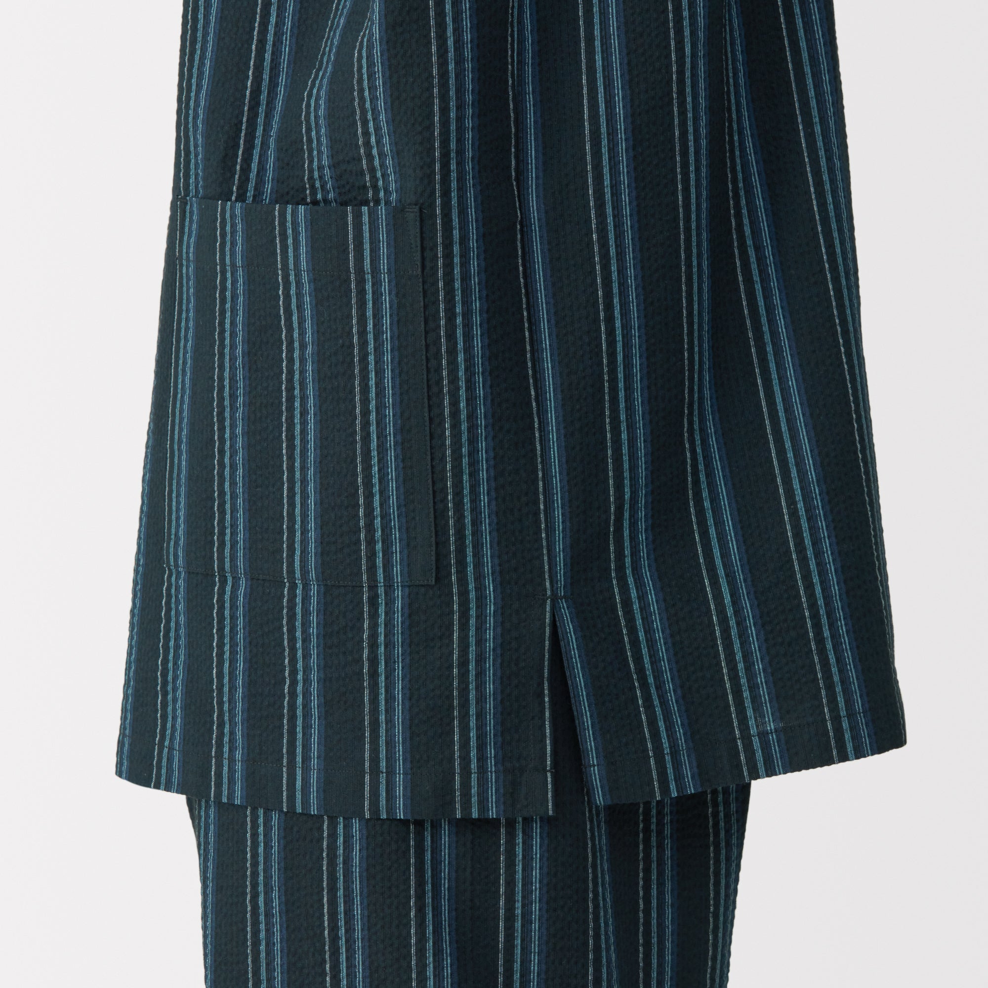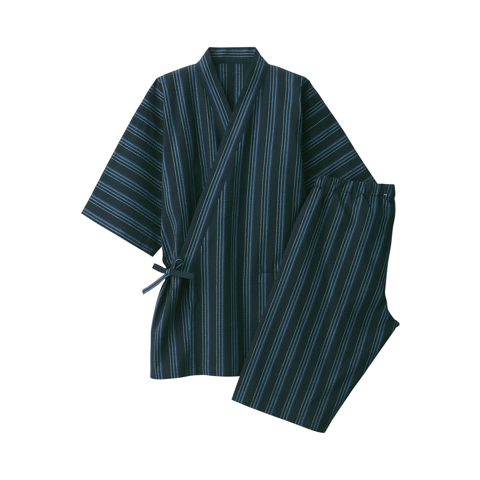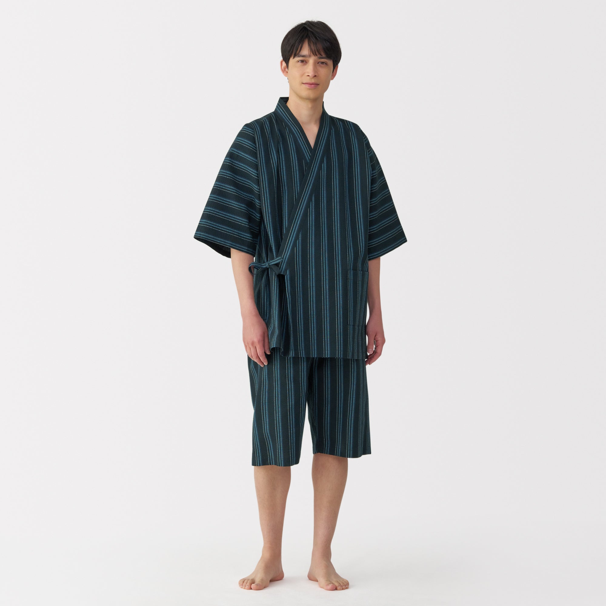 Relax in the comfort of traditional Japanese loungewear with this Shijira Jinbei set! Made from soft and breathable organic cotton for ultimate comfort. this set was designed with a relaxed fit and unique crepe-like texture. so you can stay cool even on the warmest nights. The fabric is dry and crisp with a slightly rough texture that softens over time with each wash and wear. The open weave of Shijira fabric allows for excellent airflow. preventing the material from sticking to your skin. Great for unbeatable comfort in any weather!