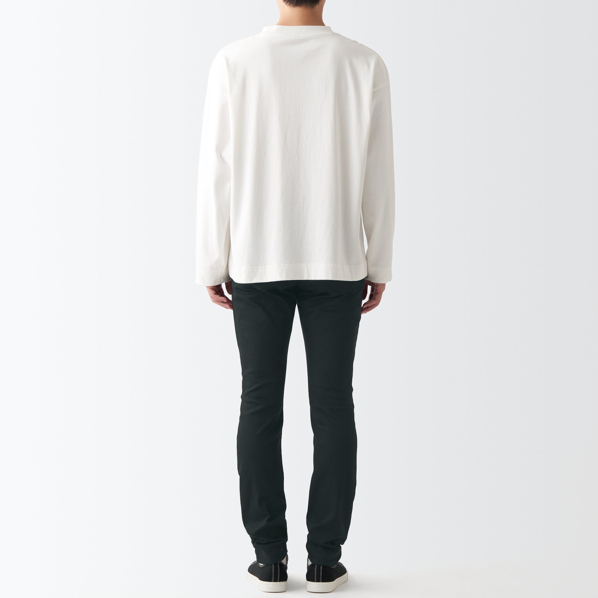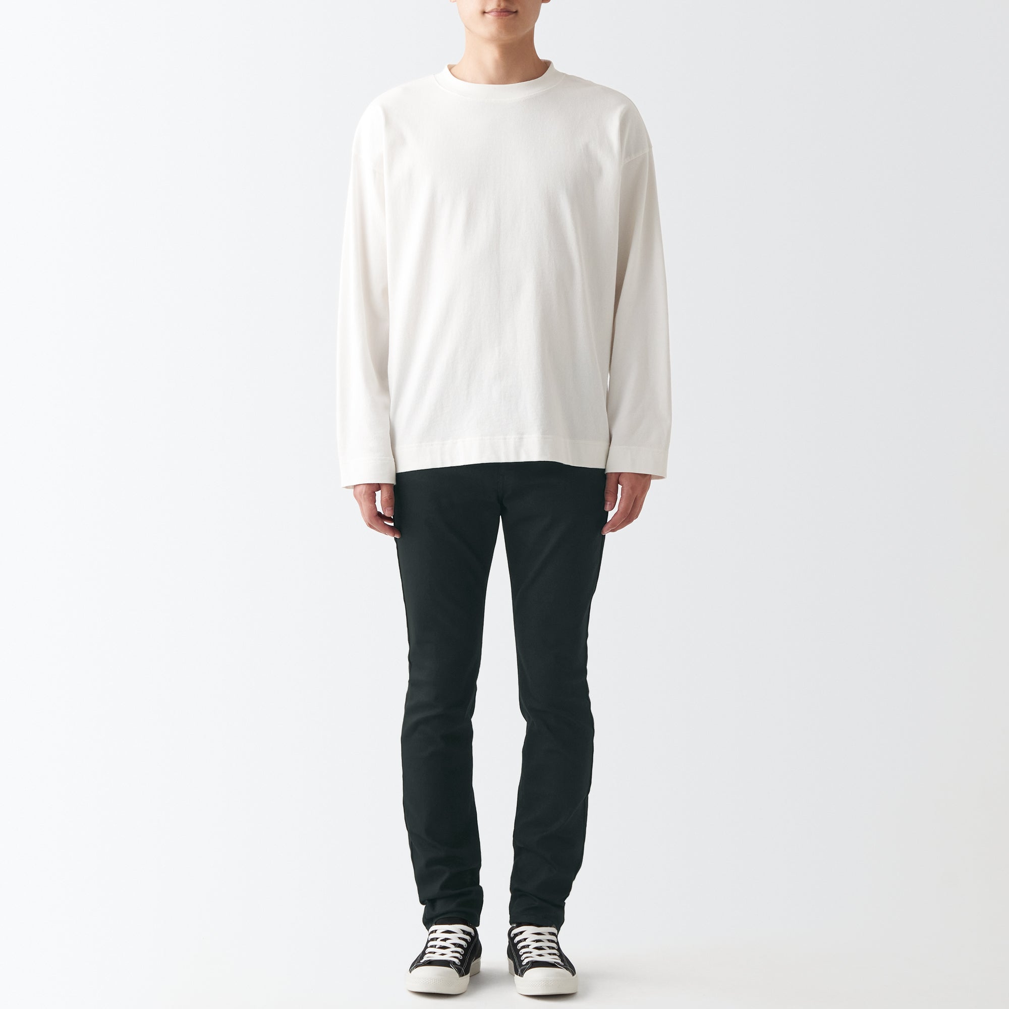 The Skinny Fit perfectly follows the shape line of your legs by using high elastic fabric. Designed with a thinner hem. and focusing on the silhouette. this is a timeless denim for everyday wear. Available in 2 colors. dark navy and black. that are easy to mix and match.