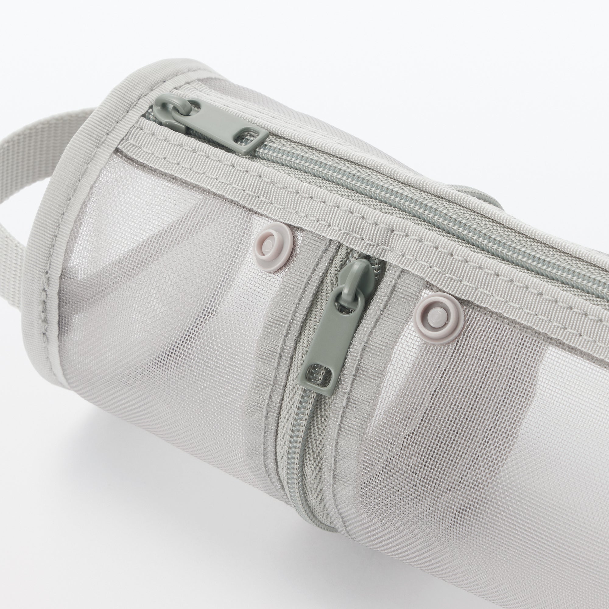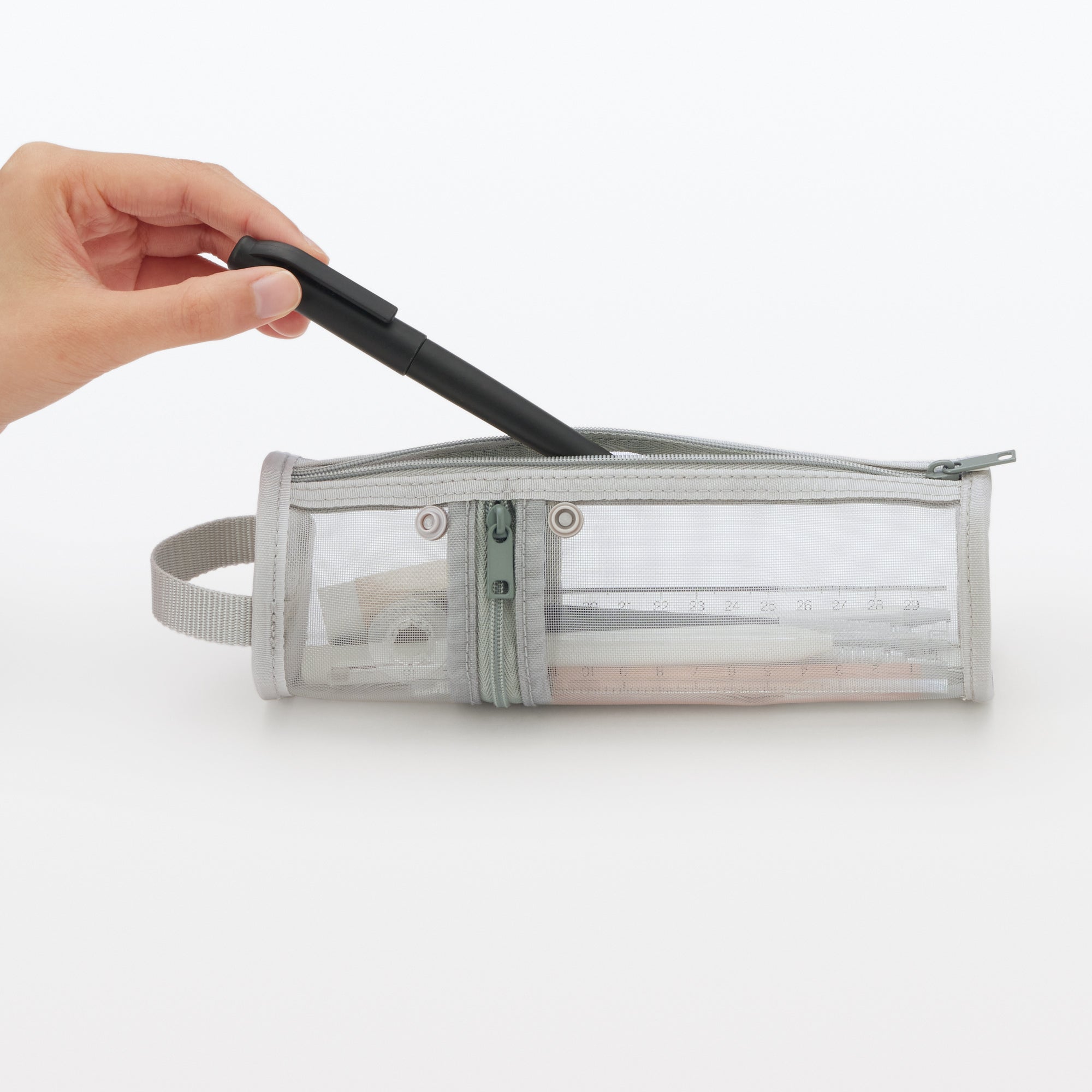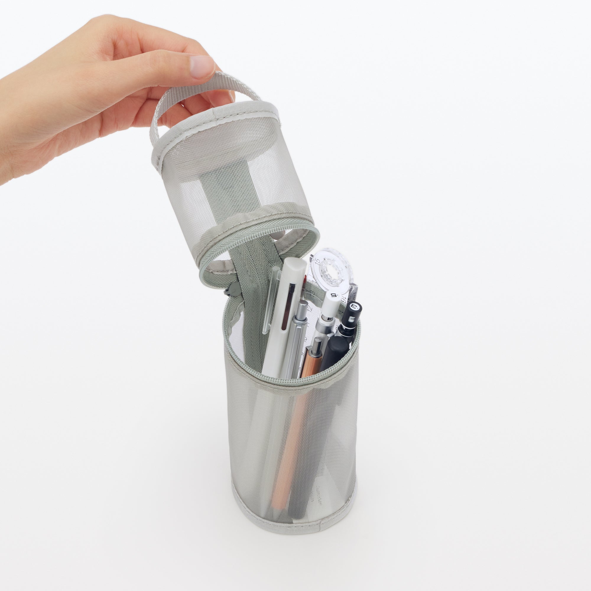 A pen case made of light and durable nylon mesh fabric. structured in a way that can open both horizontally or vertically for your convenience.