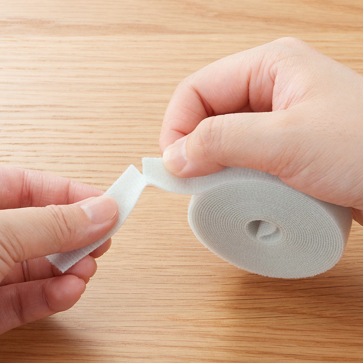 A roll of fastening tape made with 2 (5 cm) perforated intervals that can be cut easily by hand without using scissors. This multi-purpose tape is usable both indoors and outdoors. convenient for organizing cables. fastening wires. garden utilities. etc.