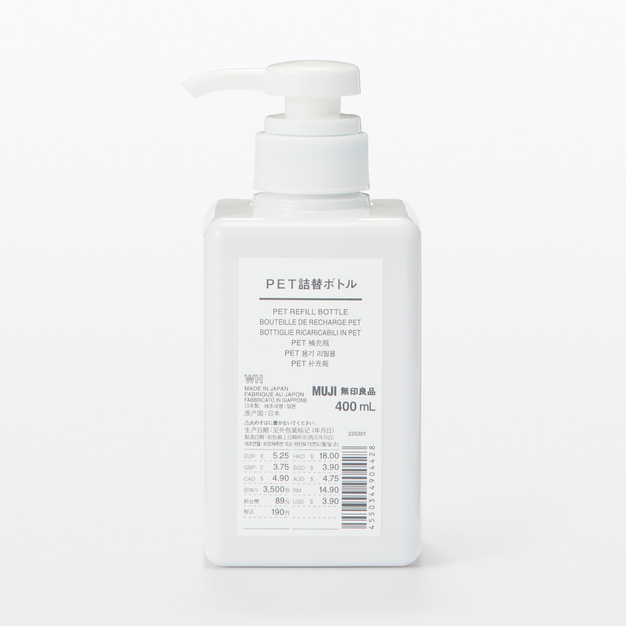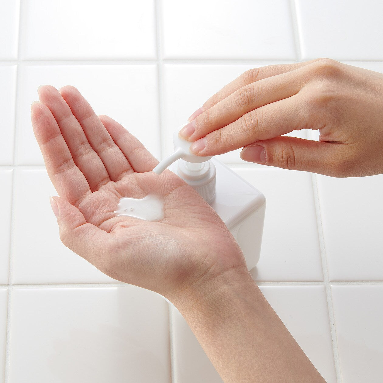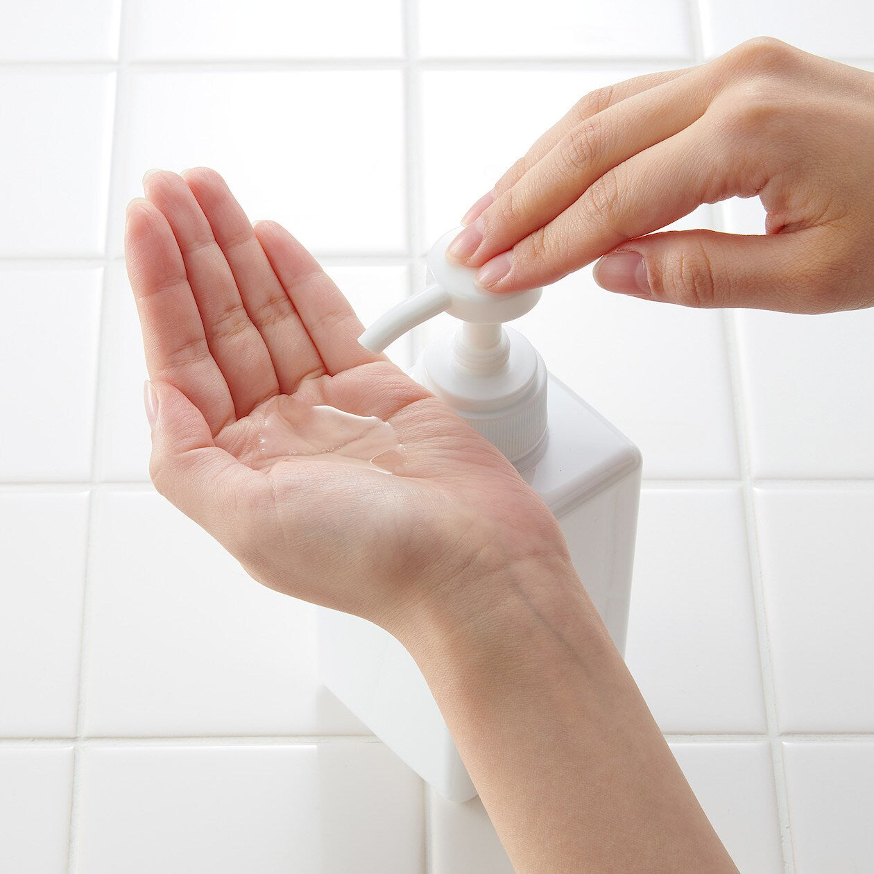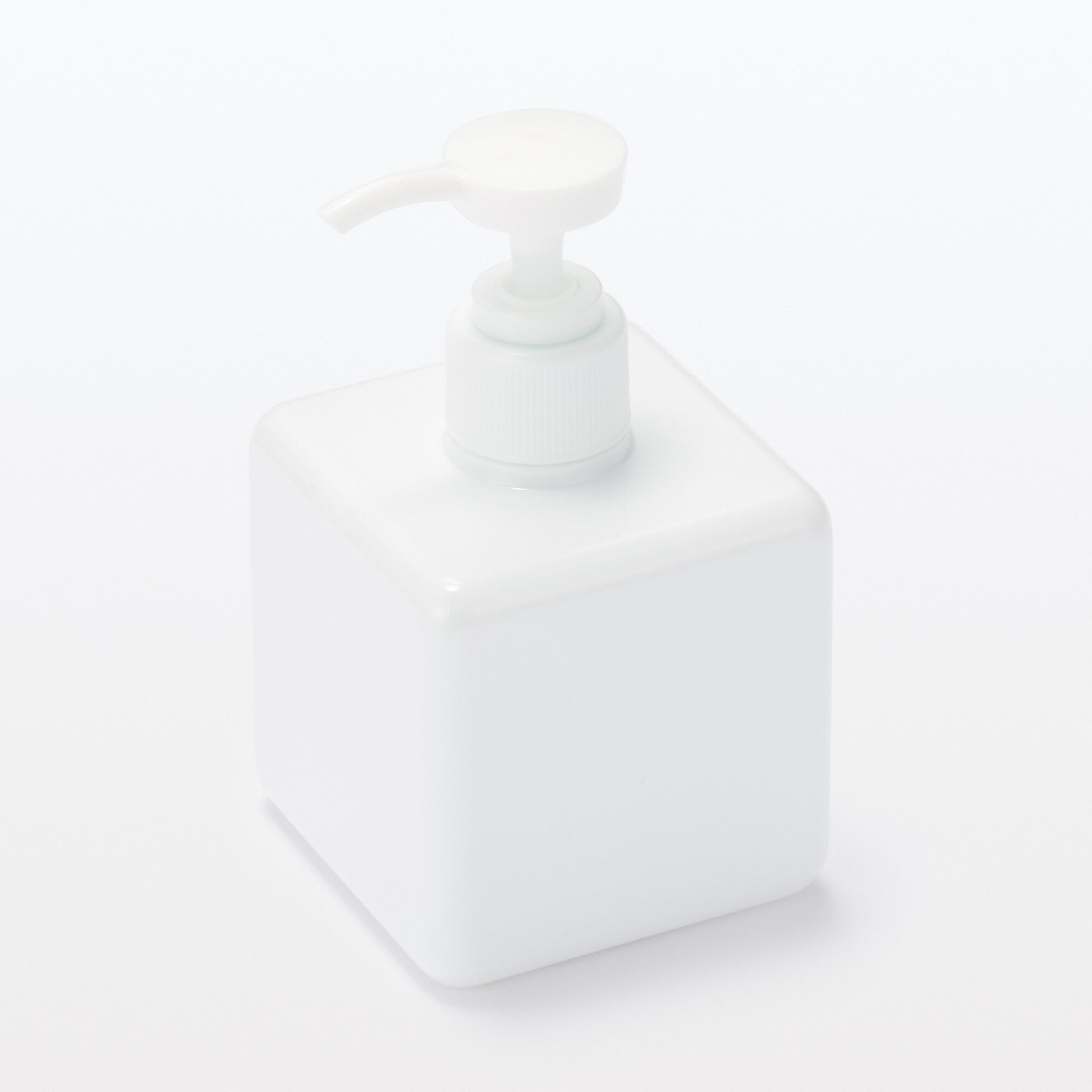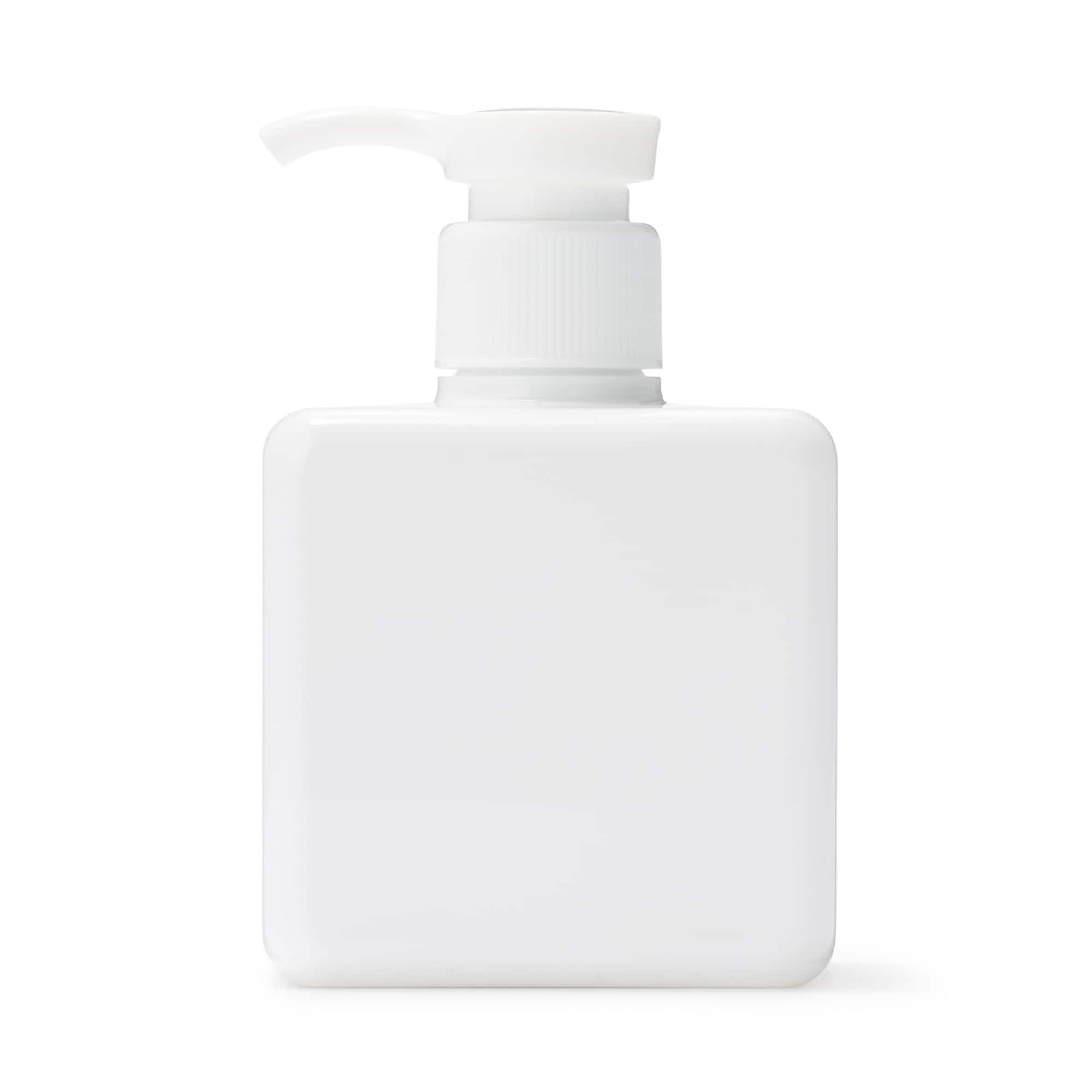 Easy-to-clean pump-type soap dispenser with sturdy square base.