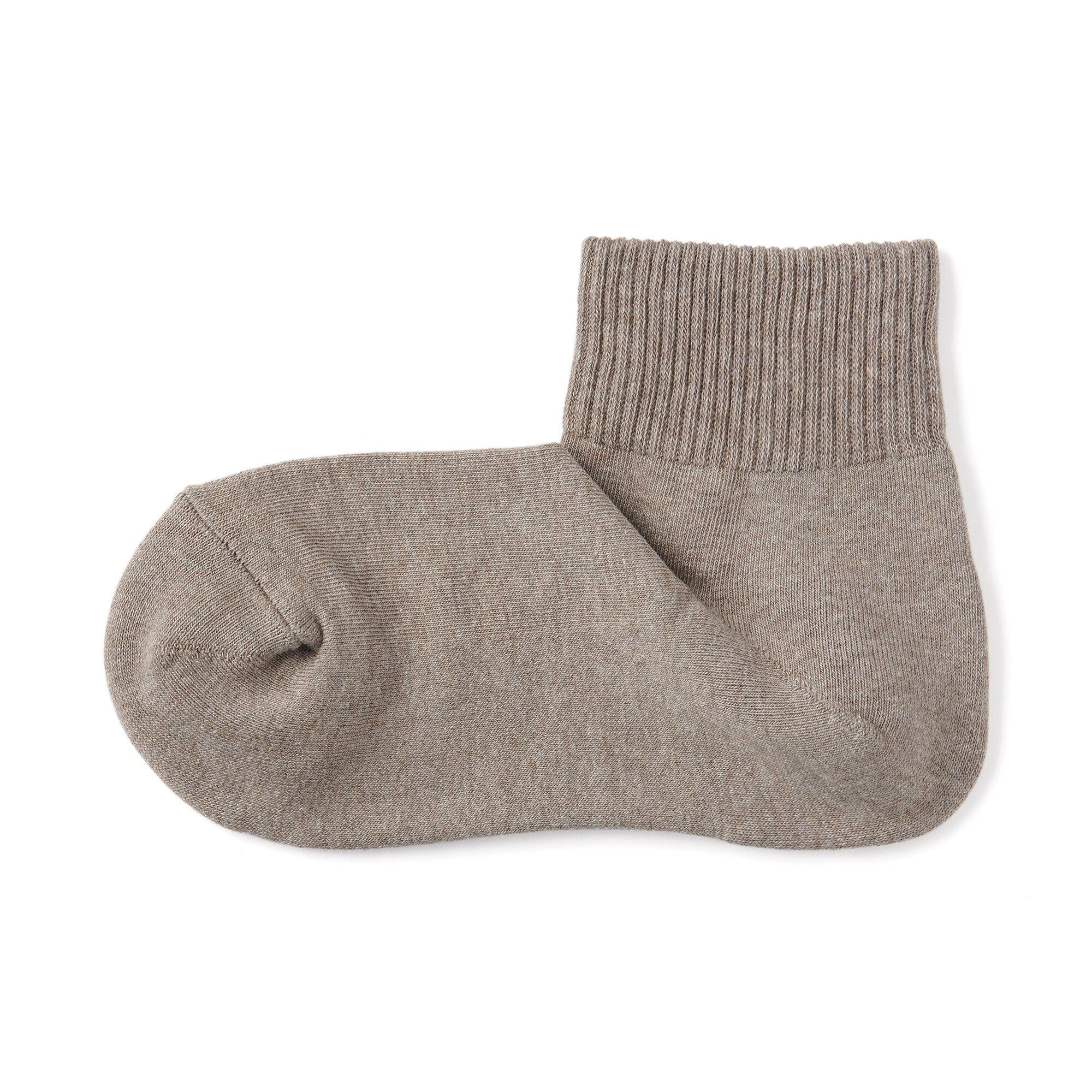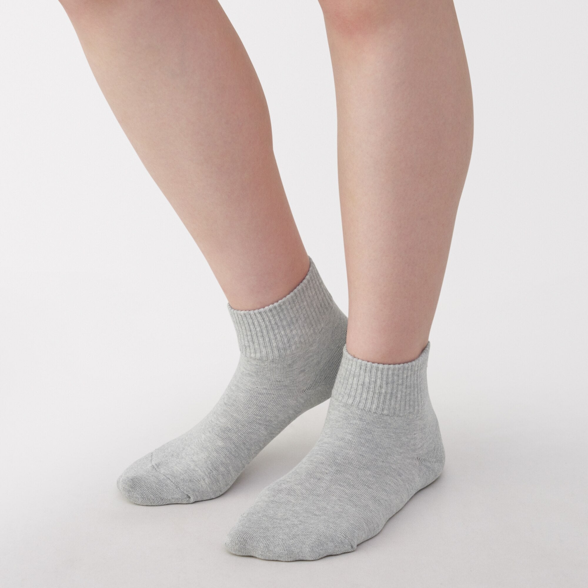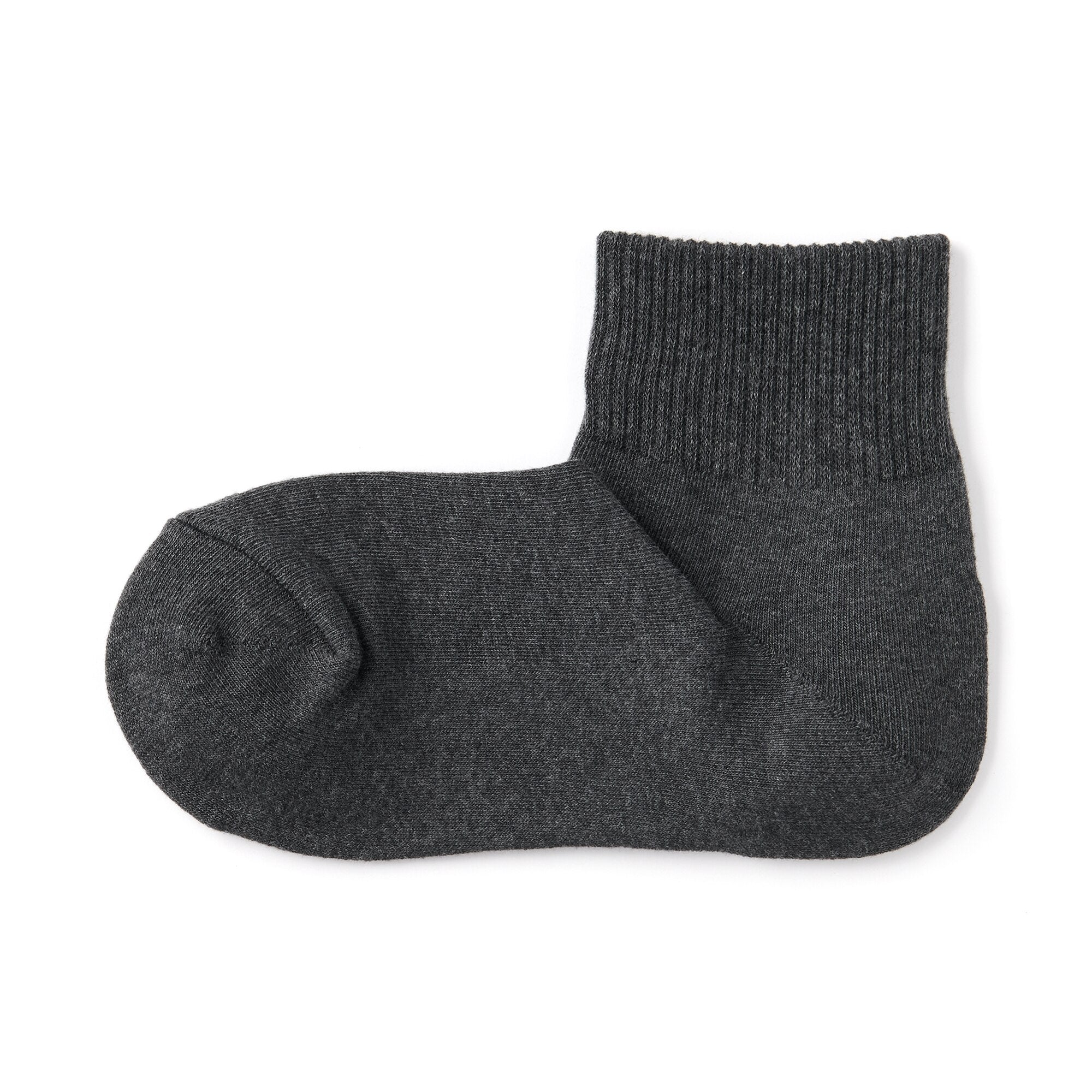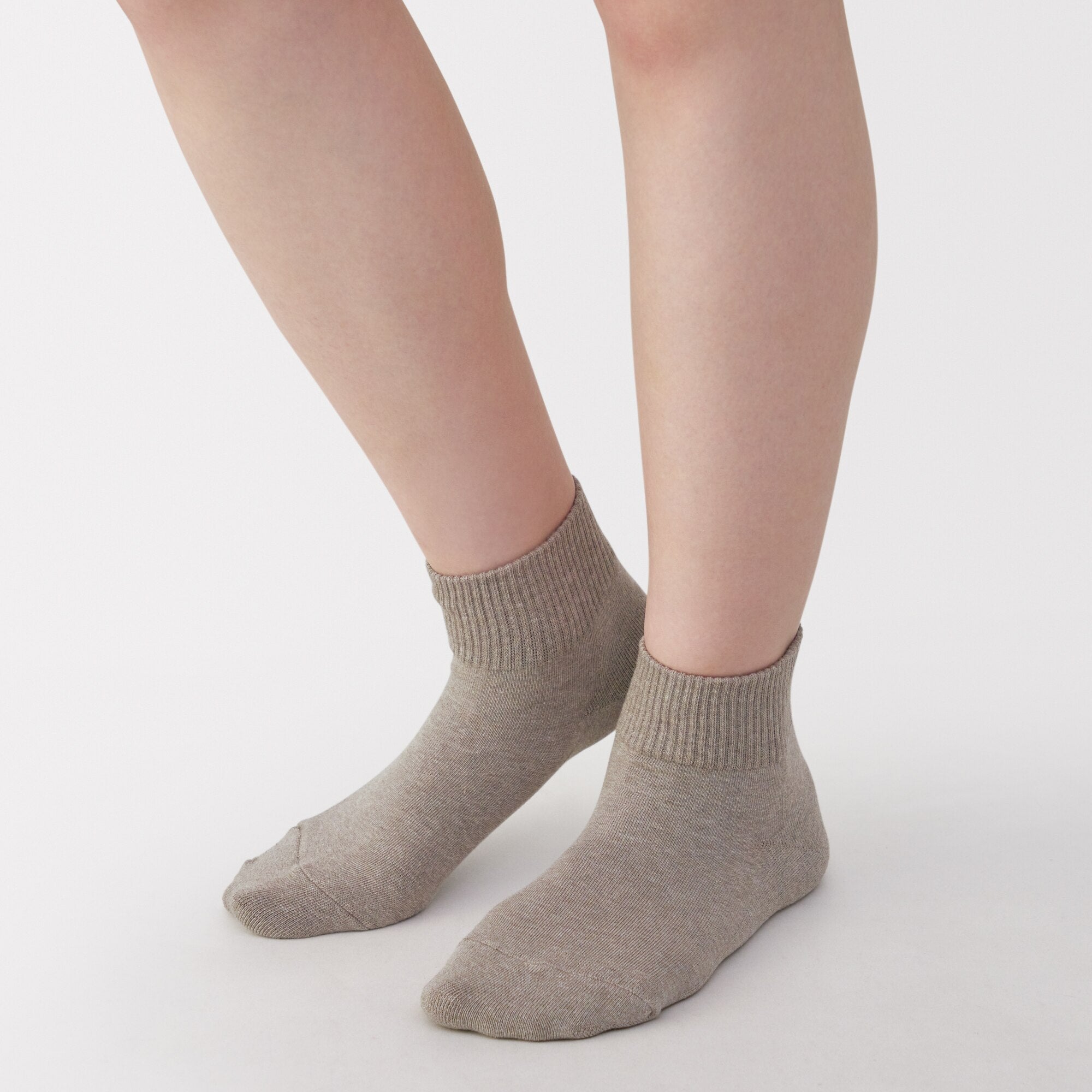 Soft pile-knitted sole with a sweat de-odorizing effect. The heel of the socks is knitted at a right angle to wrap comfortably and naturally around the heel.