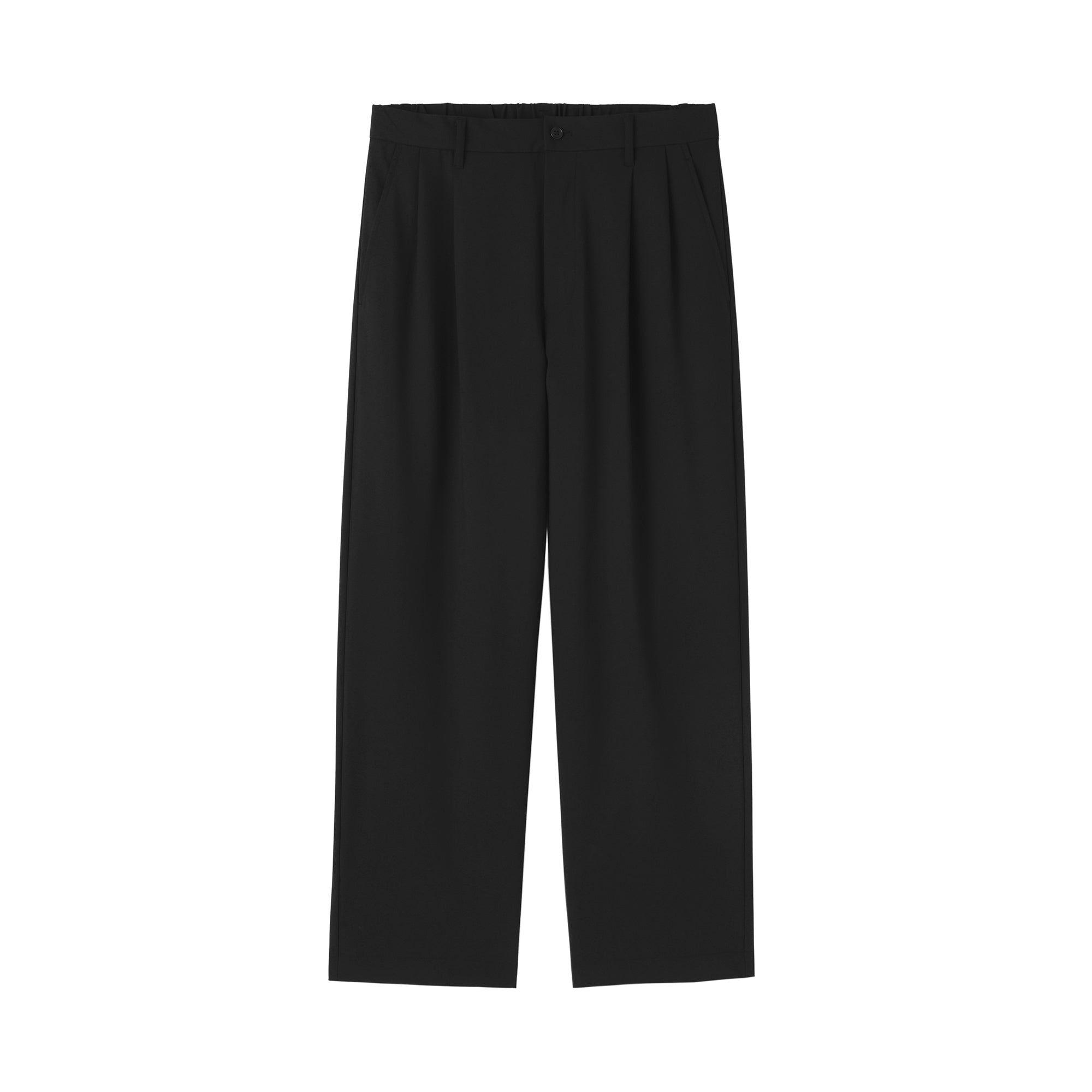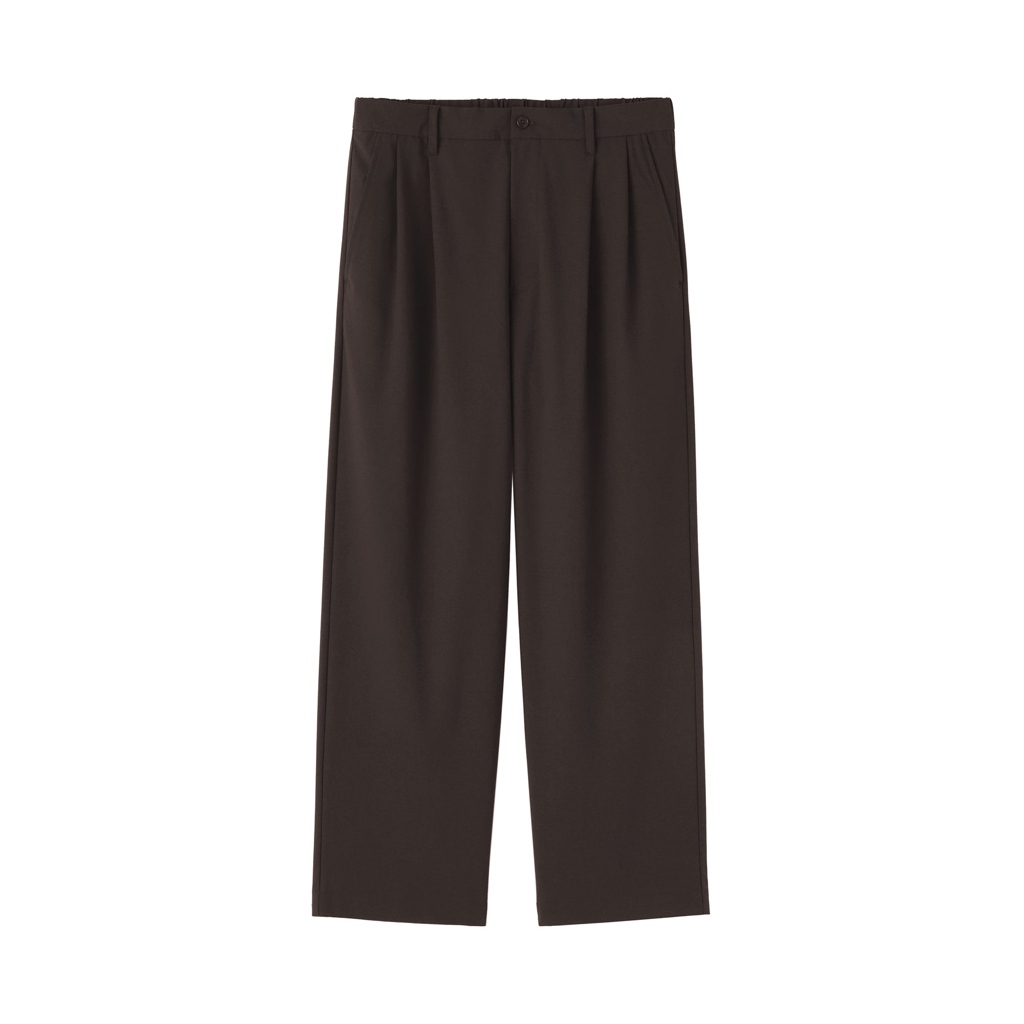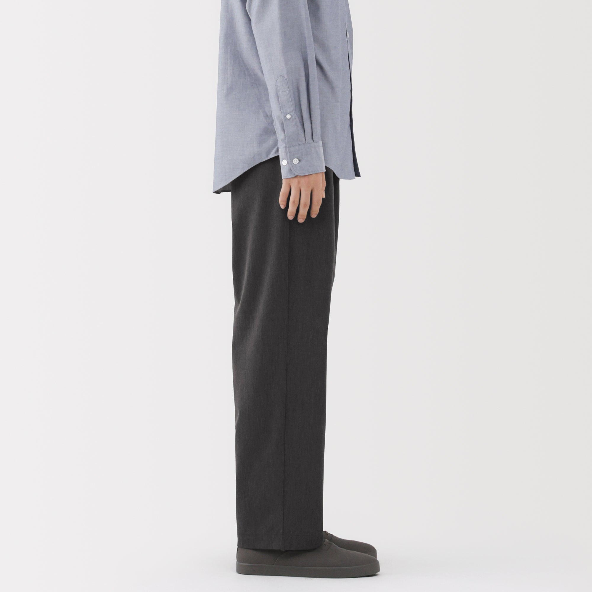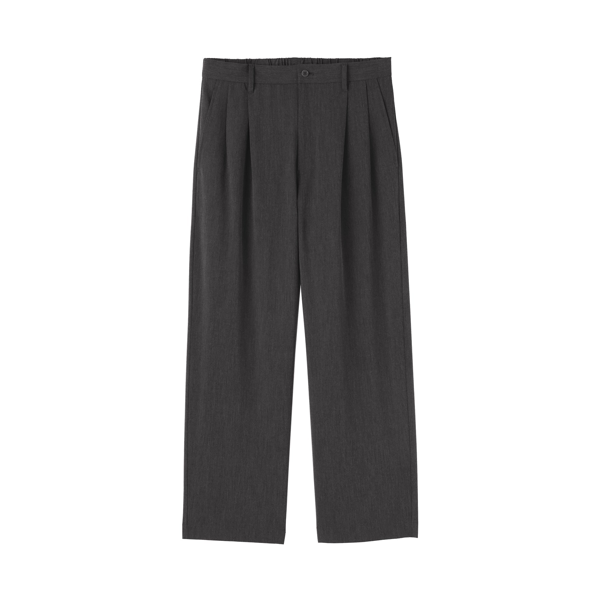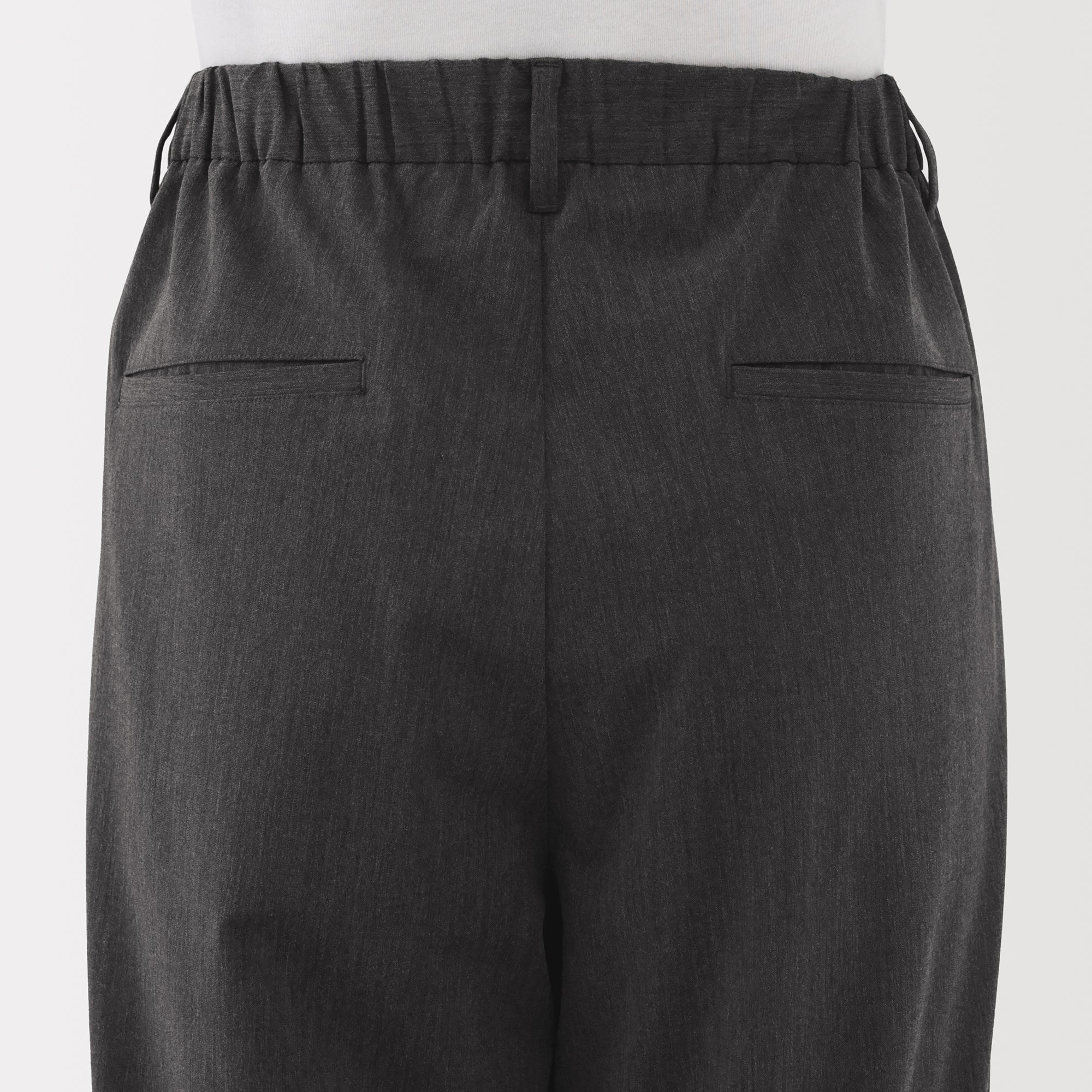 Wide-leg. relaxed fit pants with front darts. made with recycled material that dries quickly after washing. The darts add a three-dimensional effect to the front of the pants. There is a drawstring on the inside of the waistband for an adjustable fit.