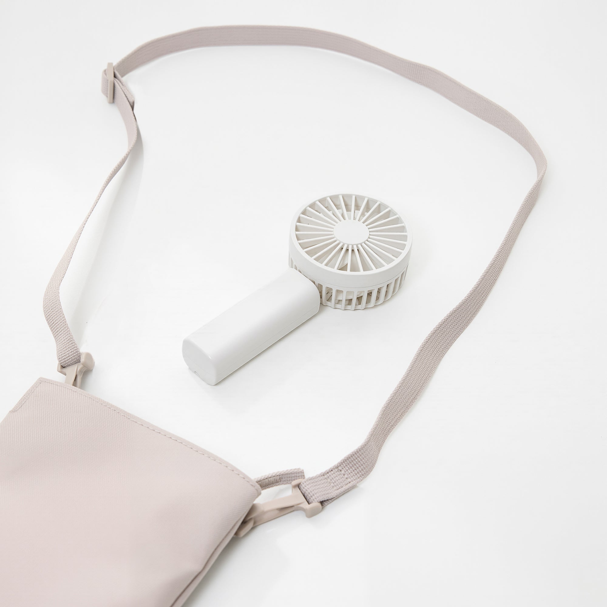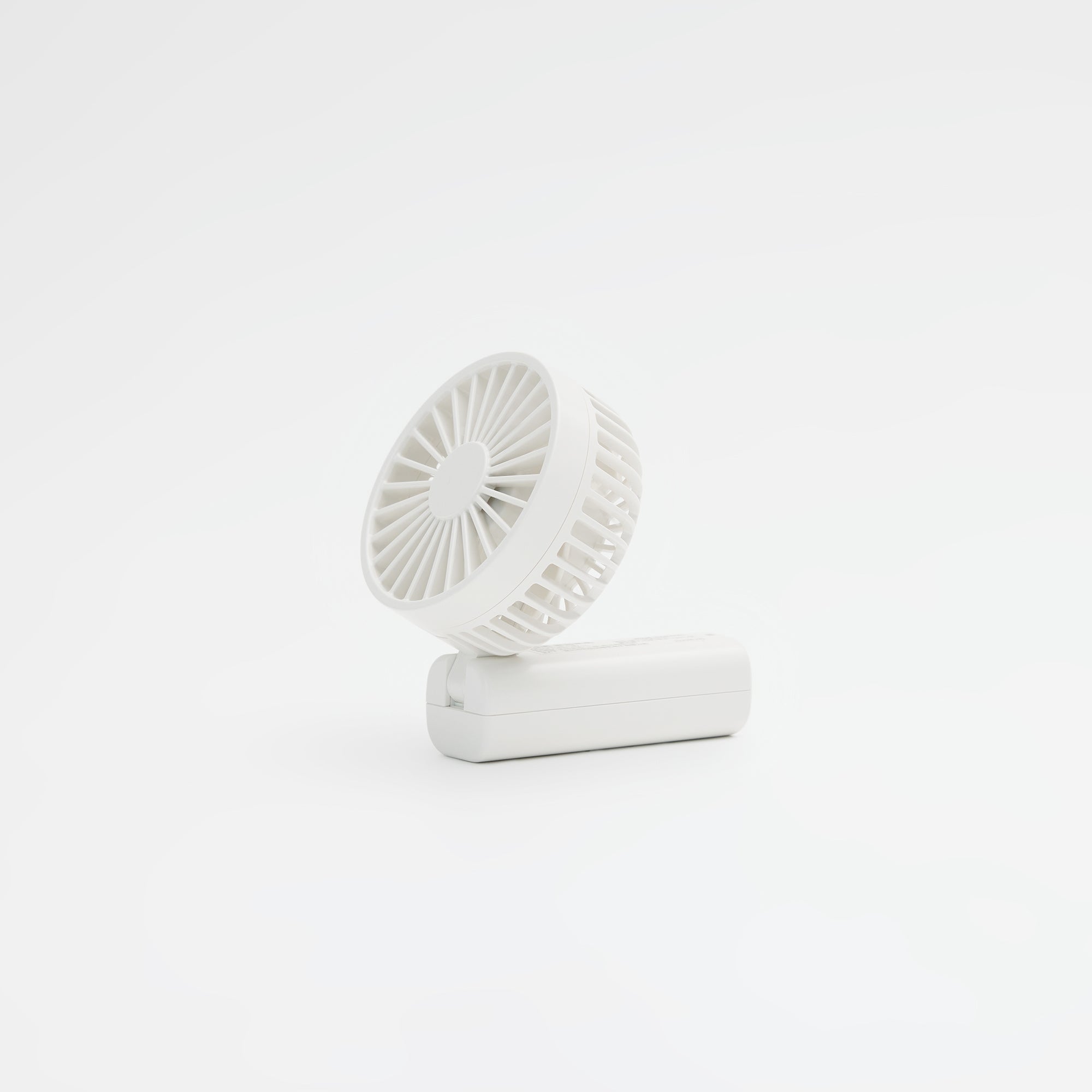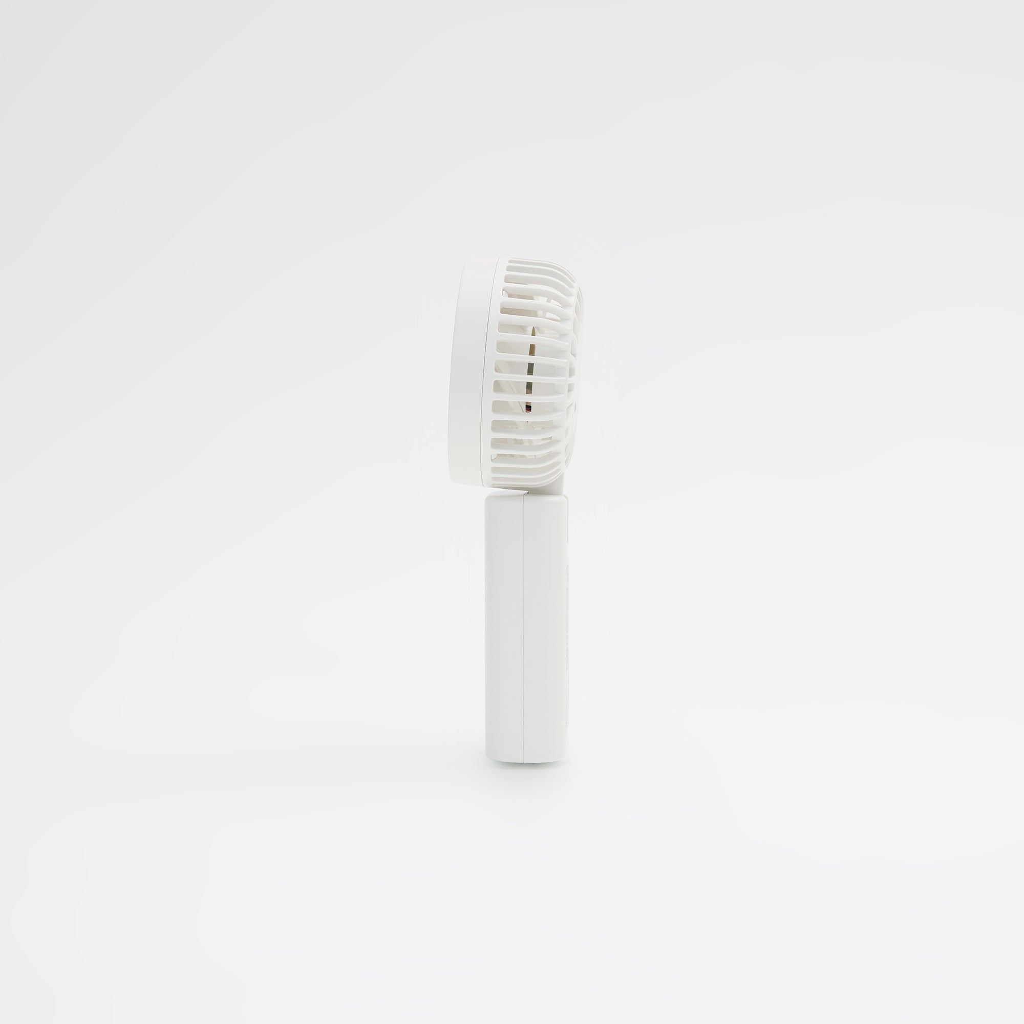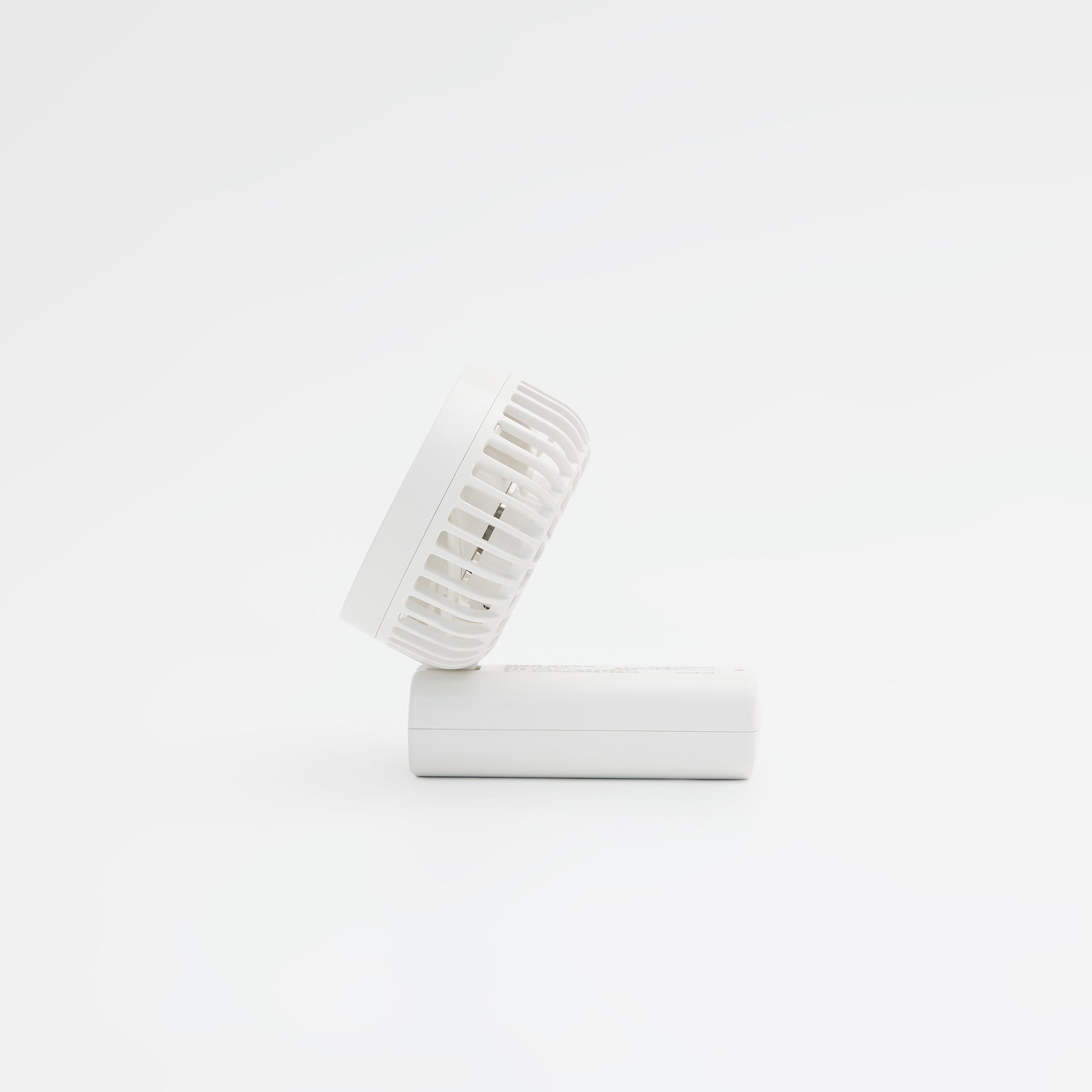 This portable fan is the perfect size to bring with you on the go. The head is foldable up to 120°. so it can be angled up and used on a tabletop as well. Simple button control allows you to easily turn the fan on/off and cycle through the 4 levels of wind speed.