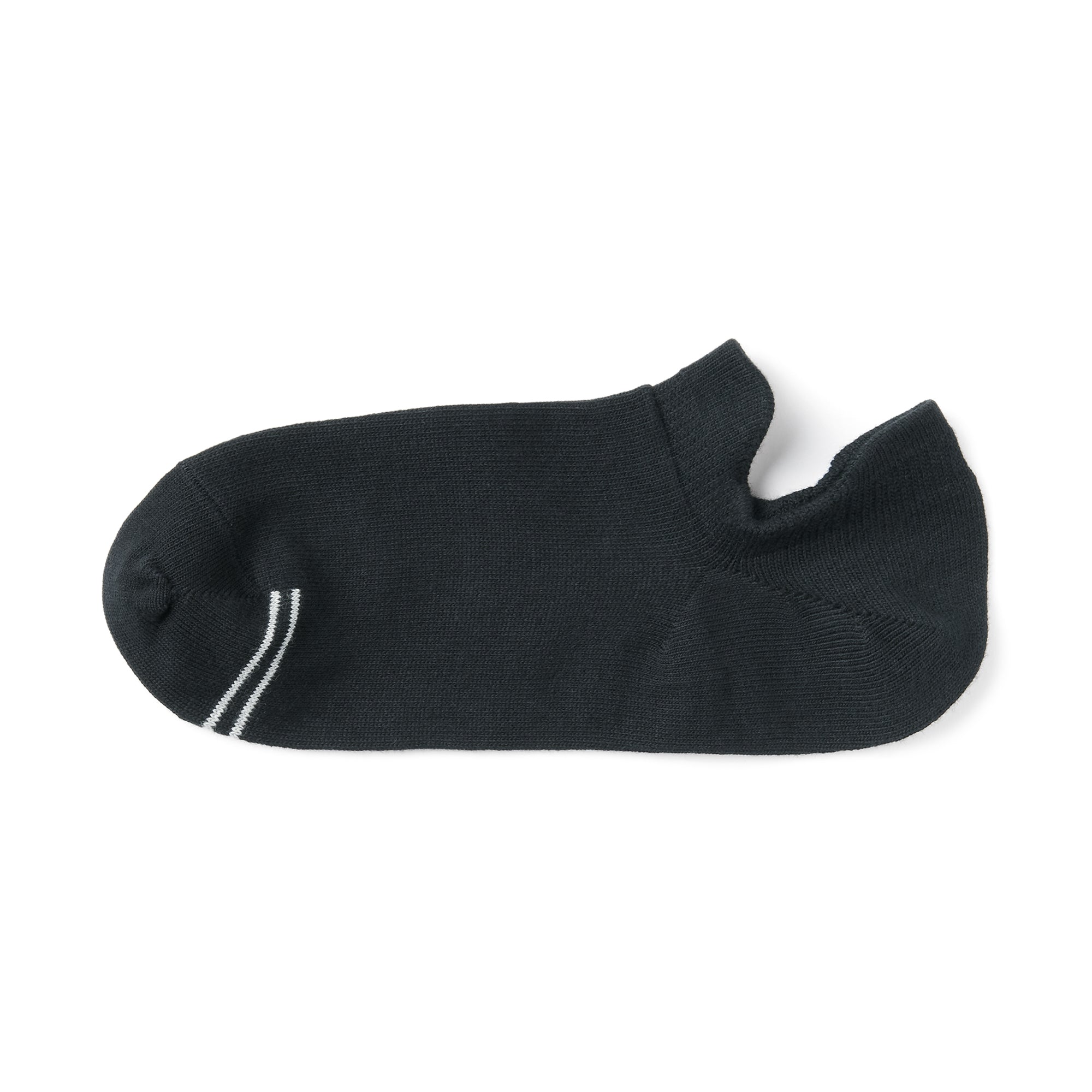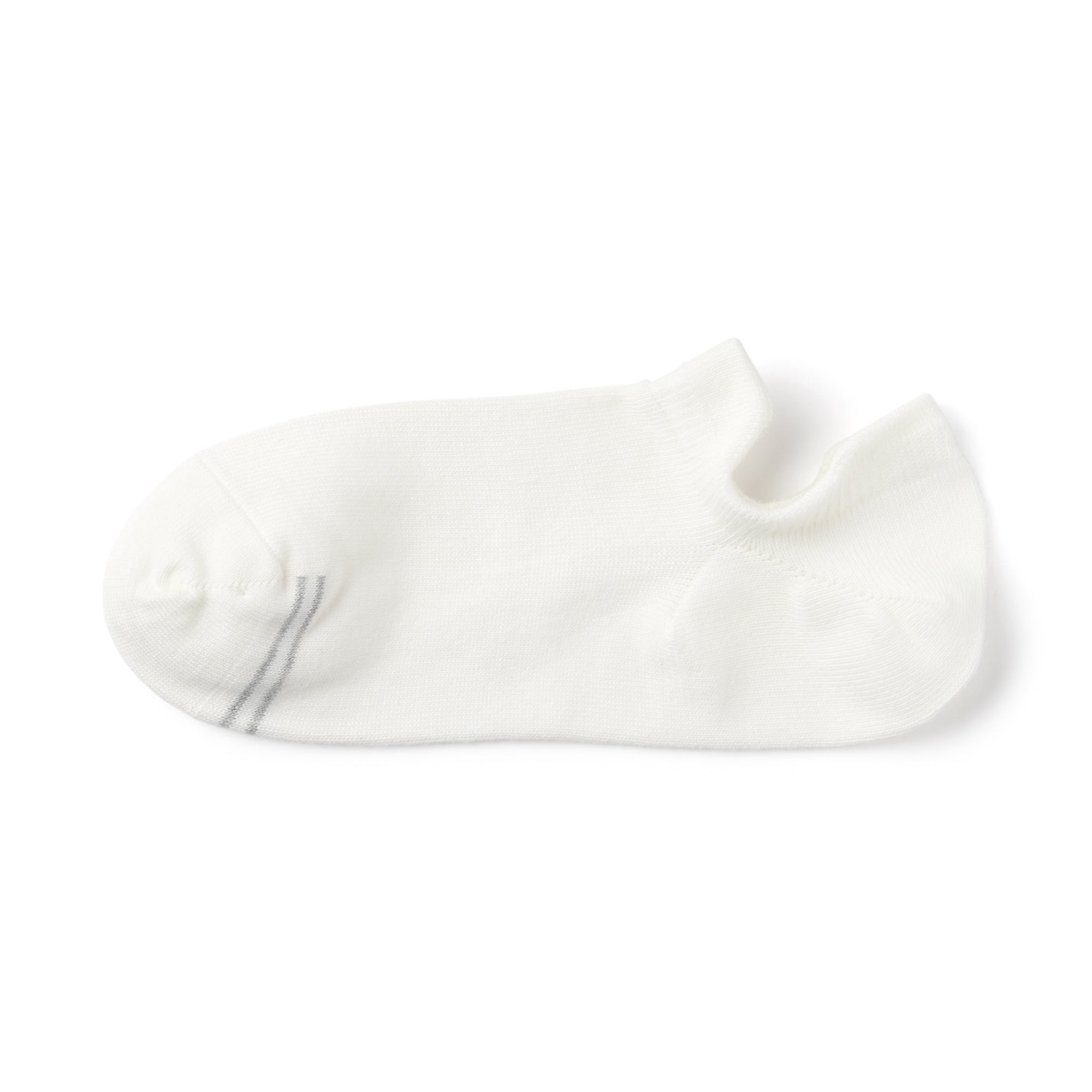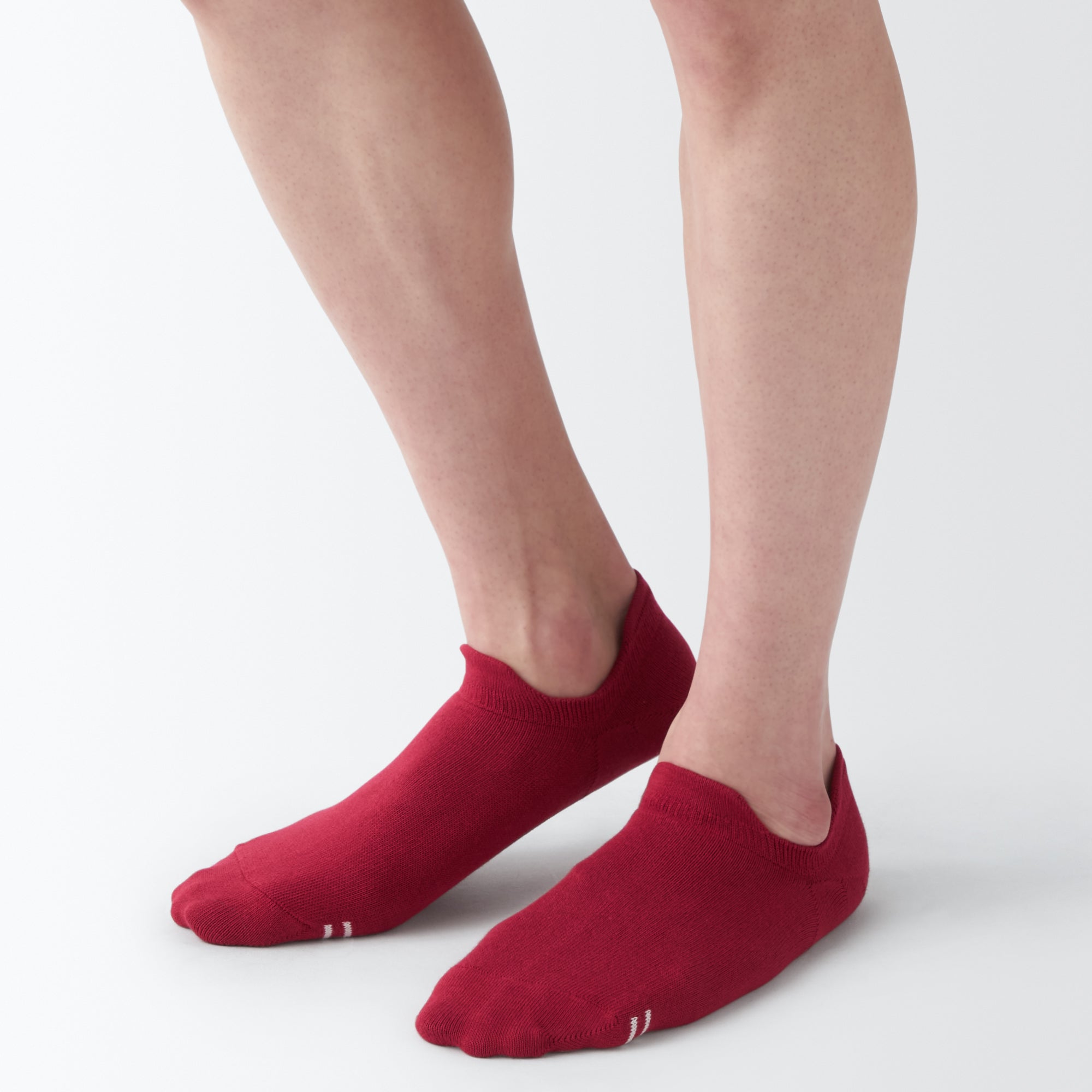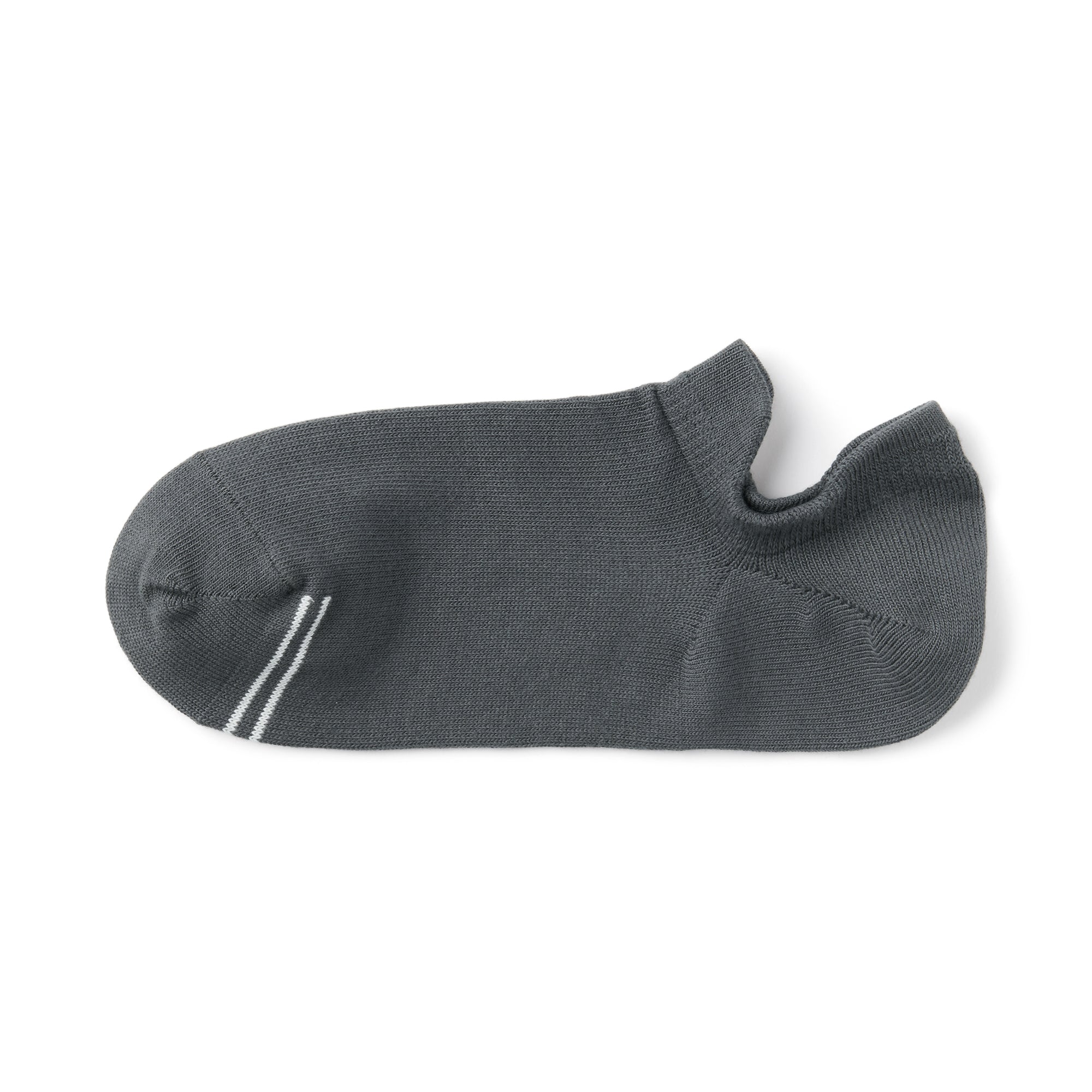 Low cut sneaker socks with tabs on the front and back. As the heel is at a right angle. the socks are knitted at a right angle to wrap comfortably around the heel and prevent the fabric from sagging and slipping off.