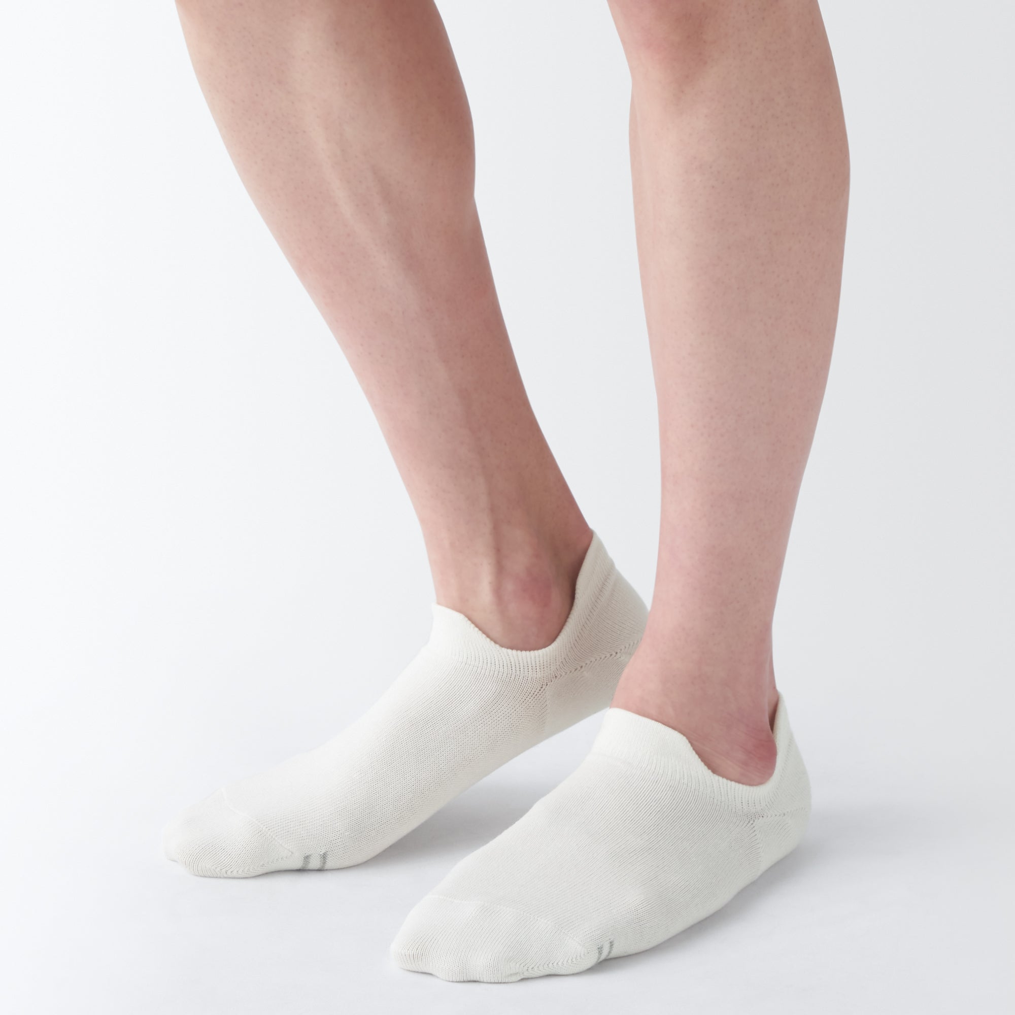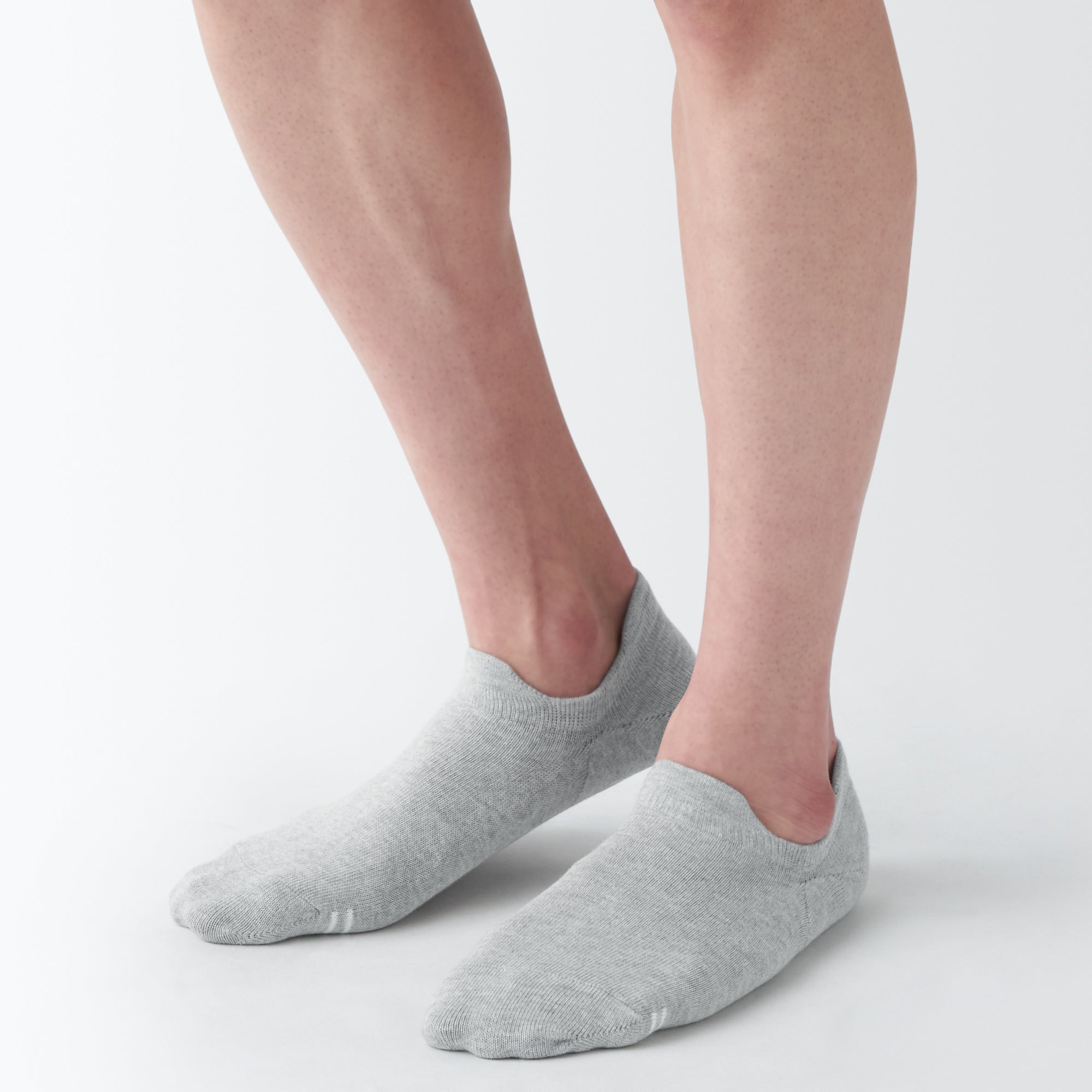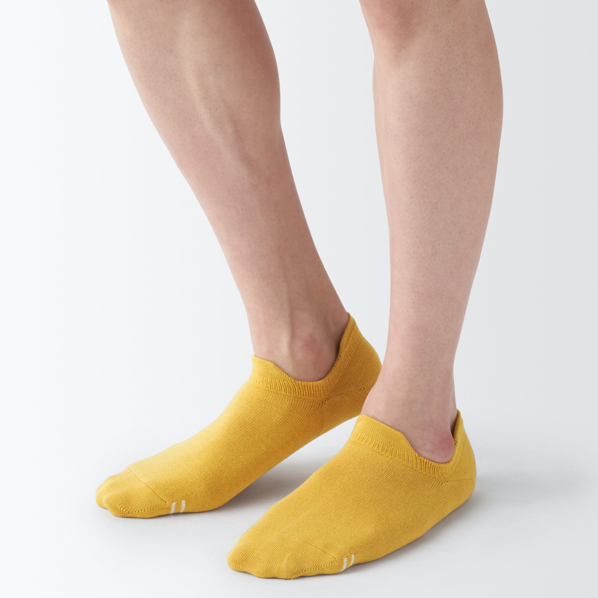 Low cut sneaker socks with tabs on the front and back. As the heel is at a right angle. the socks are knitted at a right angle to wrap comfortably around the heel and prevent the fabric from sagging and slipping off.
