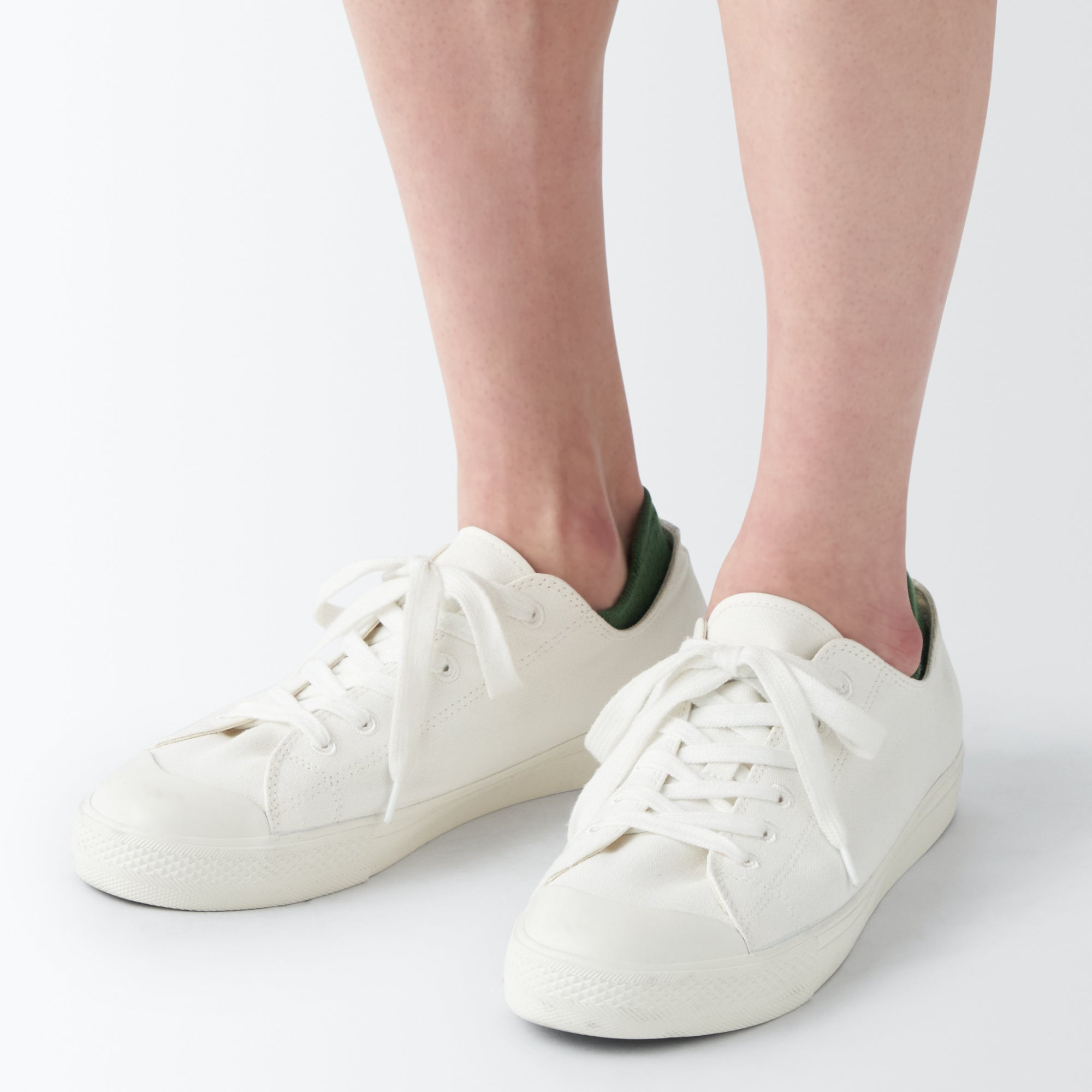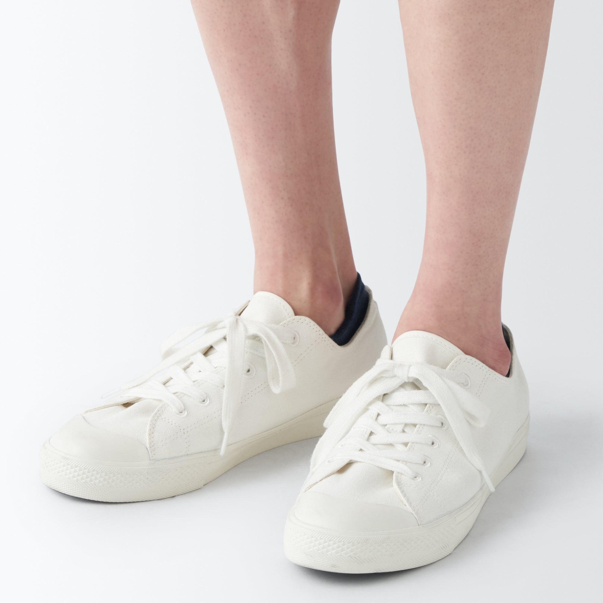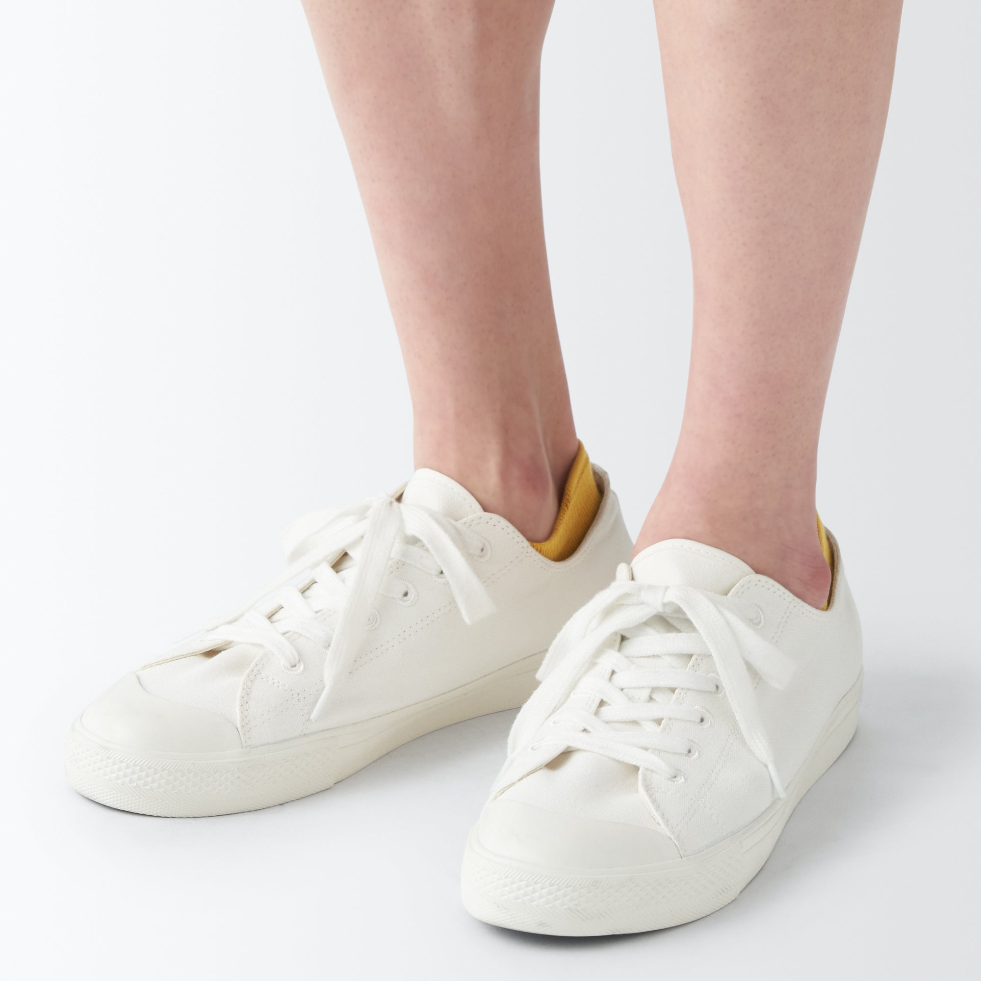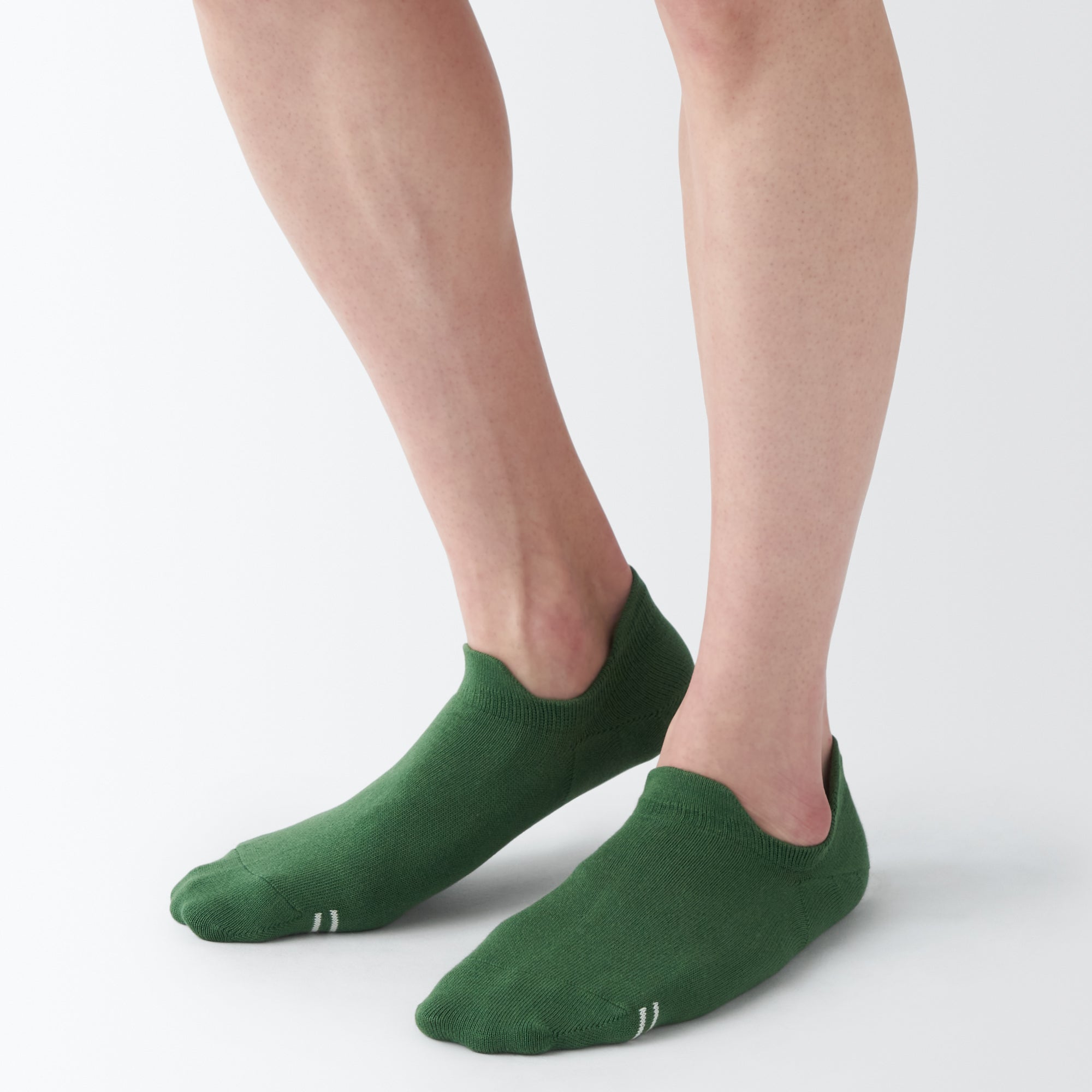 Low cut sneaker socks with tabs on the front and back. As the heel is at a right angle. the socks are knitted at a right angle to wrap comfortably around the heel and prevent the fabric from sagging and slipping off.