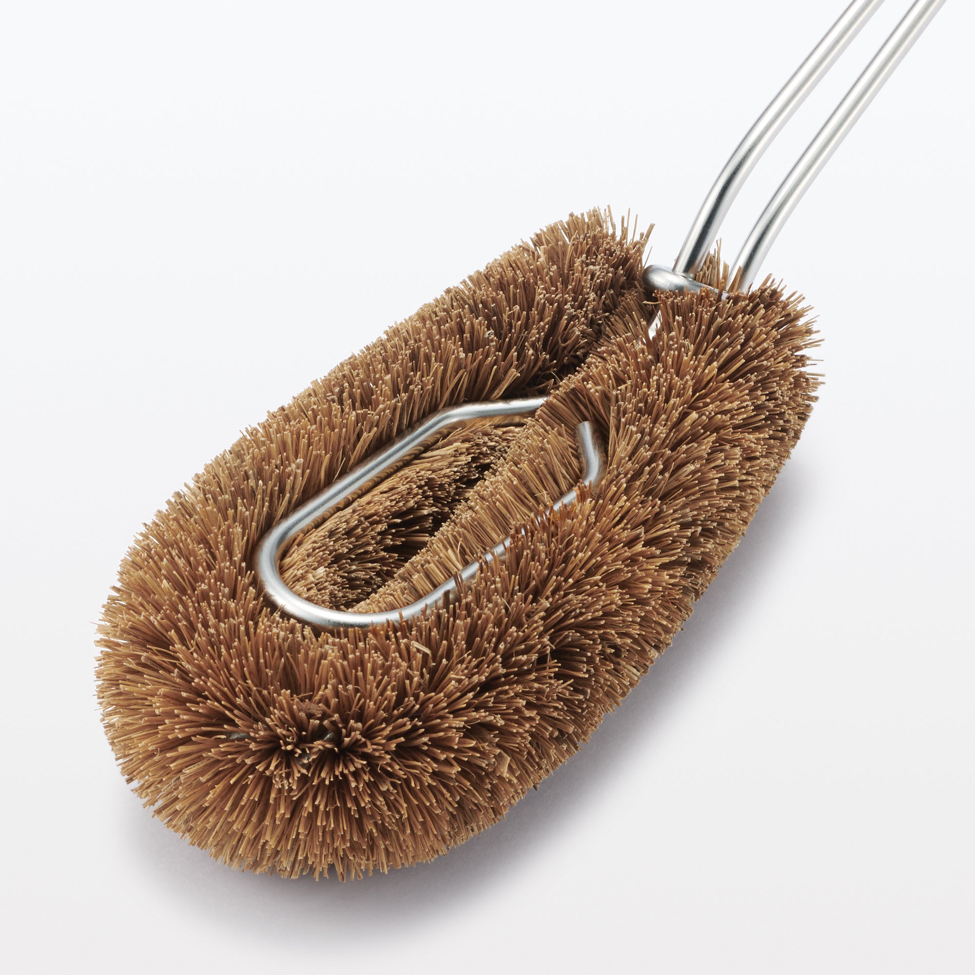 This scrubber has a handle that makes it easy to apply force when washing iron pans. The handle keeps your hands clean. making it convenient for cleaning things like sandals and drains. The scrubber can be replaced when it gets worn out. so it can be used repeatedly (replacements sold separately).