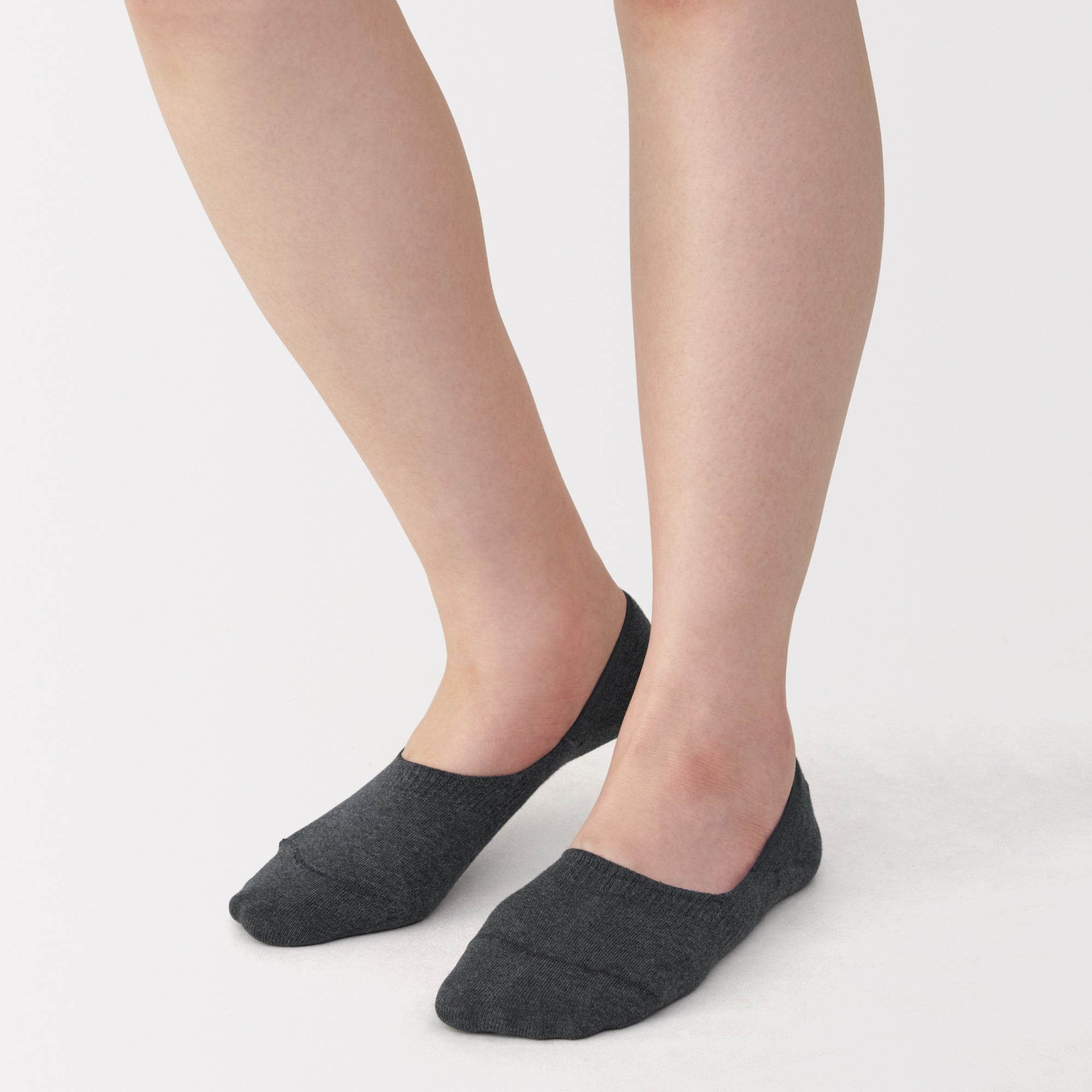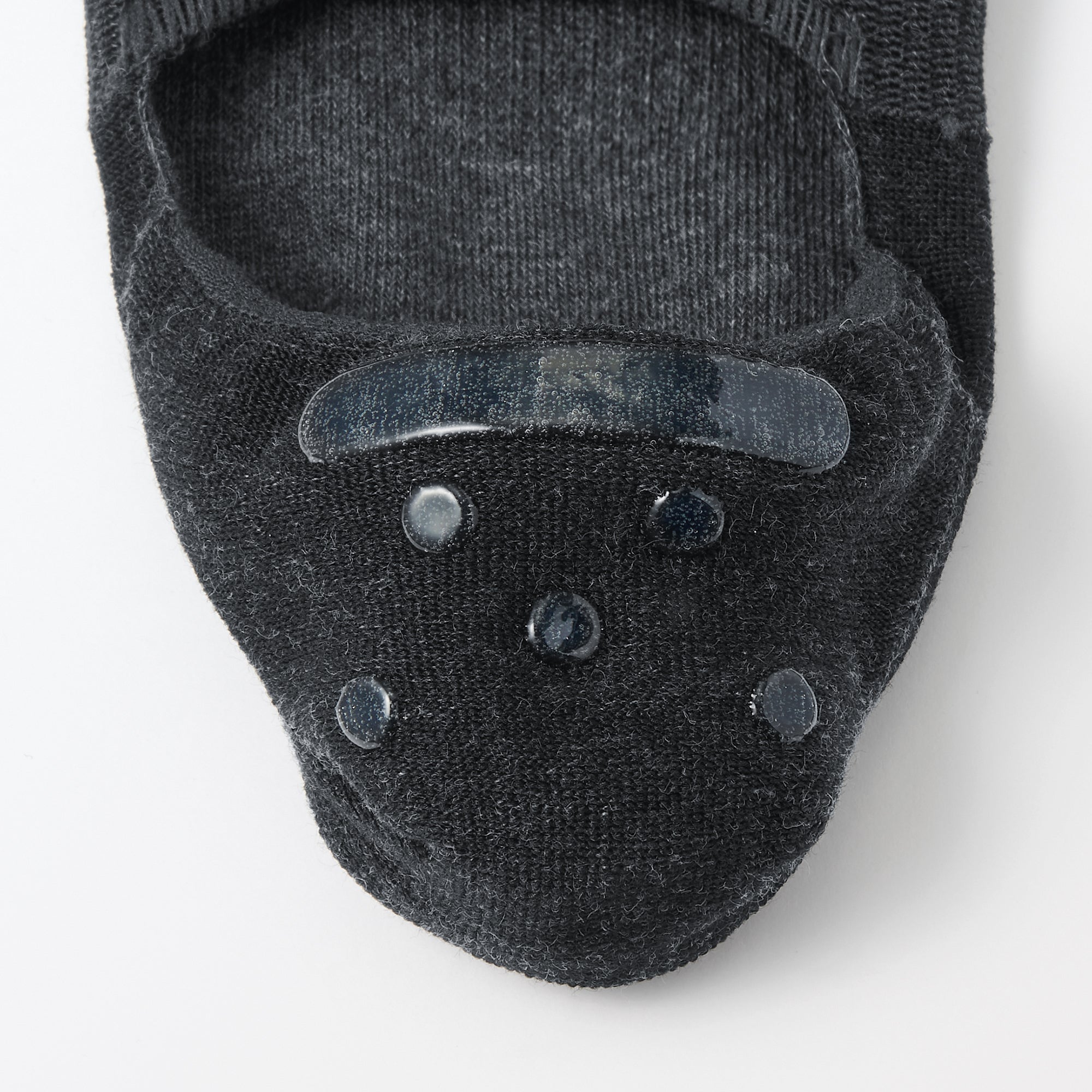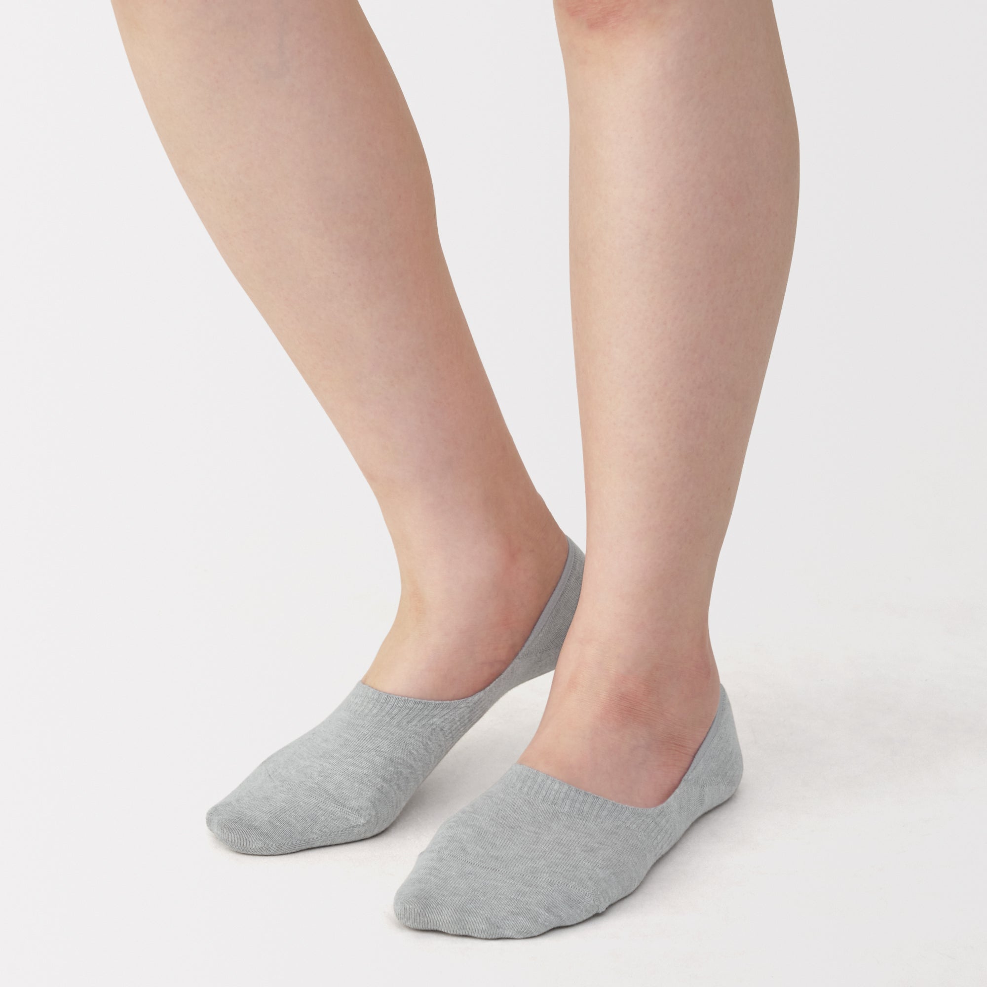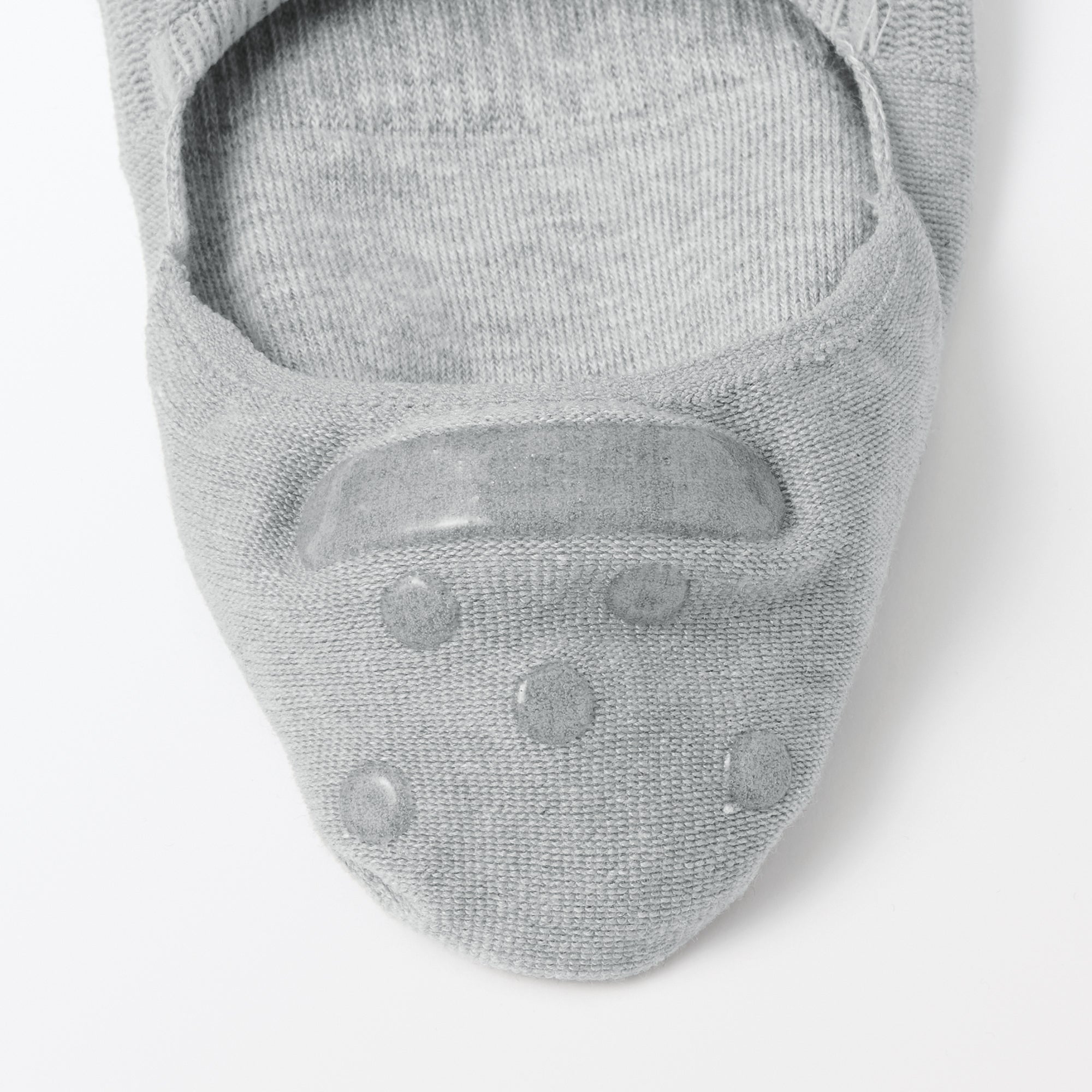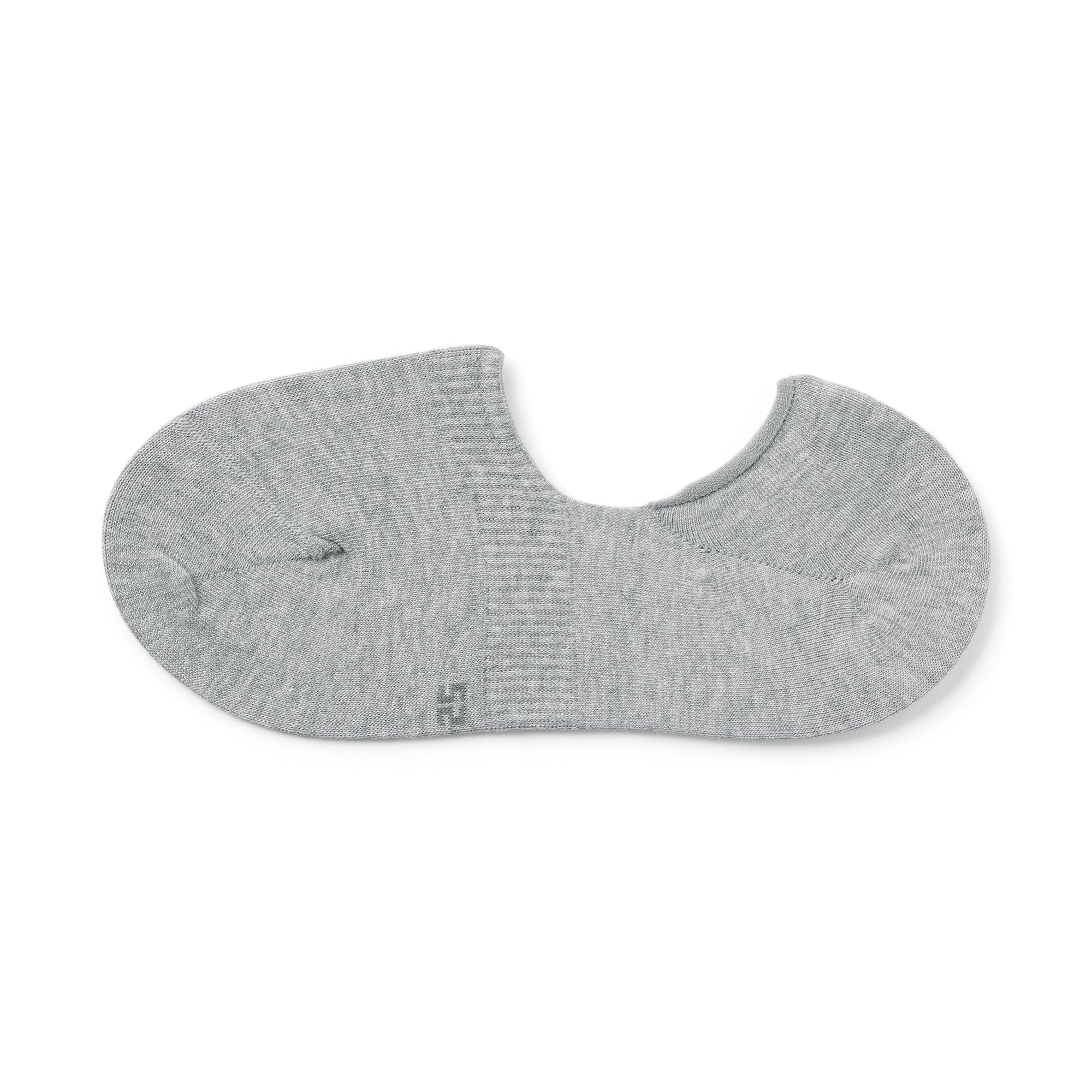 No-show sneaker socks with silicone heel grips that prevent them from sliding down. The seam line on the toes are stitched flat to prevent discomfort. and the reinforced threading at the toes and heel has a sweat deodorizing effect.