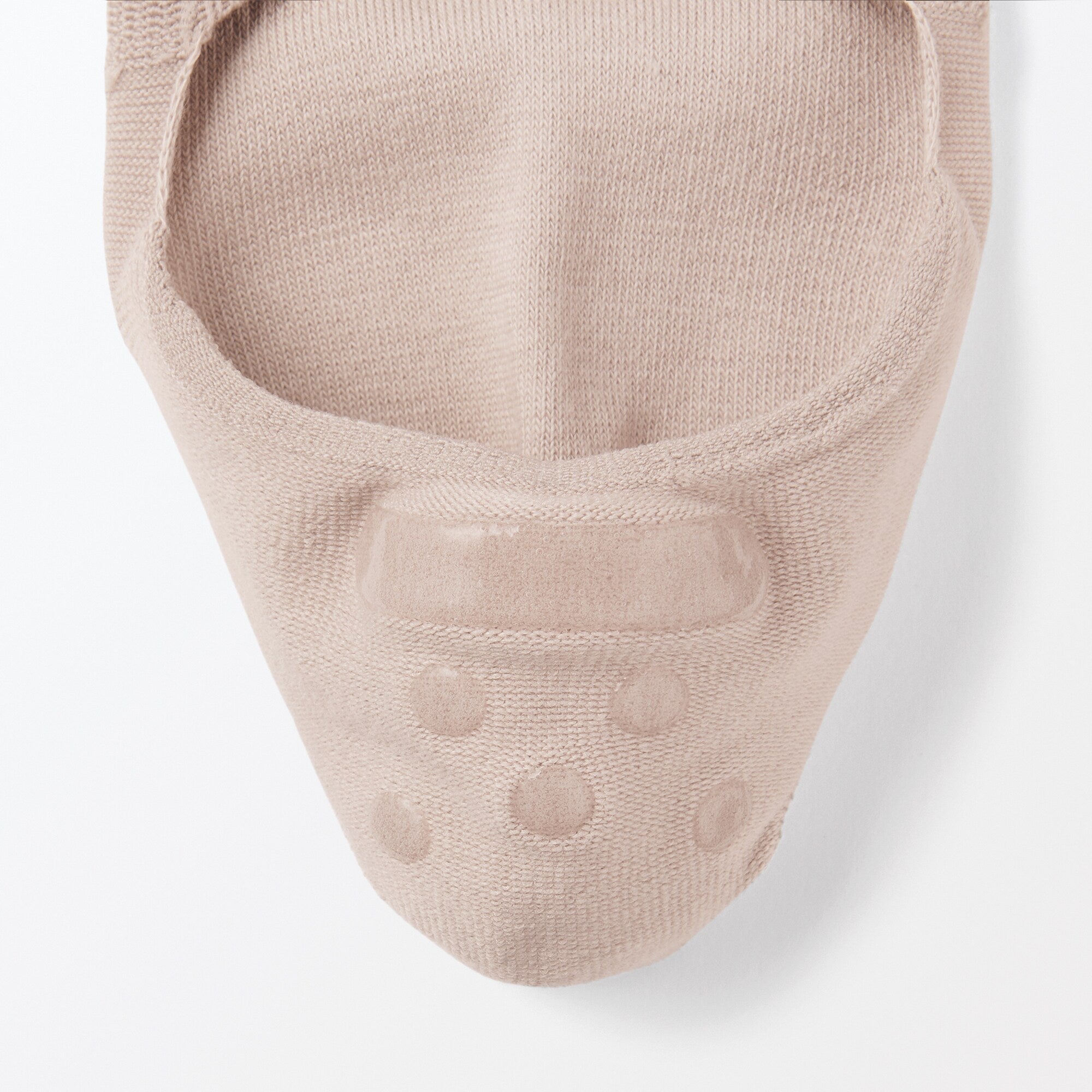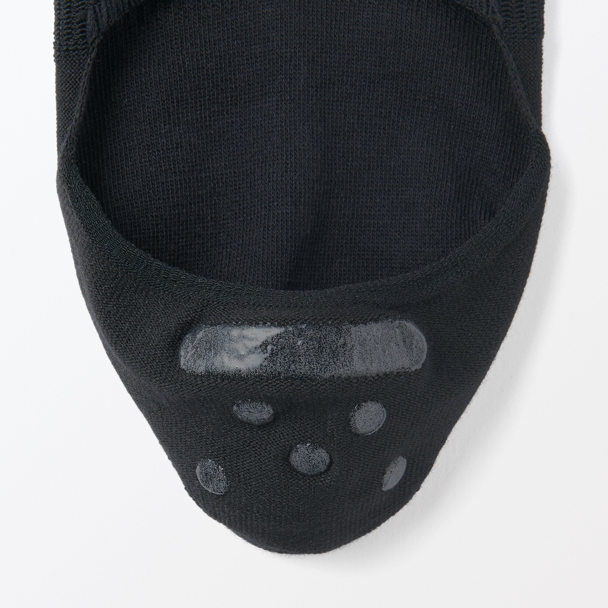 Sneaker socks with heel grips that prevent sliding off from heels. The seam line on the toes are stitched flat to prevent discomfort. and the reinforced threading at the toes and heel has a sweat deodorizing effect.