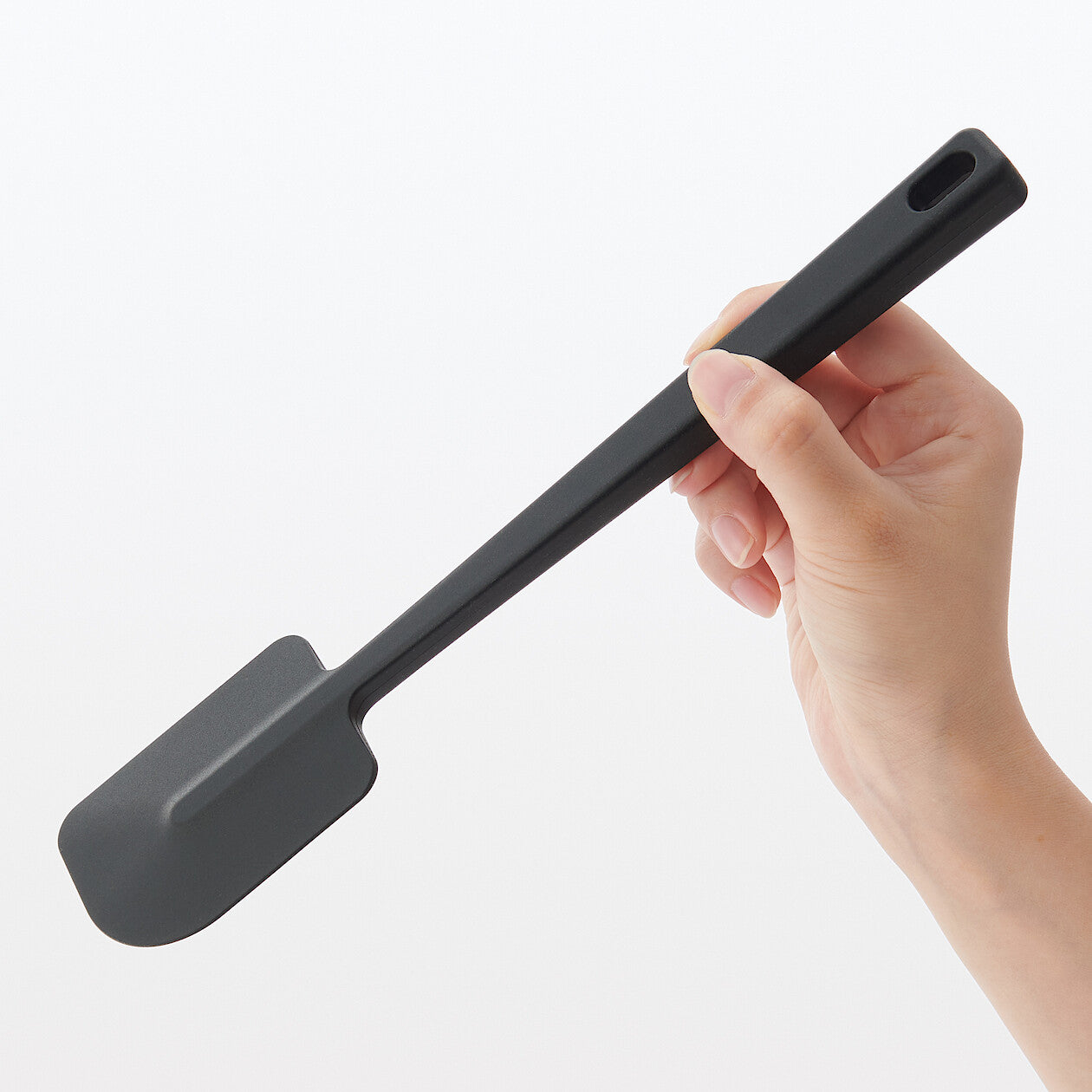 It is useful for various cooking applications and has a high heat resistance and is soft enough not to damage your pots and pans. A stainless steel core is 1cm from the edge to give a great balance and ease of use. Perfect for mixing and folding precious ingredients without waste and easy cleanup.