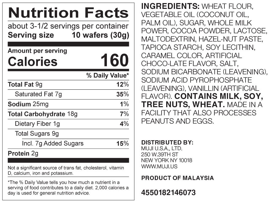 These yummy. bite-sized wafers are filled with creamy chocolate. making for a delightful treat.