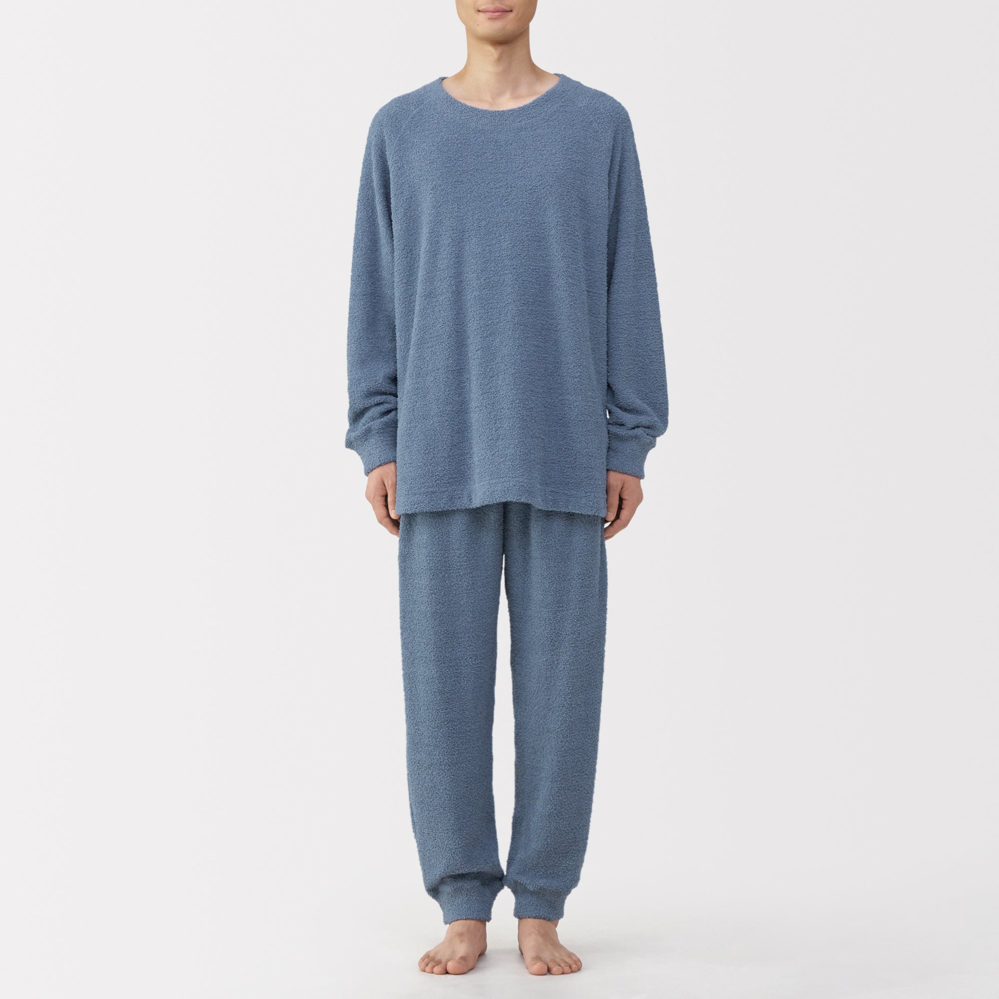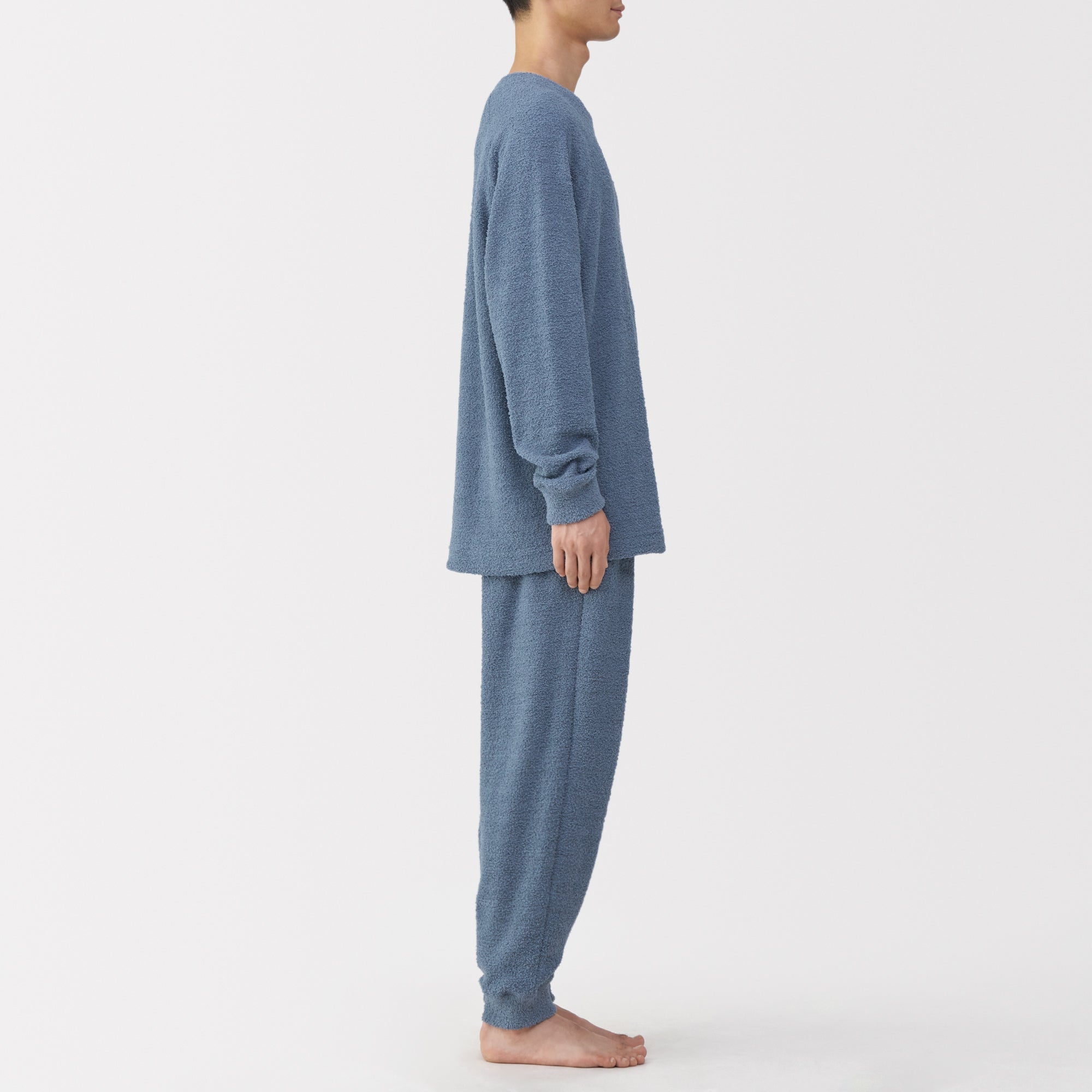 This men’s long-sleeved loungewear set is made with a blend of recycled fibers for a soft. sleek feeling against the skin. Its fluffy fleece texture will keep you warm and cozy while you lounge comfortably at home.