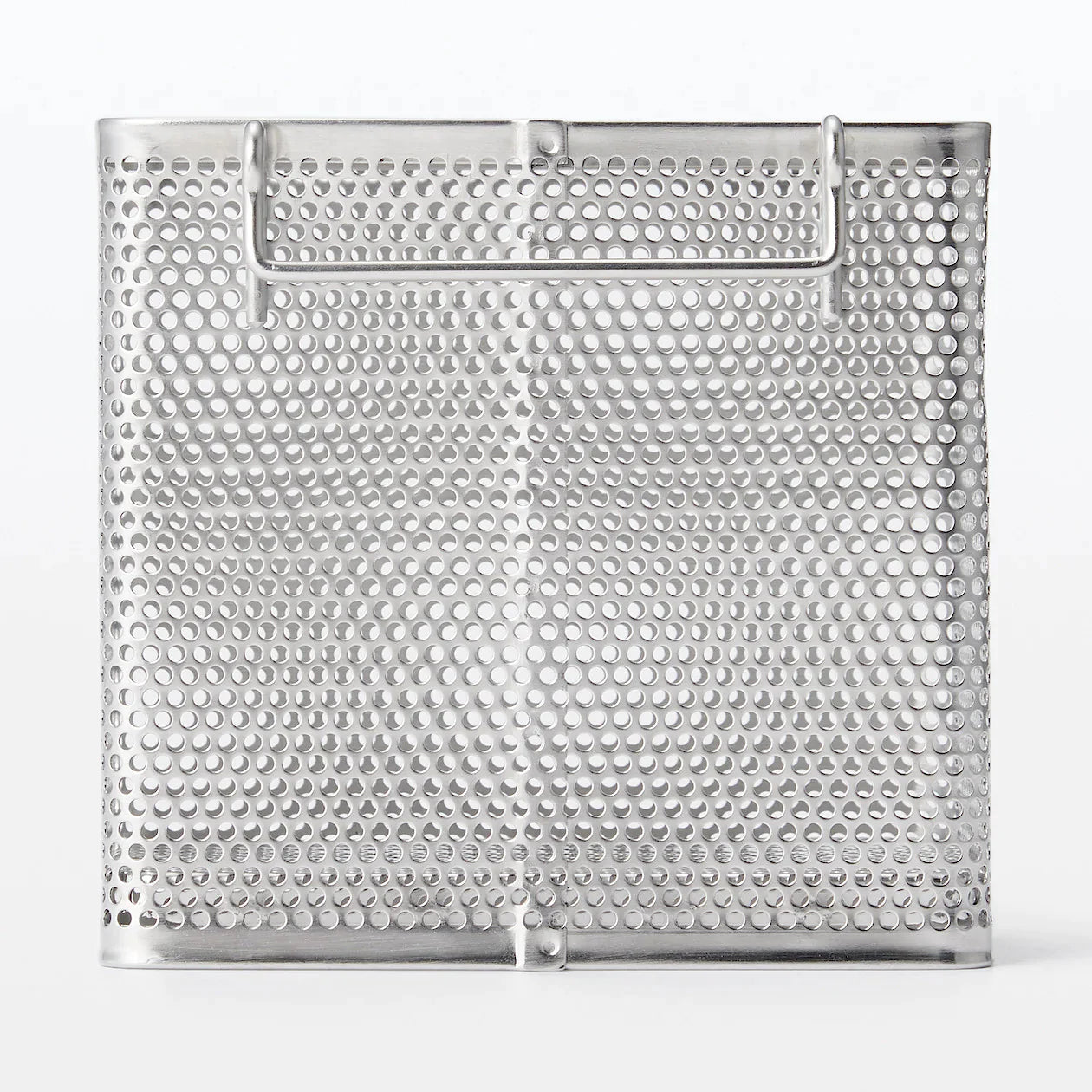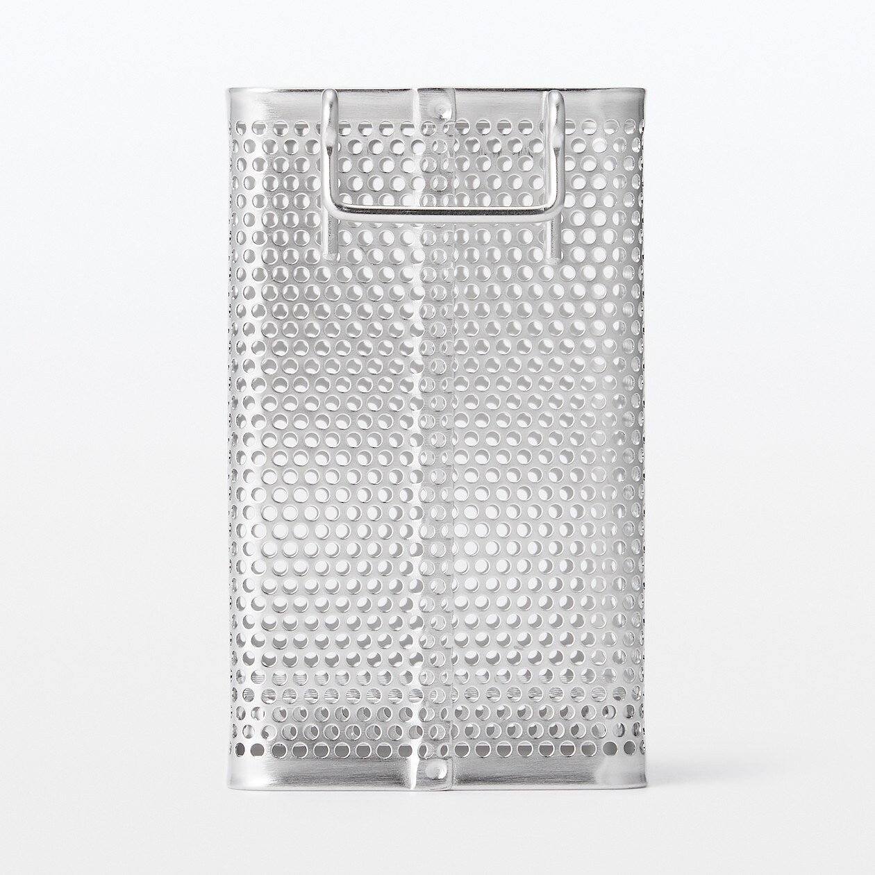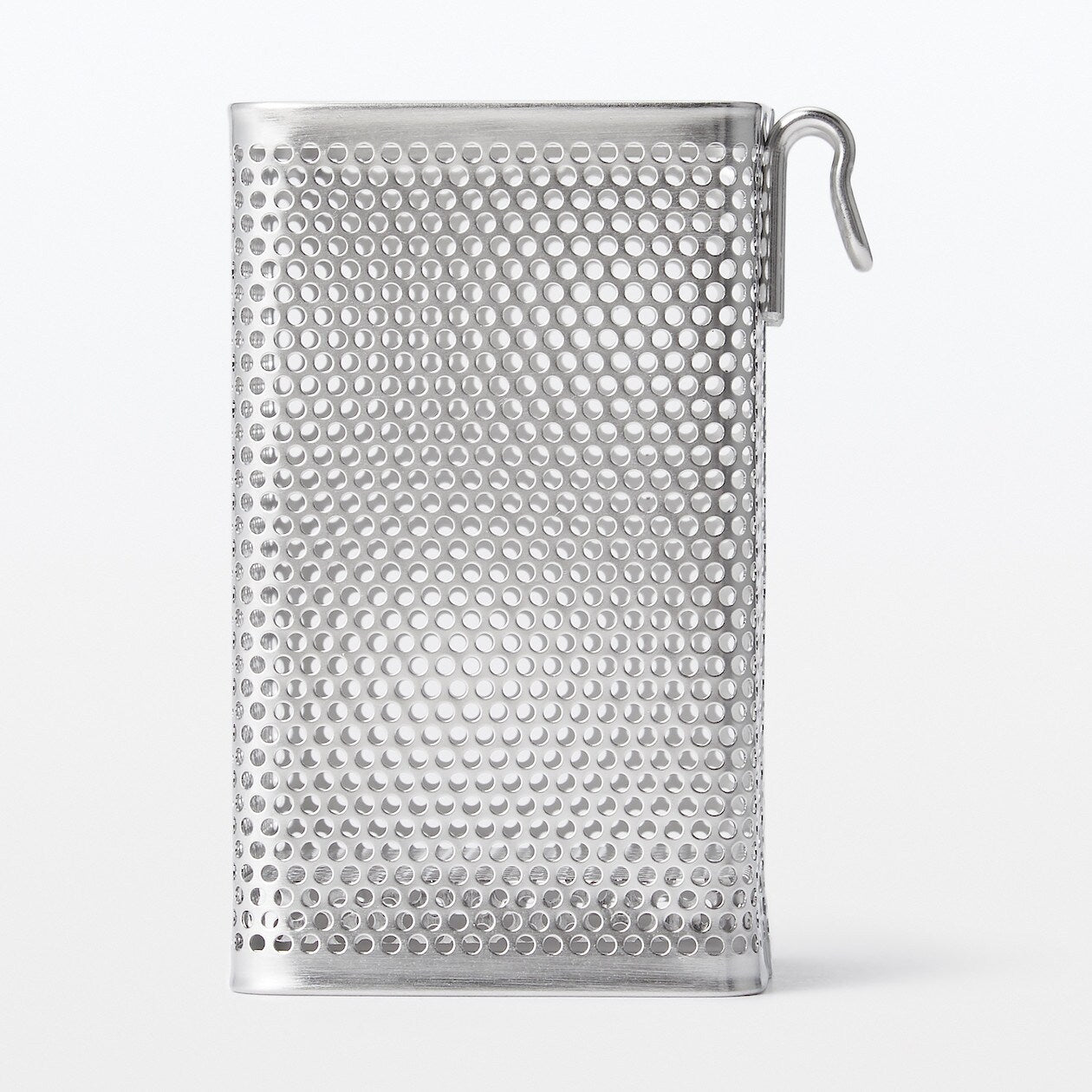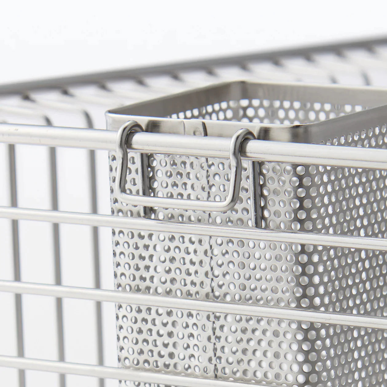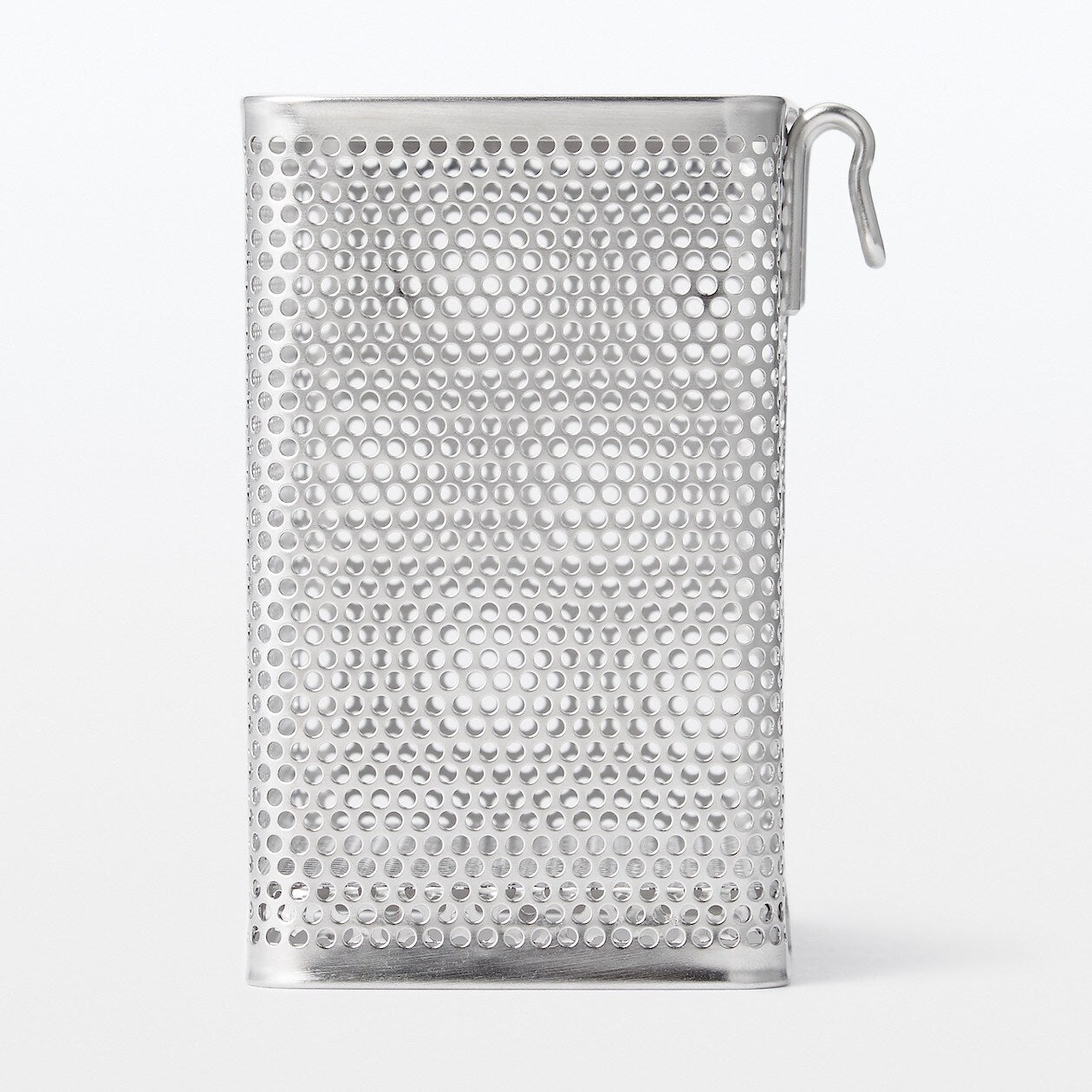 This stainless steel cutlery stand is durable. rust resistant. and easy to clean. The hook on the back gives you the option to hang the stand on a rack. Comes in two sizes.