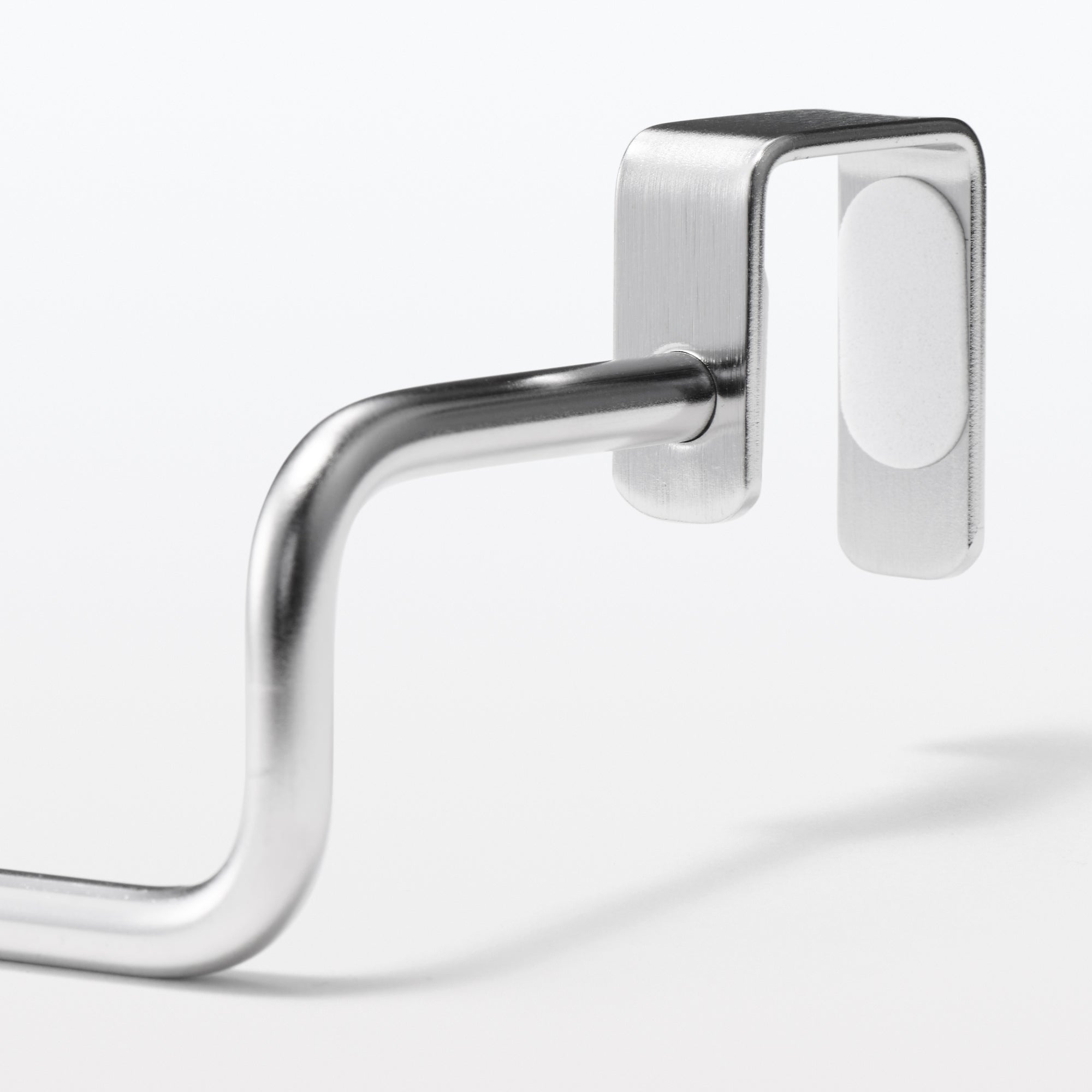 This convenient stainless steel towel rack is designed to easily hang on your lower cabinet doors in the kitchen or bathroom. so hand towels and dishcloths are always within reach.