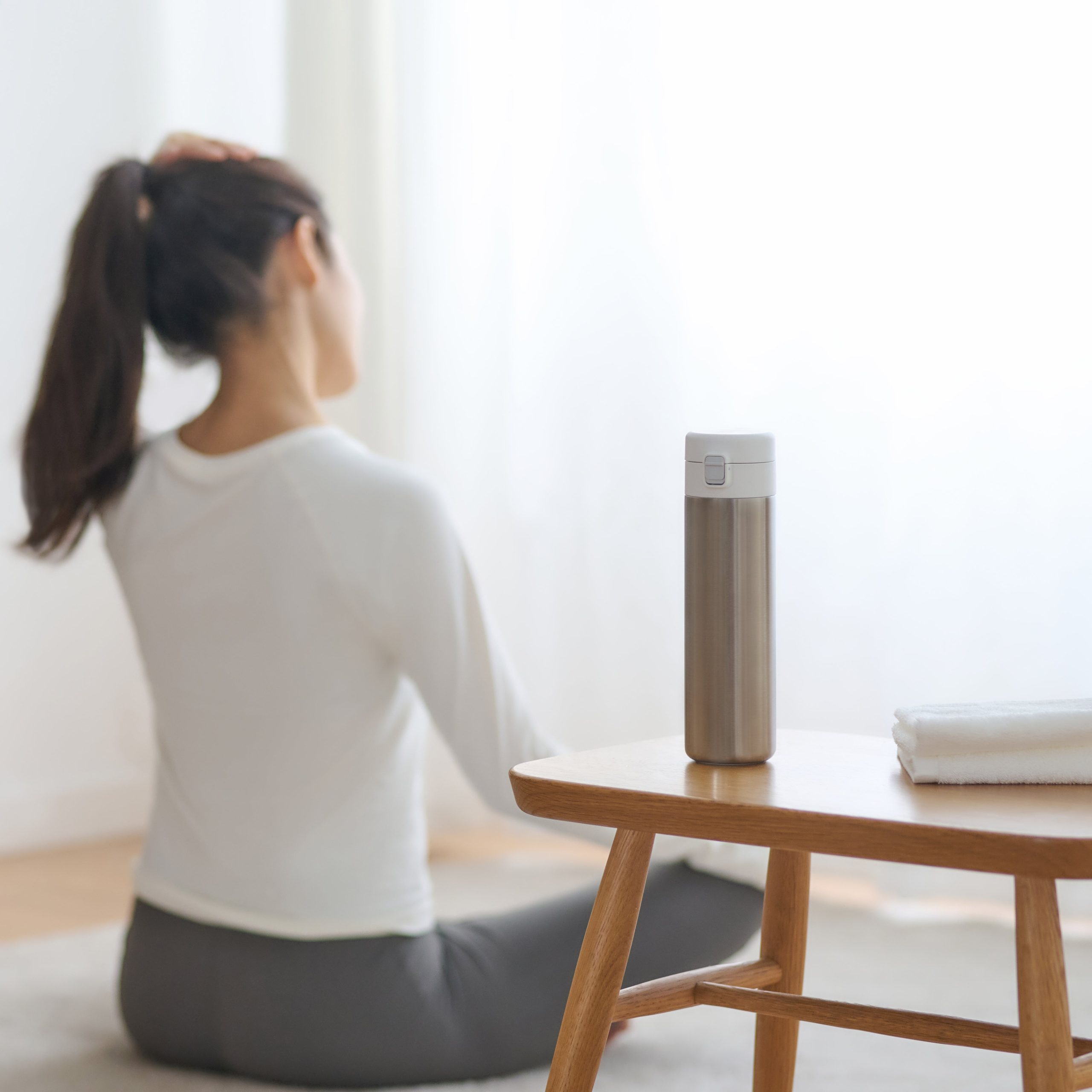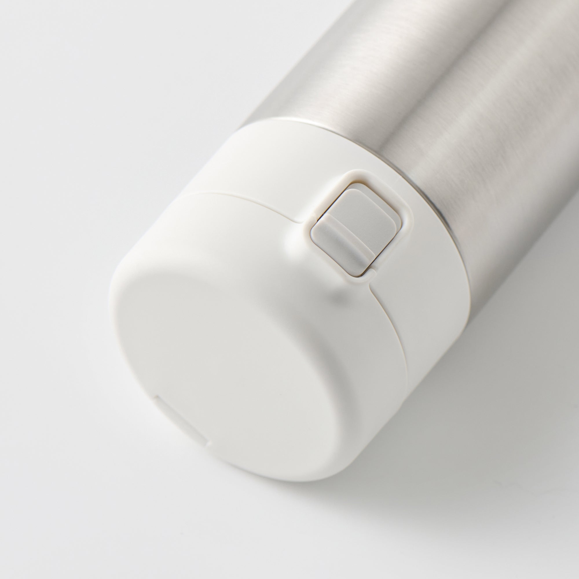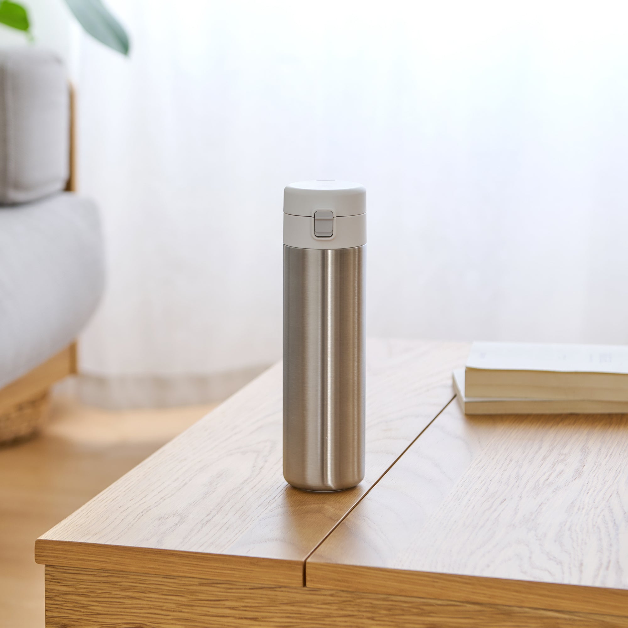 A compact water bottle made from stainless steel that can retain heat or stay cold for a period of time. It is designed in a way so it’s easy to carry around. and easily fits in the bottle compartment of most backpacks.?