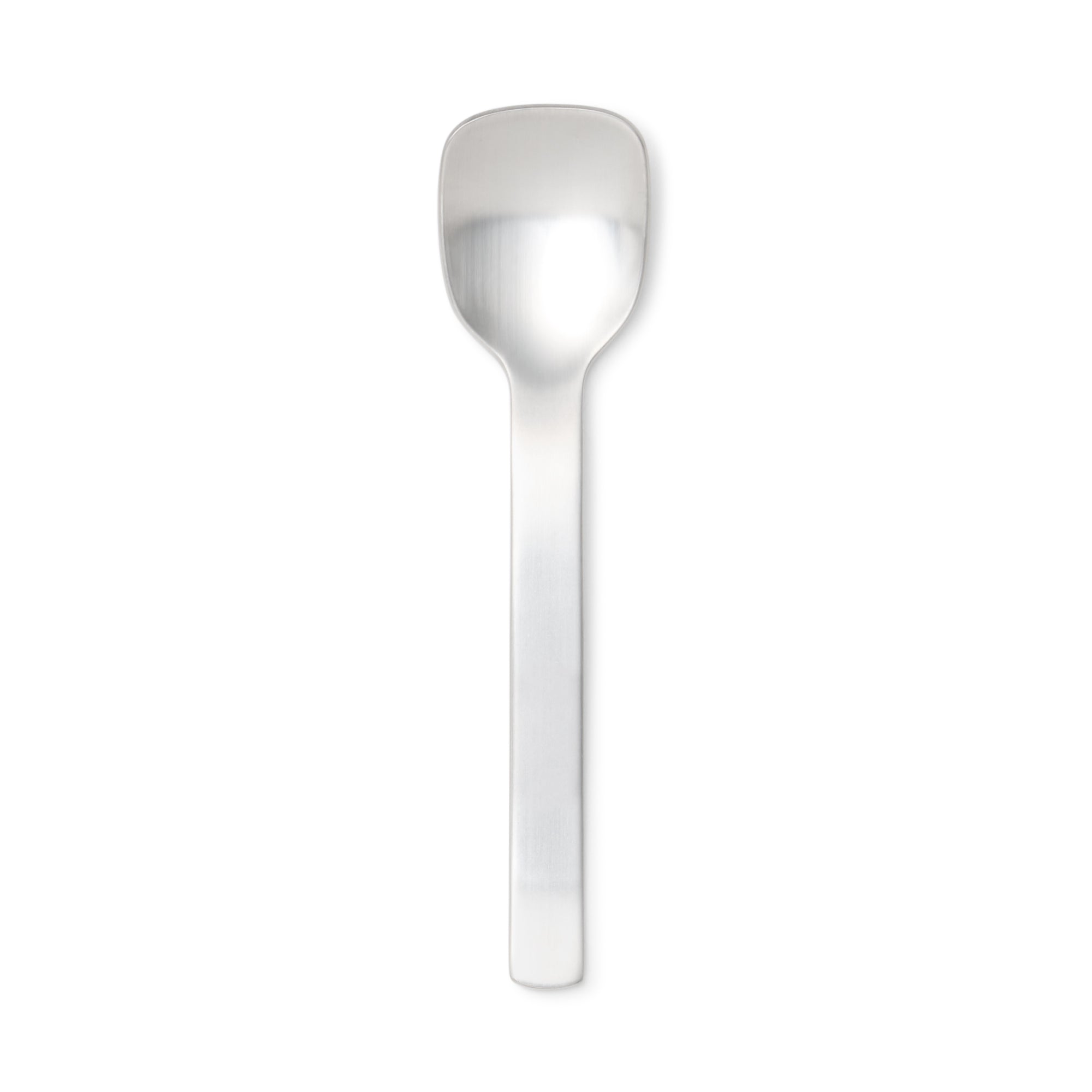 A spatula-shaped spoon convenient for eating ice cream and desserts.