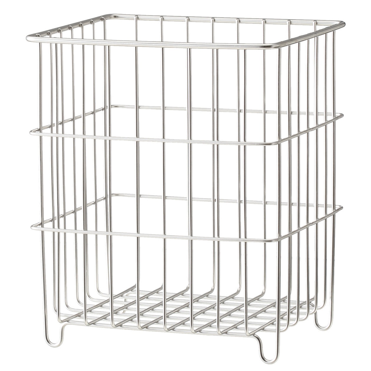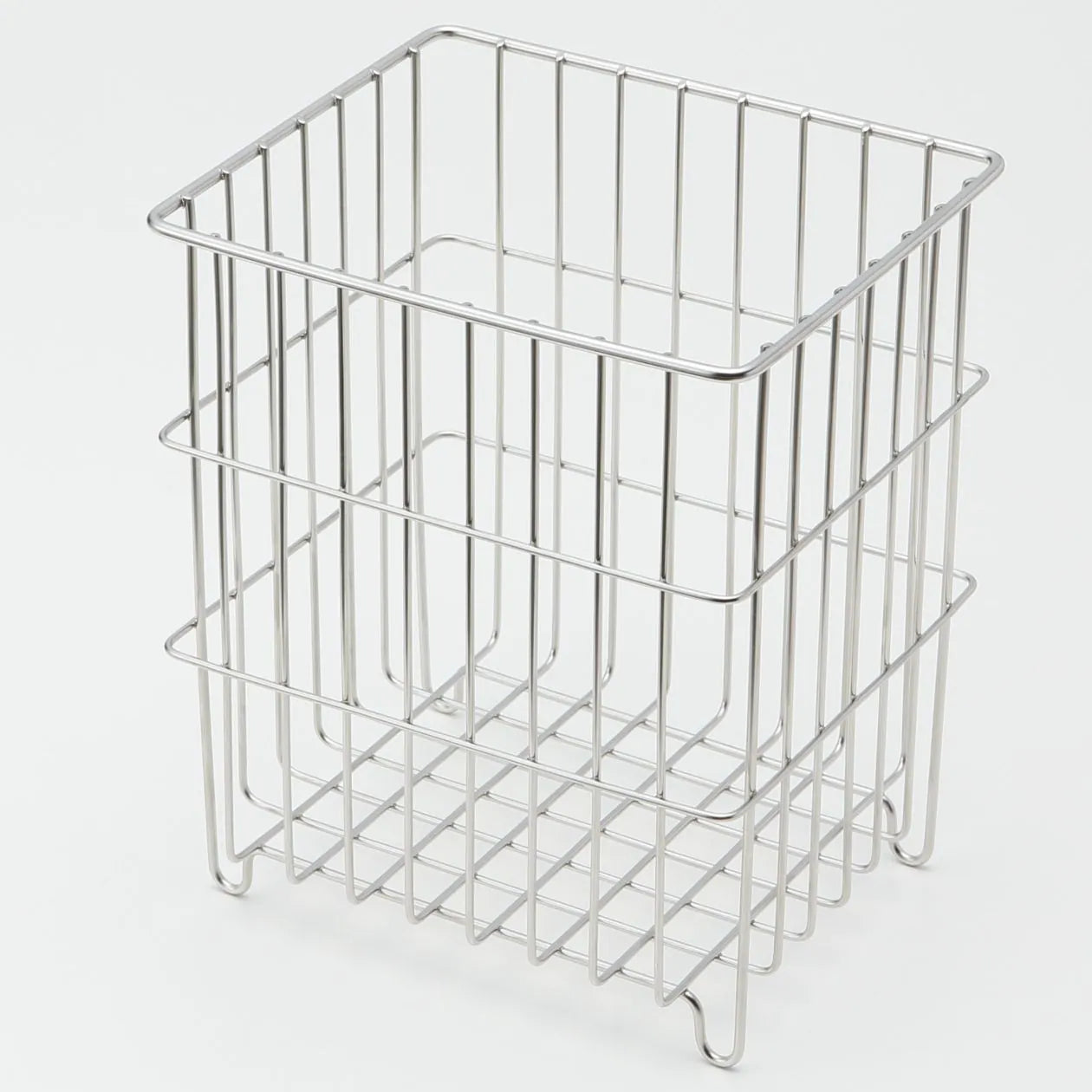 A wire rack for bathroom storage that drains well and does not rust easily. Neatly stores bottles or small items within a stainless steel frame design featuring thoughtful spacing so that residue can easily be rinsed off.