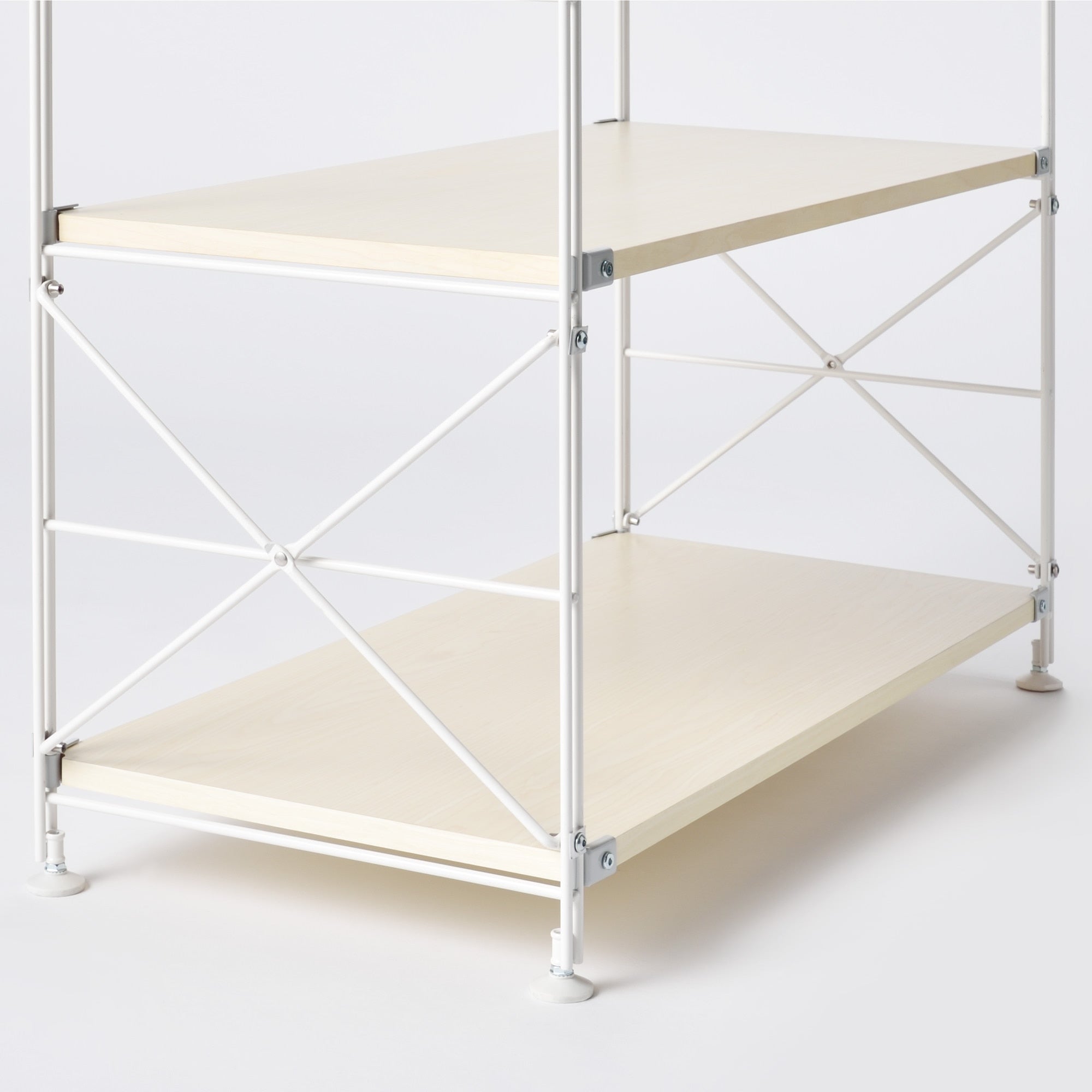 Optional side cross bars to support the frame for our Stainless Steel Unit Shelving. You can put together your own personal MUJI shelf by selecting the height and connecting the individual parts to each other.
