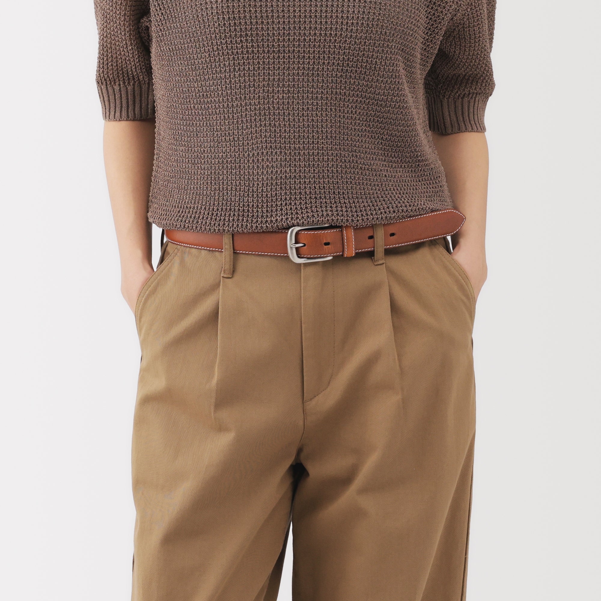 An adjustable unisex belt made from genuine leather tanned with natural vegetable tannins. Medium-width stitching.
