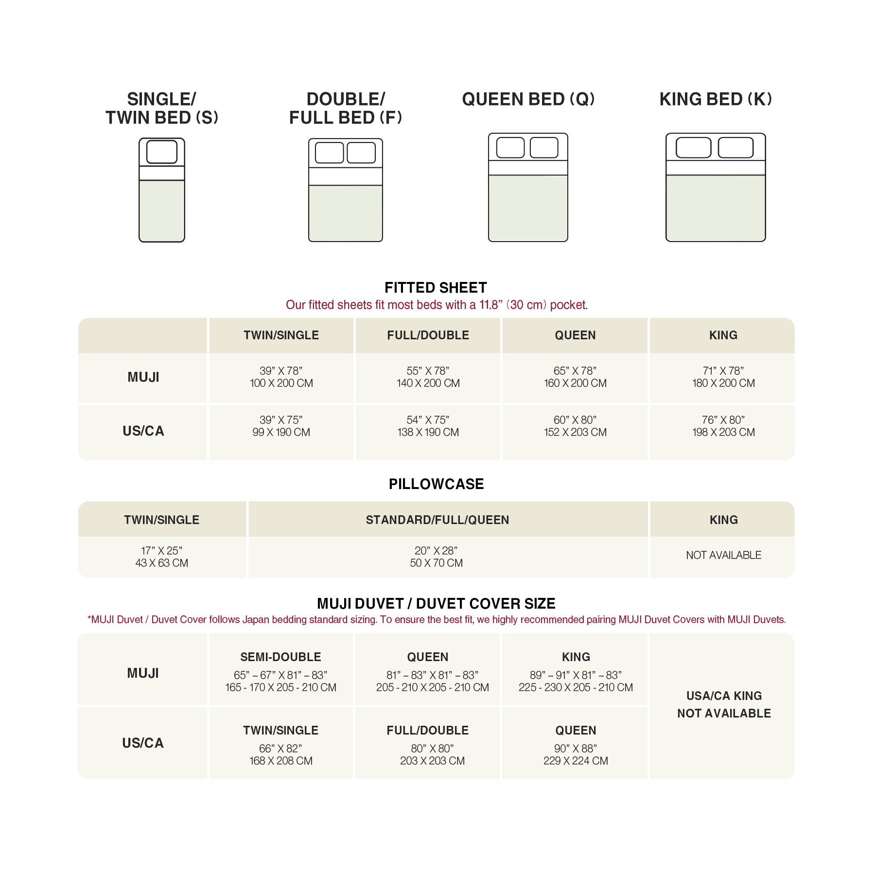 | Size | King (W90.6 x L82.7), Queen (W80.7 x L82.7), Semi Double (W65.0 x L82.7) |