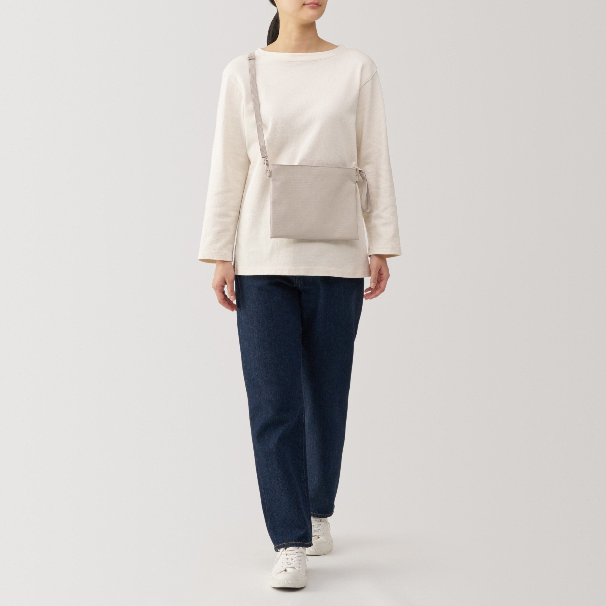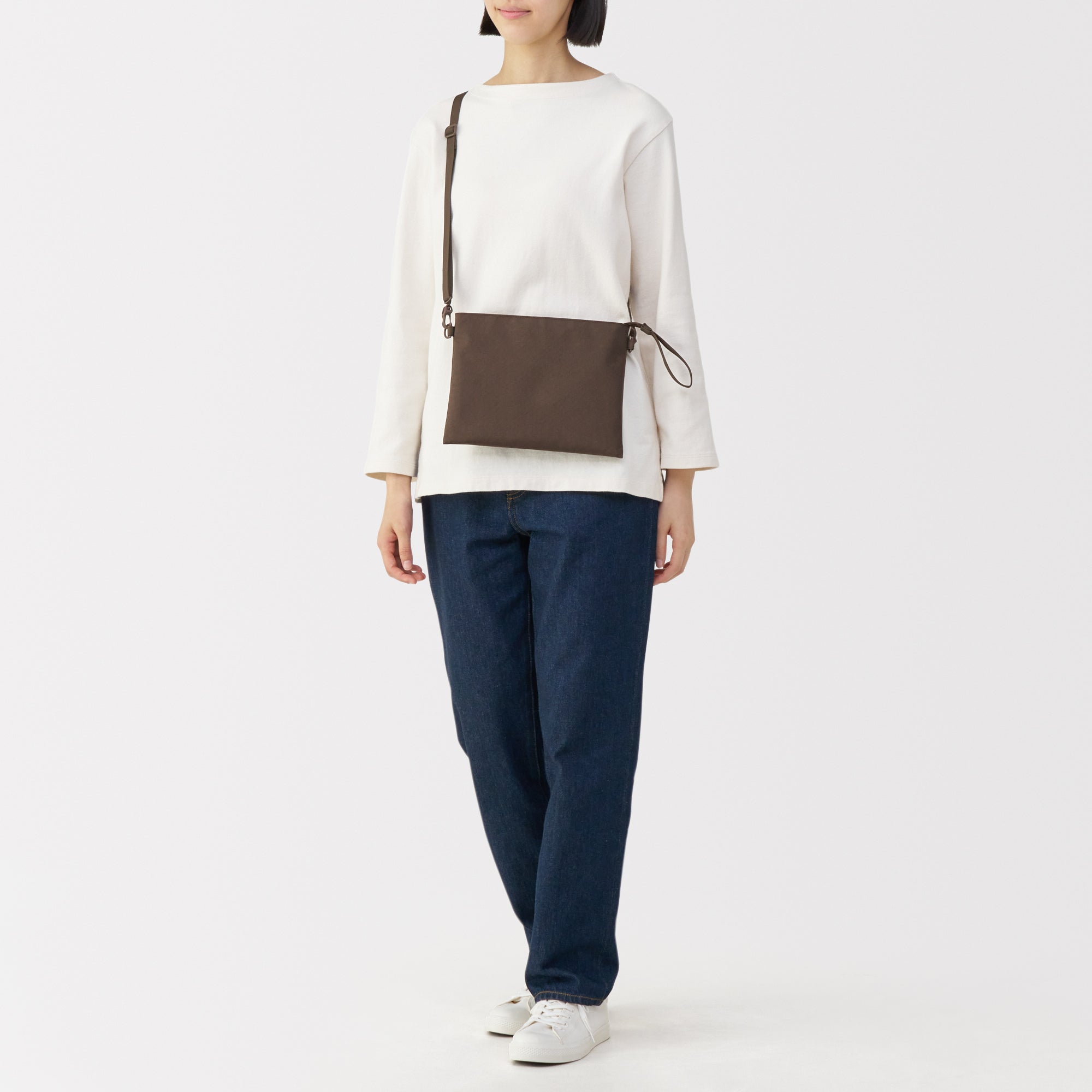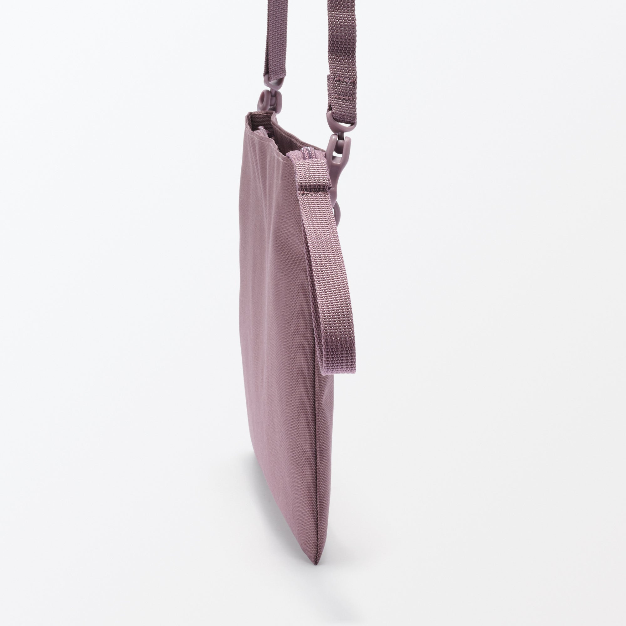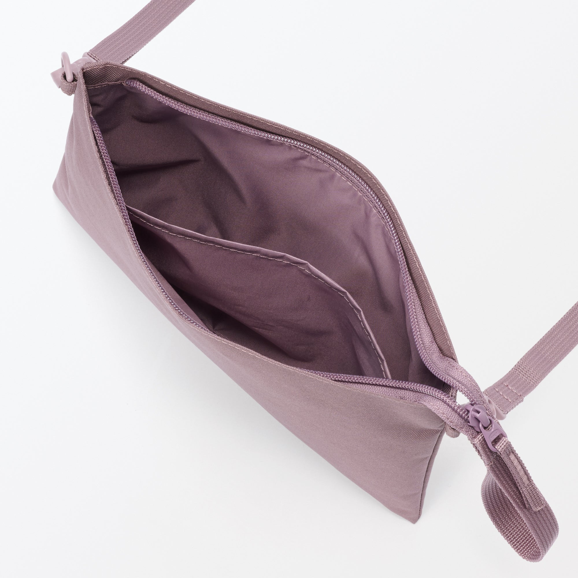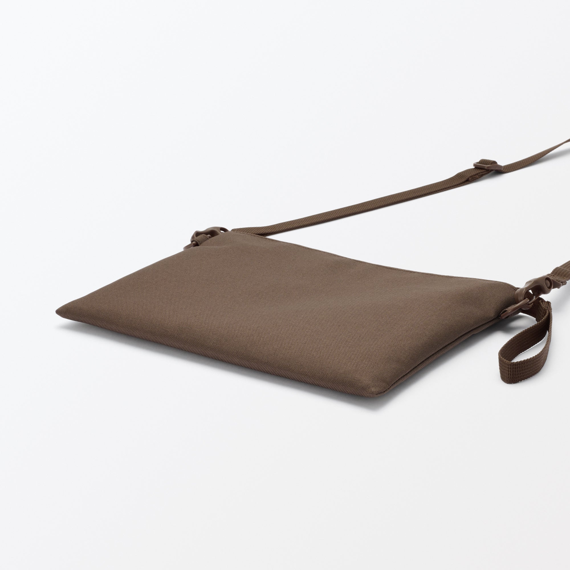 This compact. shoulder-slung pouch is the perfect size to hold all of your daily necessities for quick outings. Made from recycled polyester. it has a water repellent coating to protect your belongings. There is an interior divider to help keep its contents organized and easy to find.