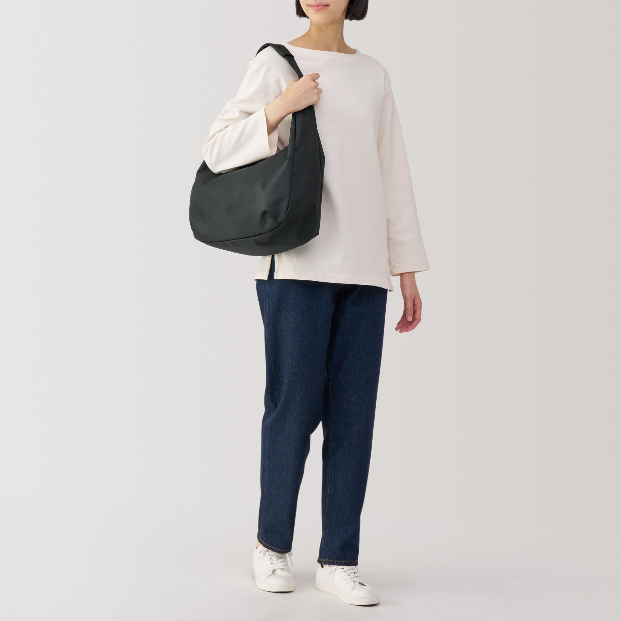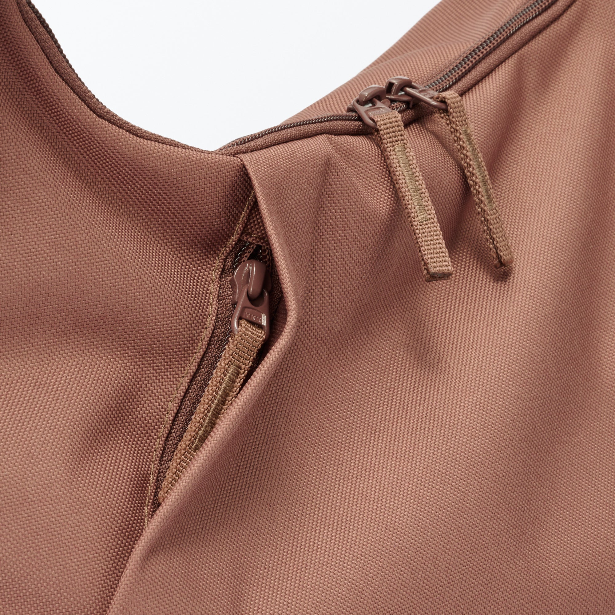 This bag features an adjustable shoulder strap. allowing you to easily switch between wearing it as a handbag or crossbody by simply adjusting the strap length. Its convenient design features two inner pockets. a zippered outer pocket. and a water repellent finish that makes it versatile for everyday use.