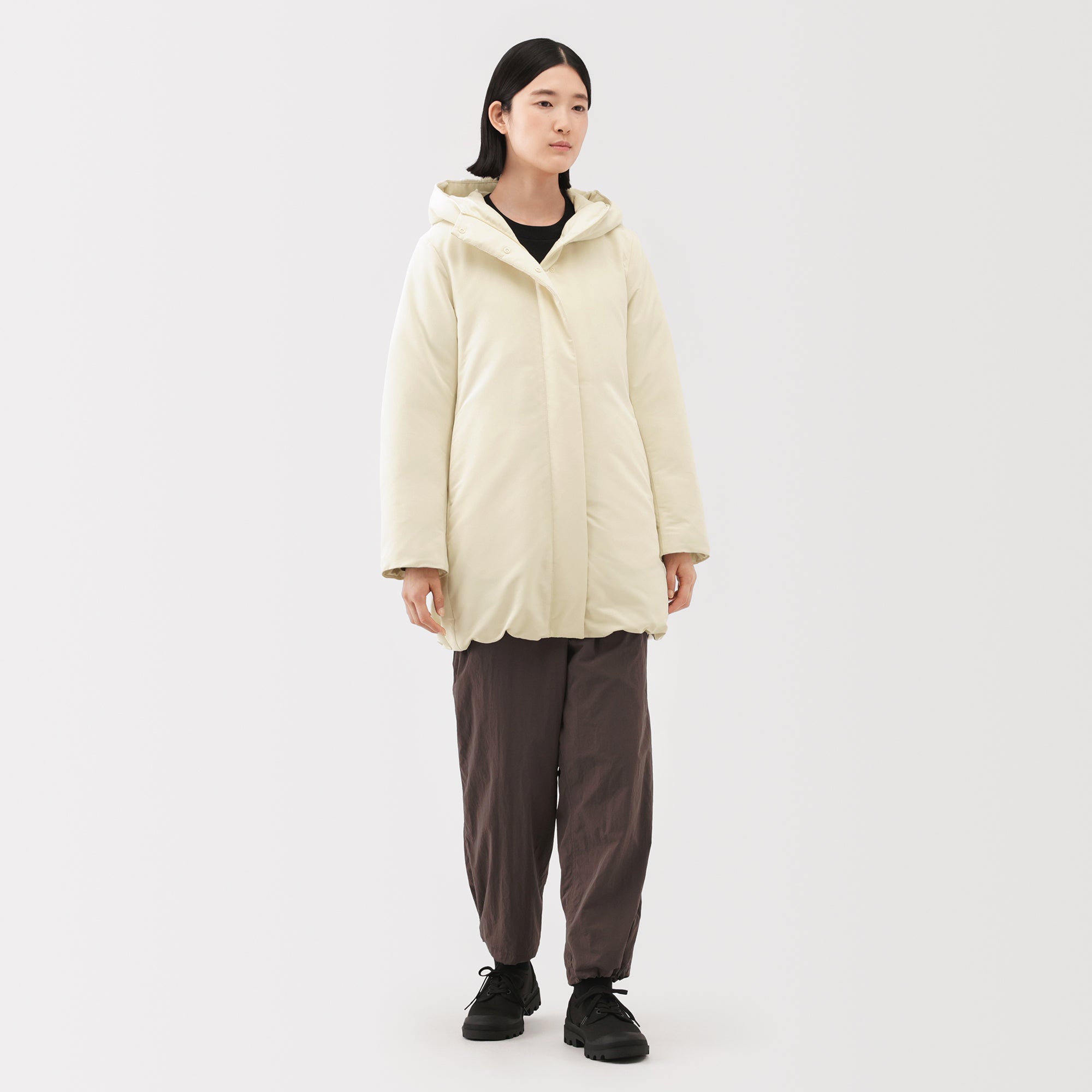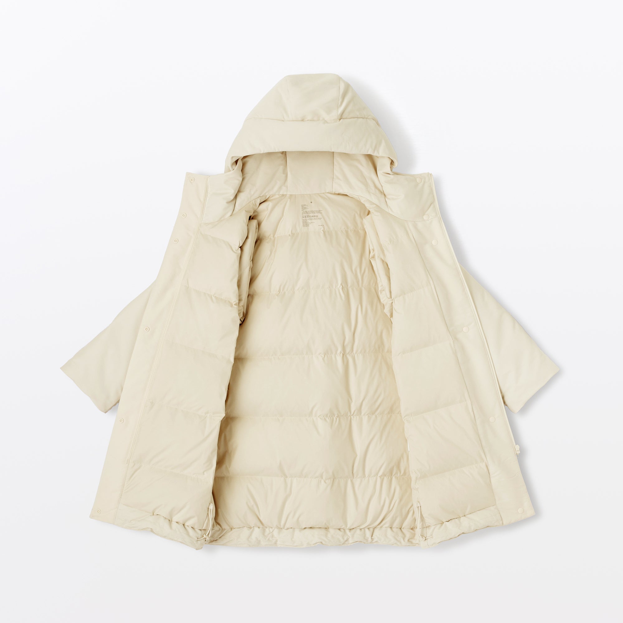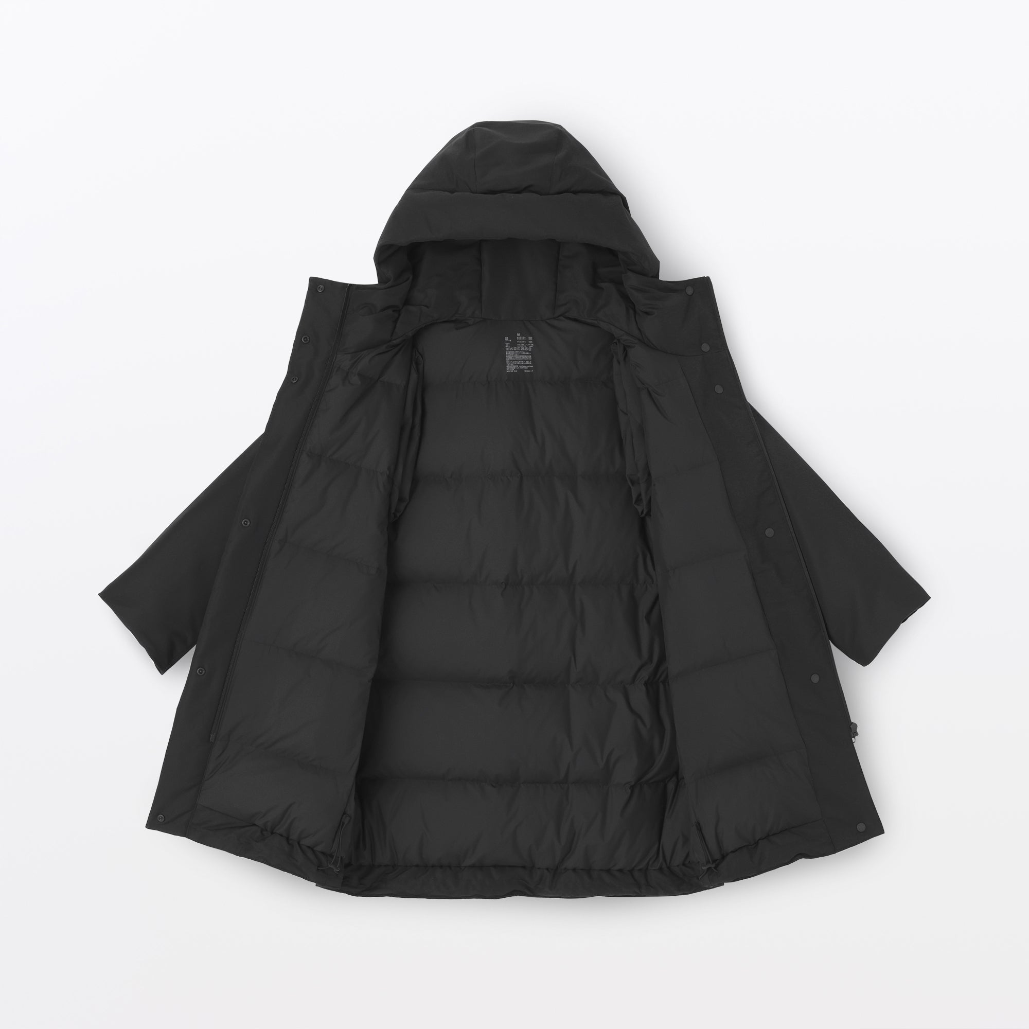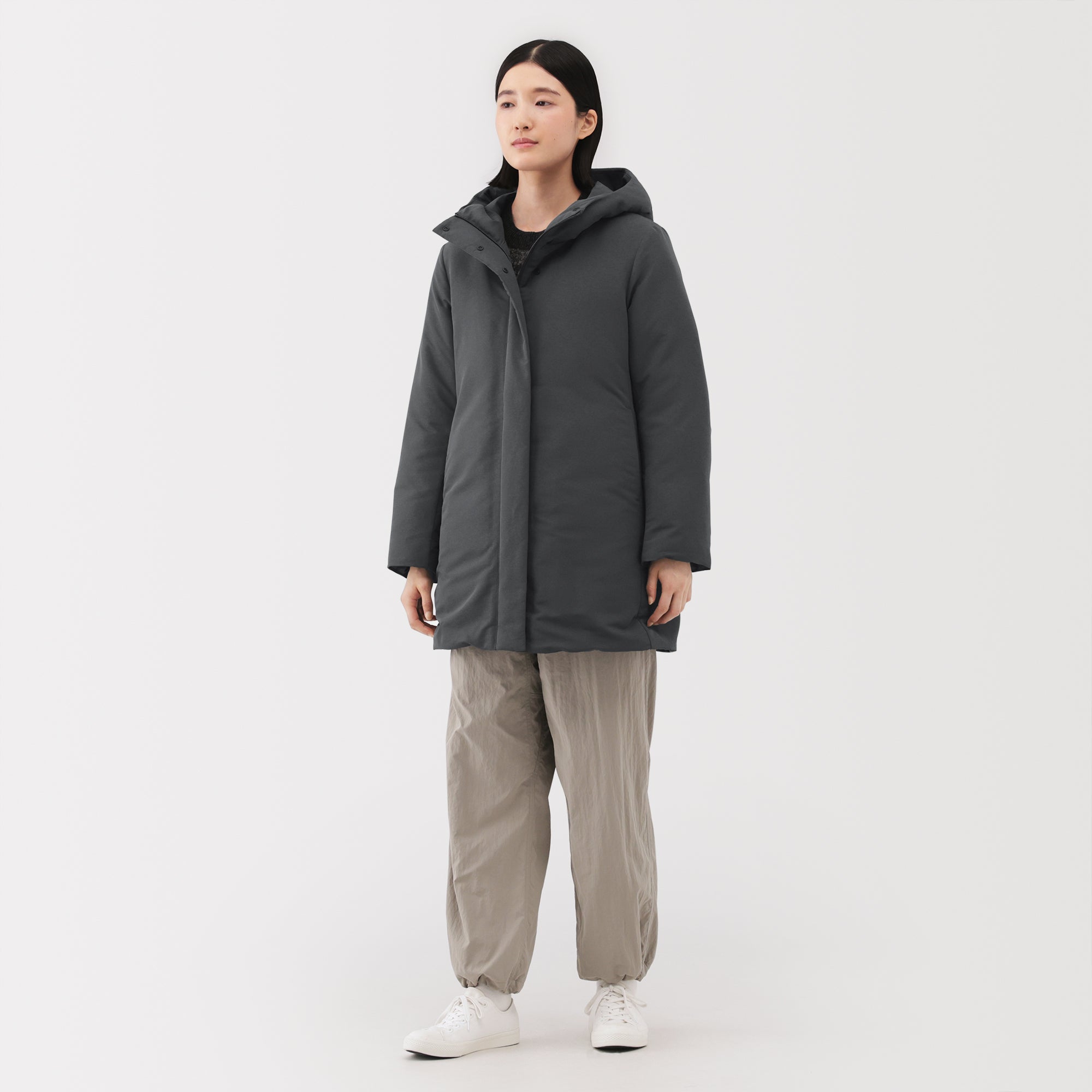 A fluffy women’s water-repellent down coat with fill power 750 down. Its mid-length design is easy to move in while also keeping you warm and cozy in the winter. This coat features a non-quilted outer fabric. giving it a more neat and polished look. Designed to protect you from the elements. with a front placket to hide the neck and elasticized cuffs to keep warmth inside. The pockets are lined with soft fleece to keep your hands warm.