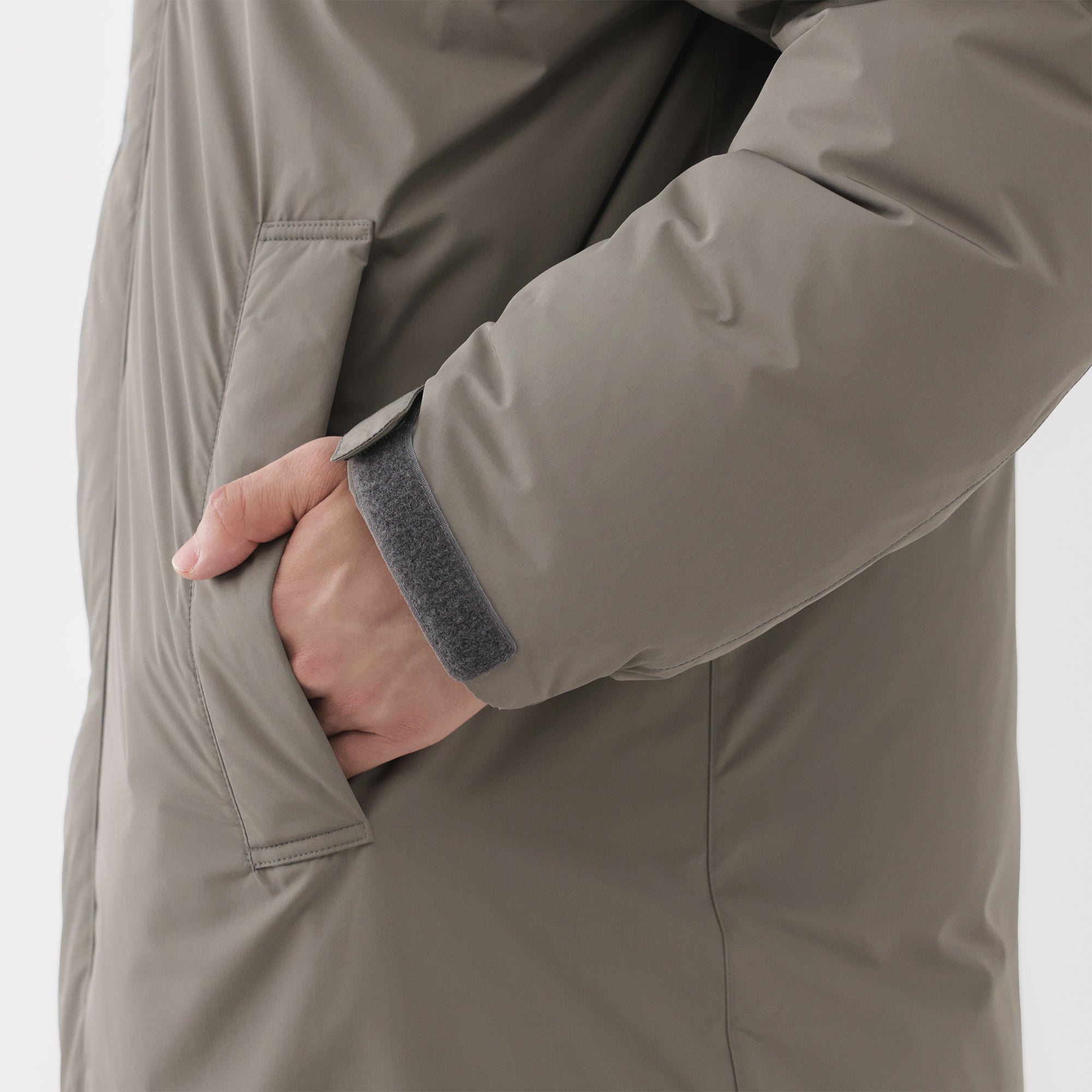 This men’s down coat offers water resistance. making it ideal for autumn and winter. Its lightweight design allows for easy layering during mild days. while the windproof feature protects you in blustery conditions. Filled with 750 fill power down. it provides exceptional warmth and comfort.