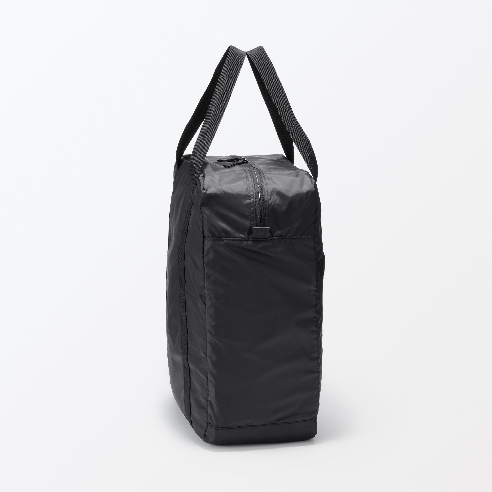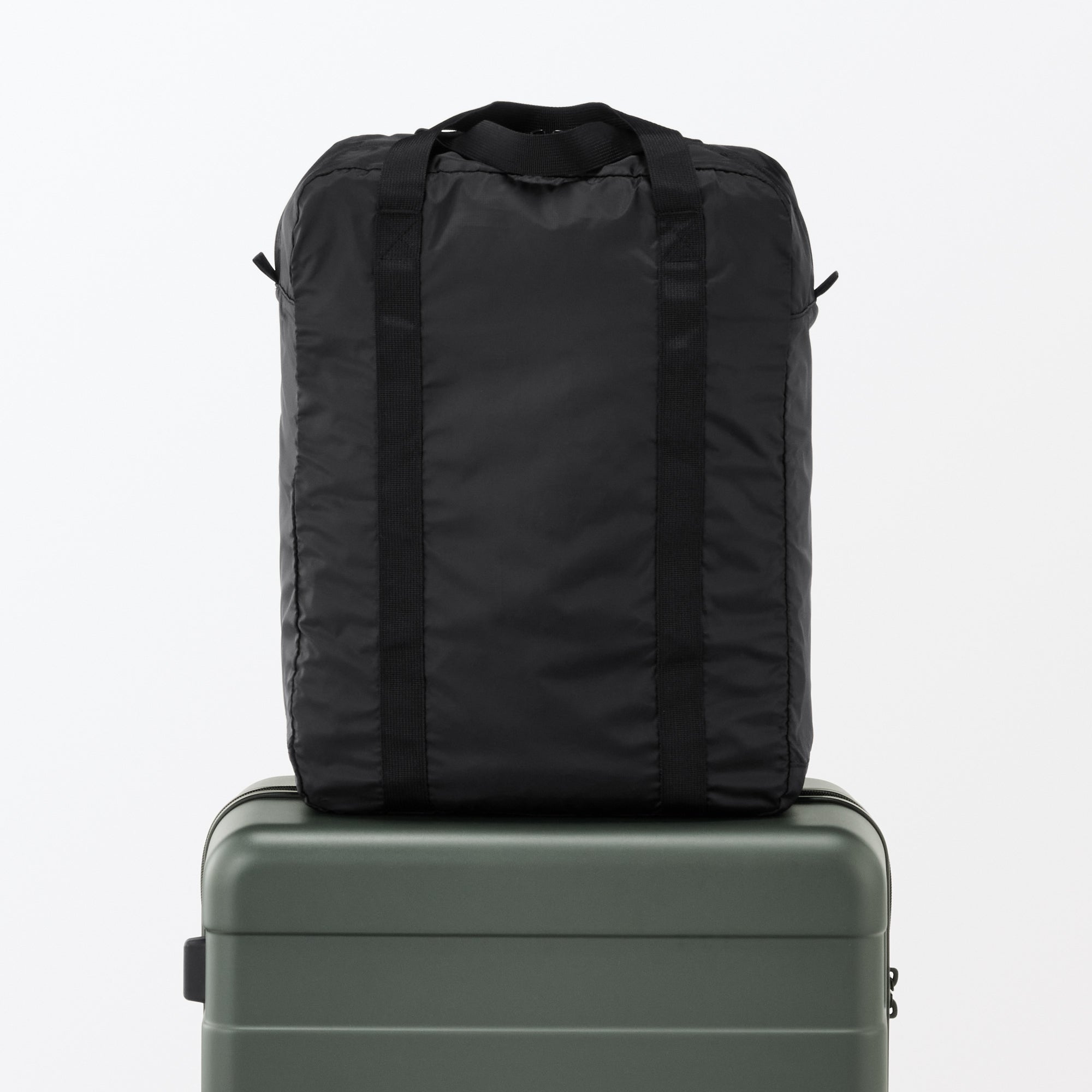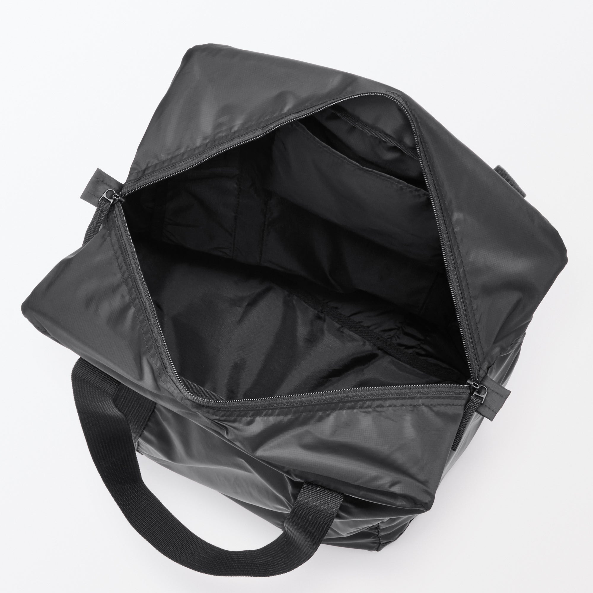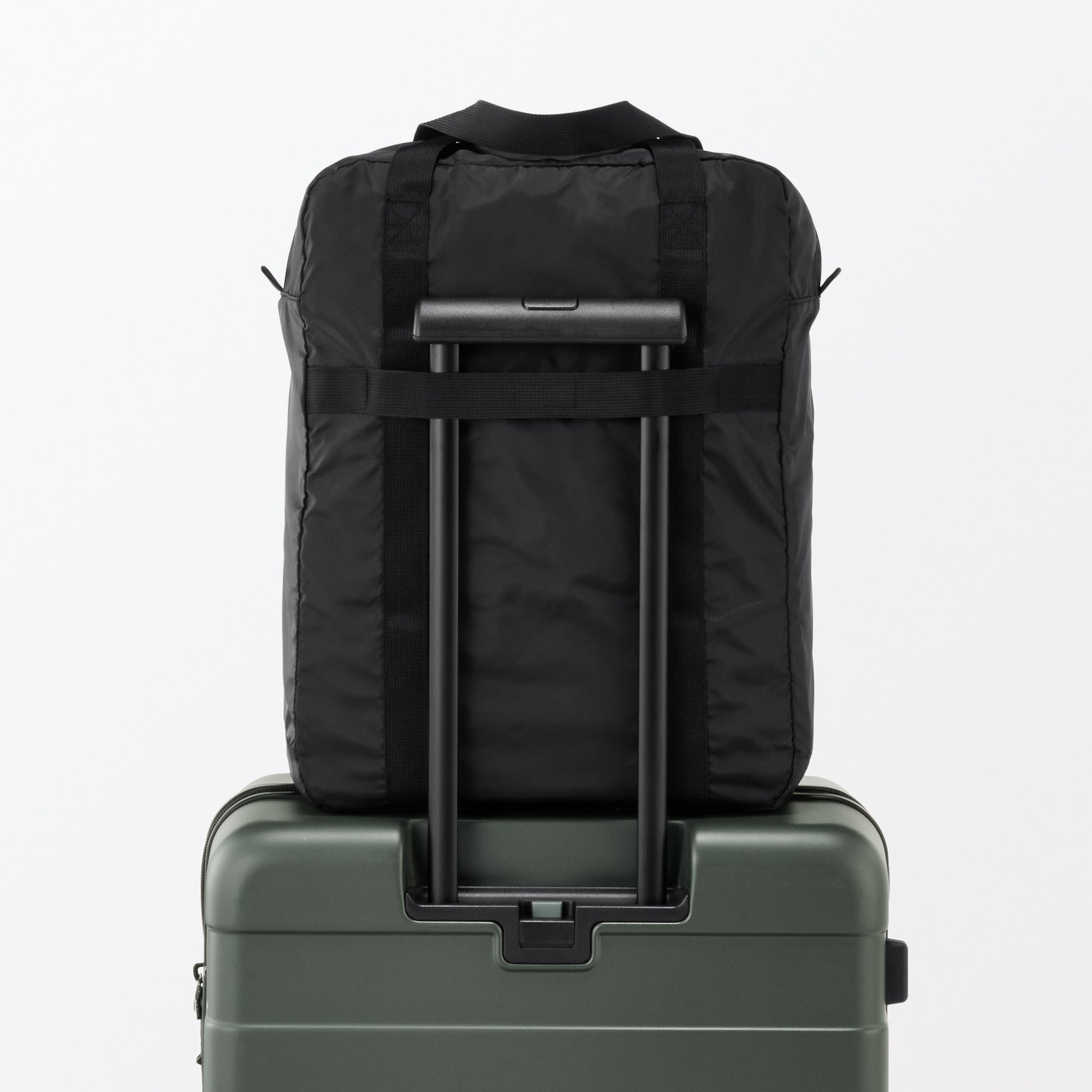 A weekend bag with a compact. foldable design that makes it easy to store when not in use. Made with a water repellent material so it can be used in all types of weather. The bag also features a luggage strap for your convenience. allowing you to easily secure it to your suitcase handle.